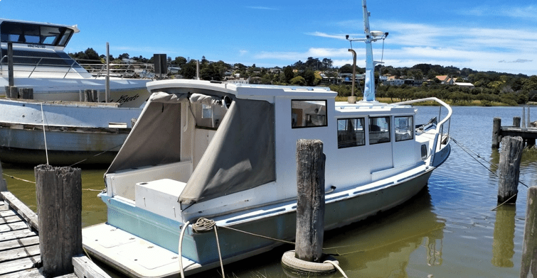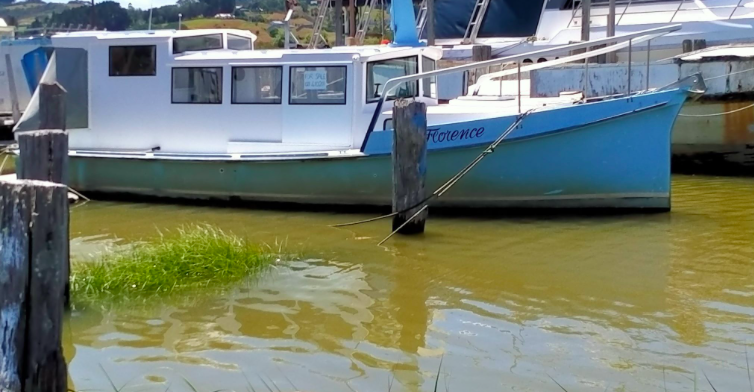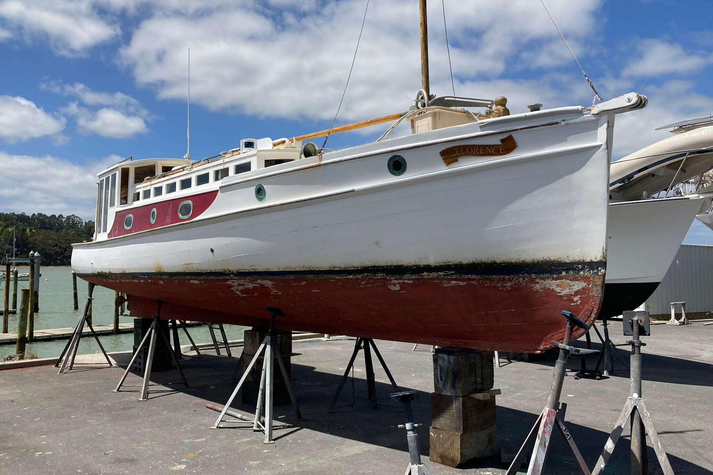 Todays photos of Florence (1910, HN Burgess) are from Clare Jordan. Clare found them in an old album of her great-grandparents (Jim Turner), they show one at sea, two with the life preserver ring and one that looks like on a creek somewhere, dated early 1920s. Clare’s not sure where the Creek area is, but commented that it looked like her family spent a bit of time there camping. They had a batch in Titirangi, but Clare felt it didn’t make sense for Florence to be on the Manukau Harbour area?