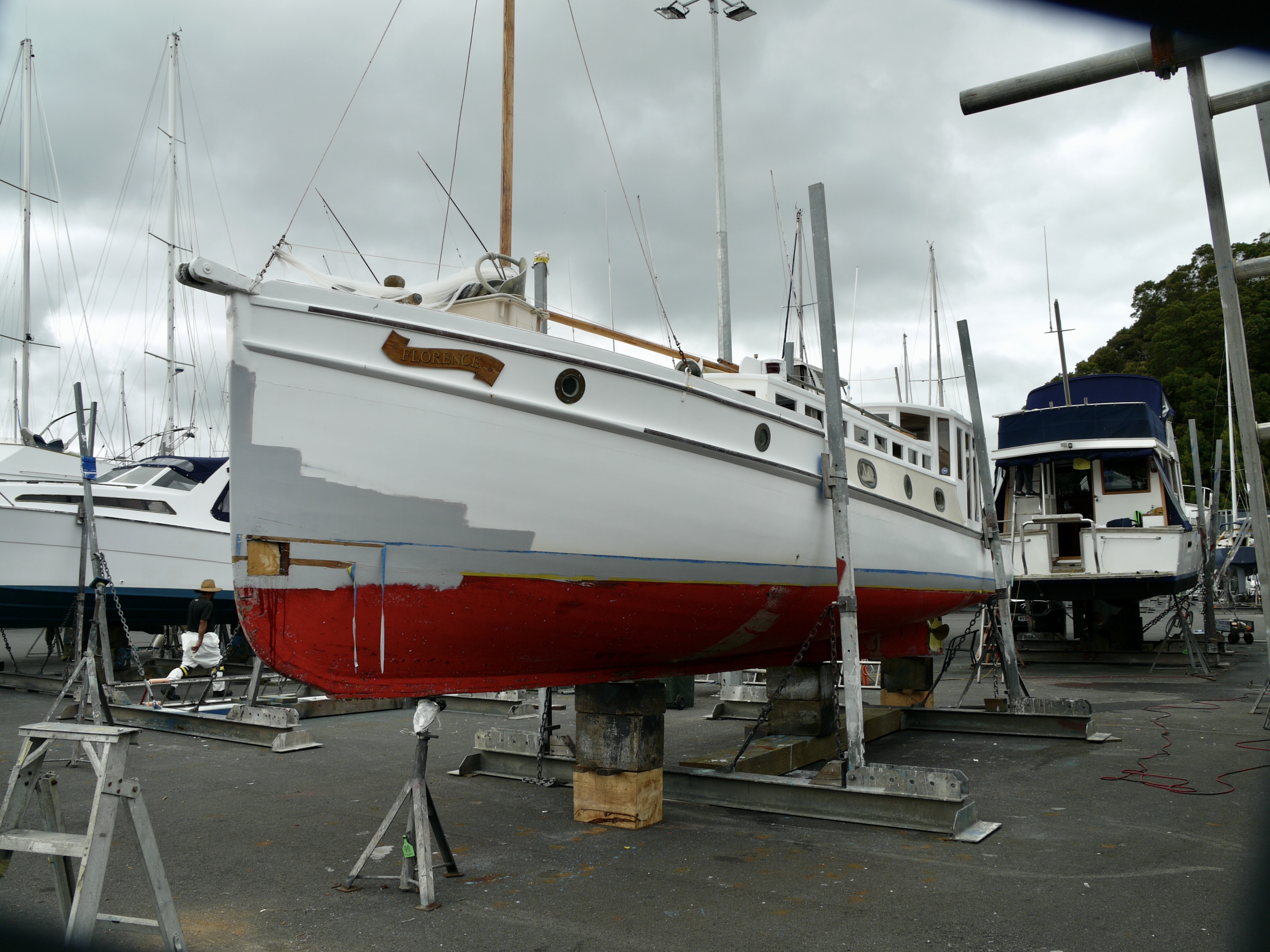 FLORENCE spent her years from 1922 in Whangarei owned by J.C. Reynolds but, if the companion pic of JEAN GRAY is anything to go by, the album contains pics of the period before that and associated closely with people in Victoria Cruising Club. FLORENCE was owned in 1919 by F. Price, like JEAN GRAY’s owner, A. Lewis and later A. Hazleman, a VCC stalwart, and was Vice-Commodore from 1920. In fact, the life ring in the lowest pic has “VCC” on the bottom. So the pics pre-date her Whangarei period. Quite where the creek pic was taken is anyone’s guess but I don’t think it could have been on the Manukau unless they fitted FLORENCE with wheels. Just to confuse things a bit, there was a FLORENCE on the Manukau, owned by Pardington, but it was only a 20 footer.