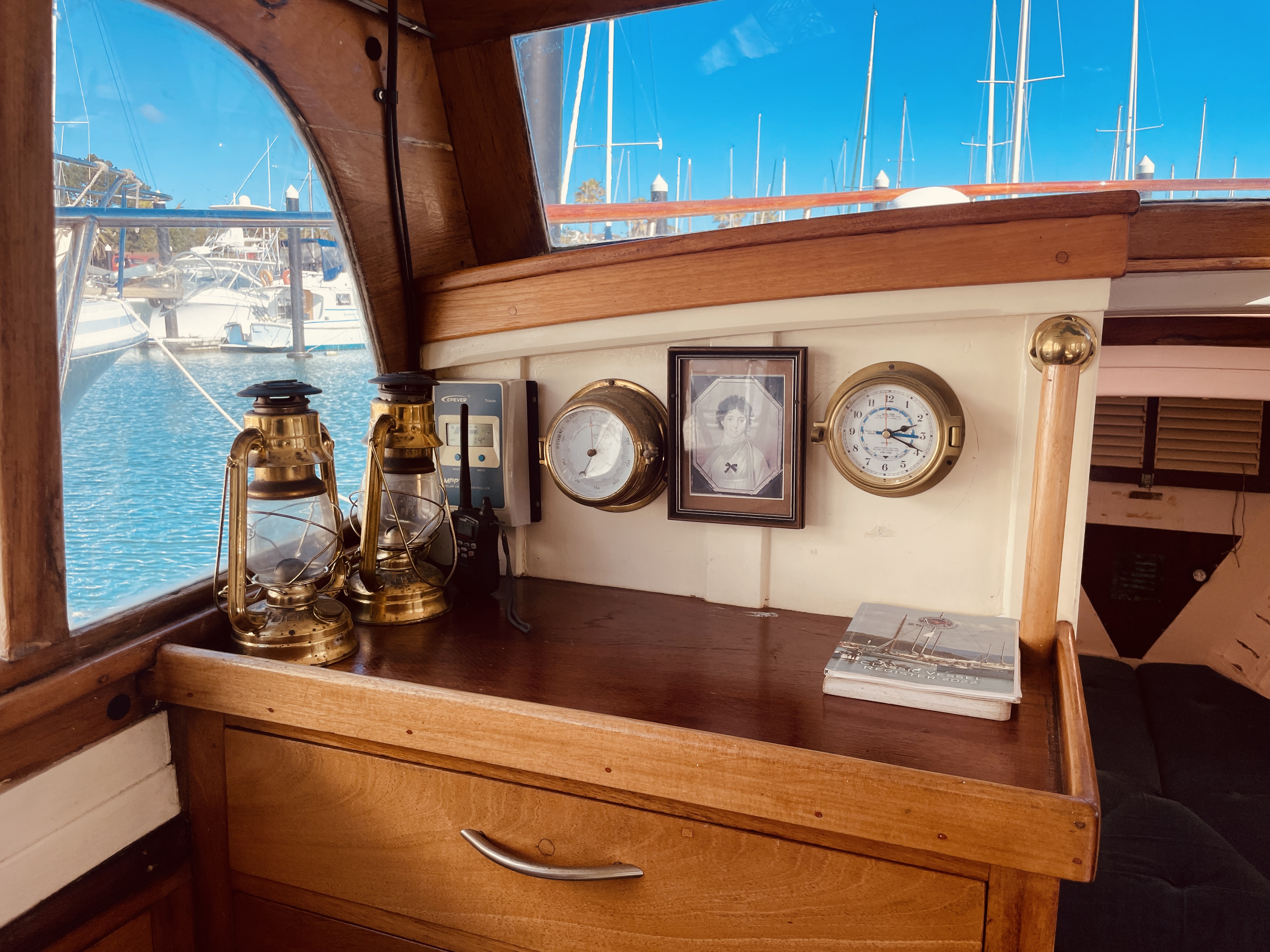 Full interior re-paint. All floorboards sanded, filled and oiled. New custom made inner sprung mattress, forward hatch refurbished and epoxy sealed, new hatch light, new toilet & 20L holding tank (all seacocks replaced), new shower head/hose, new taps. New fridge installed. New squabs and covers in saloon and galley. Full exterior canvas cover system, blackout curtains in saloon. Bilges cleaned, red leaded. Rudder post serviced, re-packed. New hydraulic steering ram installed (a spare steering pump and wheel are part of the sale). New steering station panel and instruments: tachometer, depth/fish finder, monitor (solar etc.) Gas locker fitted with two 10kg bottles, solenoid/gas detector and isolation valves. Engine regularly serviced by Moon Engines, new heat exchanger, gear box serviced, new hoses, new lift pump, new exhaust to manifold fitting, new exhaust pipe. Oregon boom fitted for shade and dinghy lifting mechanism. Flagpole renewed. Two new stainless rod holders. New vinyl in galley. All seacocks replaced with plastic. 90L plastic fuel tank system with isolation valves fitted. New fuel line to primary filters. New 50m anchor warp spliced onto chain. The boat has been hauled and antifouled yearly with kiwi prop applied.