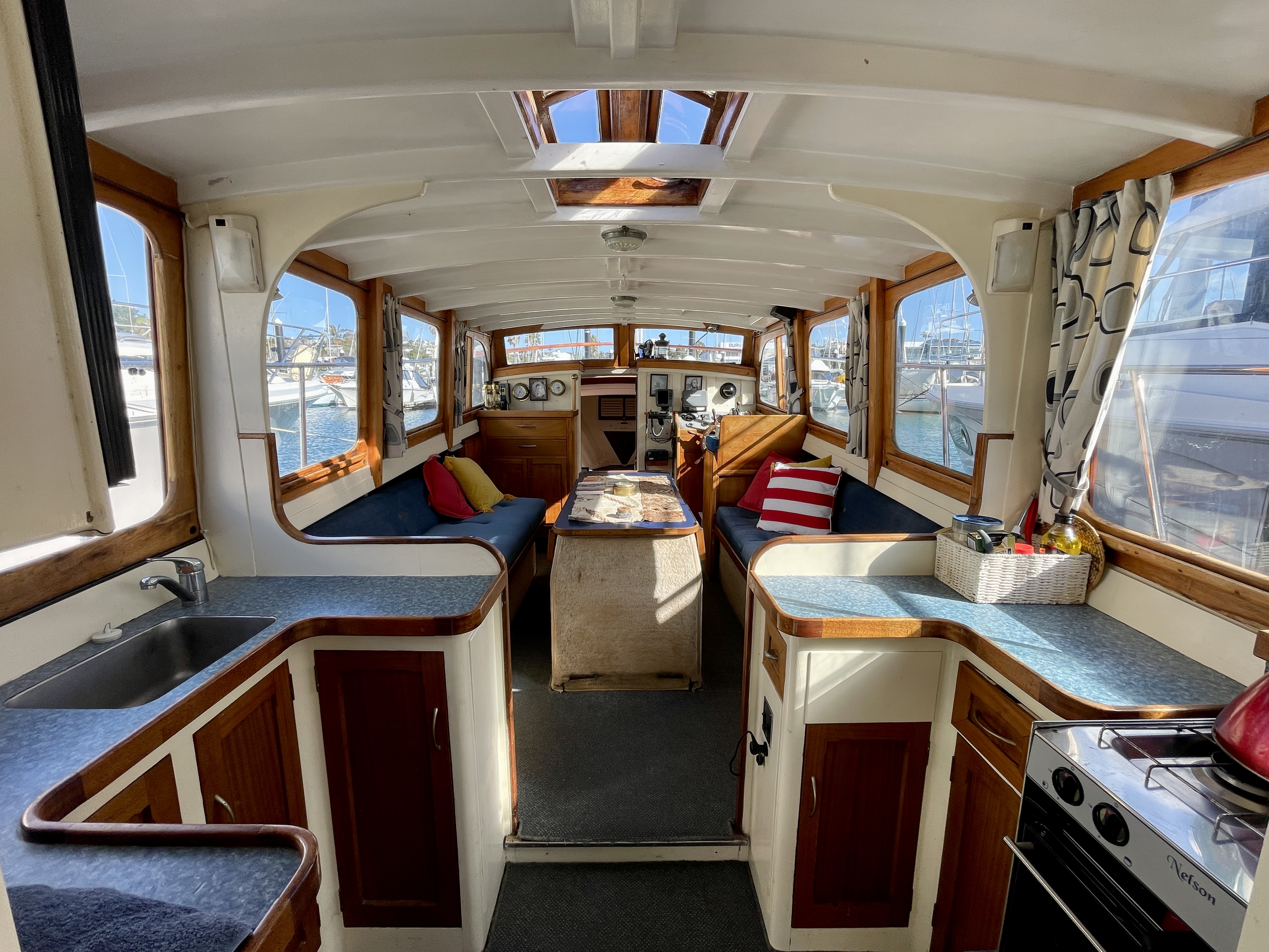 New since 2014: All new fresh water system including deck wash foot switch fitted and new hose. All wire stays and through bolts are new. New sheets, blocks and lines. Deck light fitted. Stanchions repaired and painted. Bow rails repaired, epoxy sealed and 10 coats of varnish. Hull painted. Entire electrical system is new with state of the art control panels and connections. 2 new deep cycle house batteries (2016), 2 x 150w solar panels, regulator and controller fitted. 800w inverter. Fly-bridge removed, old canvas stripped and brought back to bare wood. Entire roof fibre-glassed and 2 pot epoxy sealed, painted white and then added KiwiGrip for nonskid. New mahogany hand rails fitted, epoxy sealed and varnished 10 coats. Cabin sides stripped and varnished, window beadings removed (rotten) and replaced with Sikaflex.