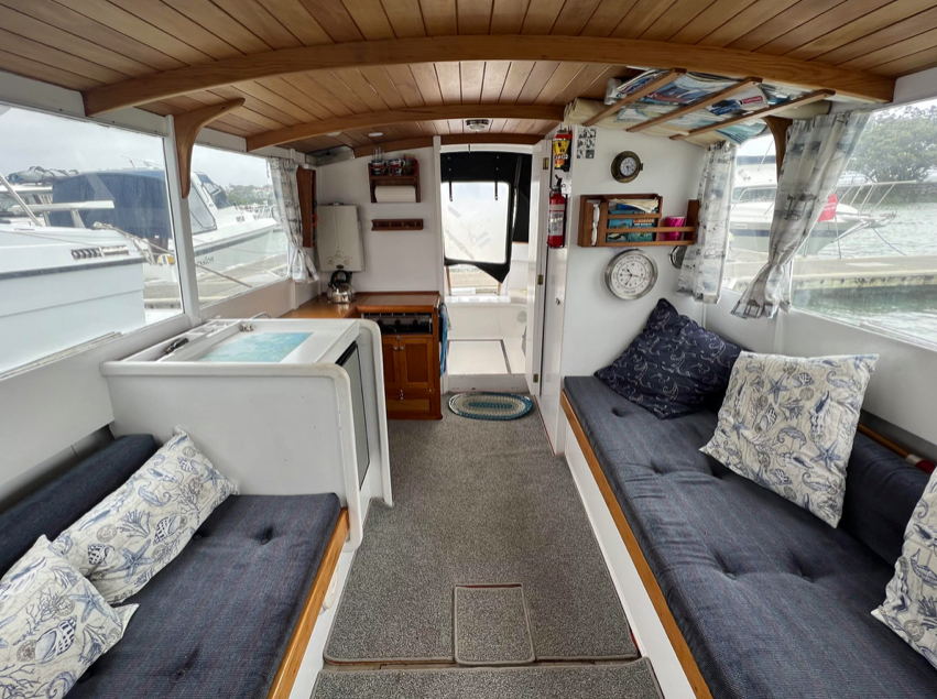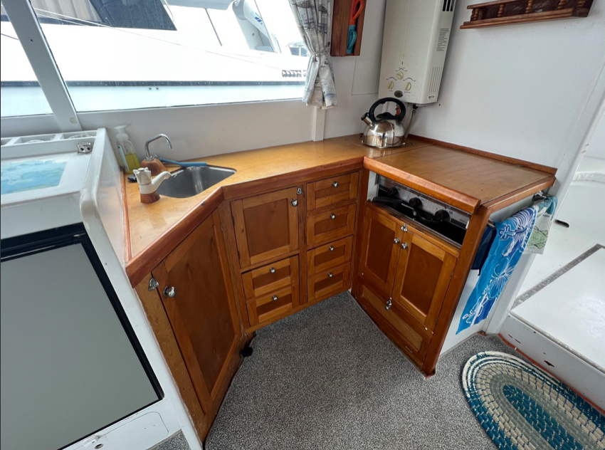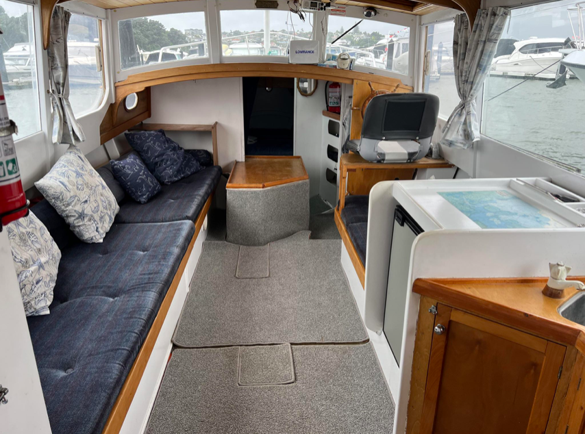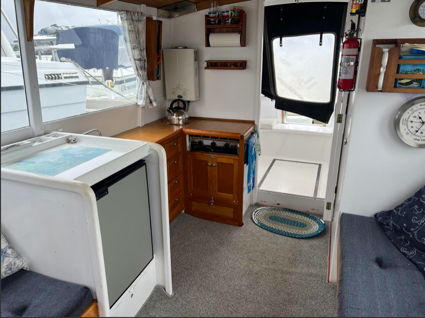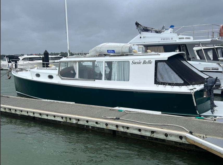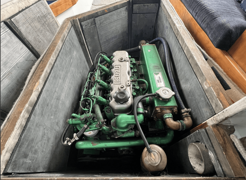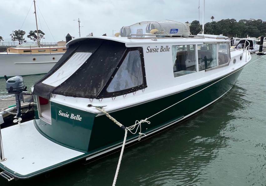 From the 2024 story we learnt that SUSIE BELLE is 34’ in length, designed by Don Brooke and built by Gary Wheeler. The built year is 1986 and whilst we understand built from wood, , plywood + there is a very thick layer of paint aka f/glass. Power is via a 60hp Isuzu diesel.