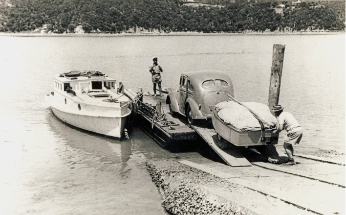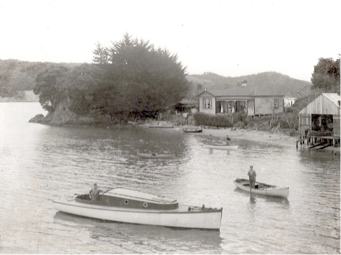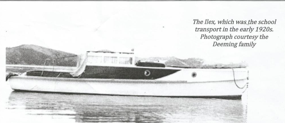 “Ilex was the very first boat built by Scarlett Deeming at his boat shed at Tapu Point opposite the fledgling township of Opua. She was built in 1910 and was used by the Deeming family in a variety of ways – two of the key ones, firstly as the school ferry to take children to and from the Opua School and this operated from 1928 to 1939. Ilex was also the prime towing launch for the Okiato to Opua vehicular ferry which had been instigated by the military during World War Two and was then taken over by Jack and his son Selwyn Deeming from 1945 and continued to operate until A E Fuller and Sons took over around 1954 and Ilex was replaced by Miss Doris.