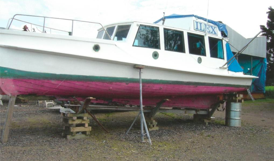 Ilex then suffered a mishap when during a storm one night (date unknown) she was forced under the Mangonui wharf and had her topside totally destroyed. She was hauled out and placed on a property at Mangonui and restoration started. It looks like ownership also changed around this time. Eventually Ilex was acquired by Ken Wright who took her to his property at Kaikohe when he set about rebuilding her deck and cabin top – in the process adding a low flying bridge. She was then used as a family pleasure boat with much fishing engaged in.