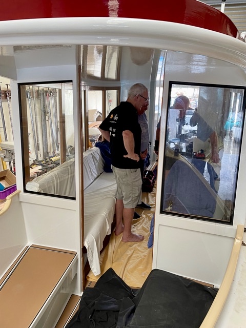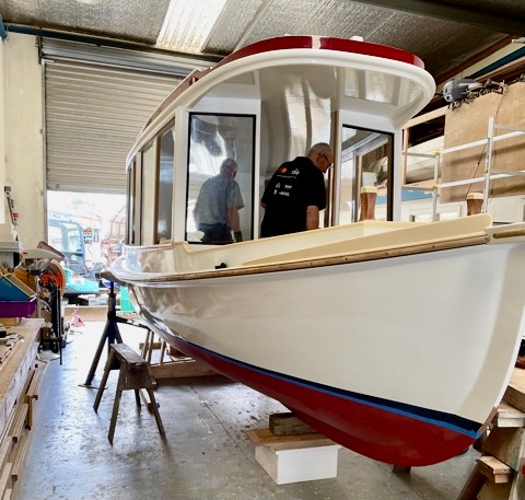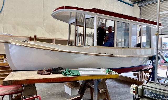 During the week Hugh Gladwell gave me the heads up on a woody project that was nearing completion. The ex navy 3-in-1 whaler, Hauiti, also known as a motor sea-boat, was built at the Naval Dockyard in 1962 out of double diagonal kauri. She has been converted by Peter Thompson (who was the project manager on the Jane Gifford restoration) to a river boat to operate in survey on the Mahurangi River. Hauiti is powered by an Elco electric motor which will run for about 7 hours and is charged by a bank of solar panels on the cabin top with no shore charging. Peter Sewell has designed the propellor.