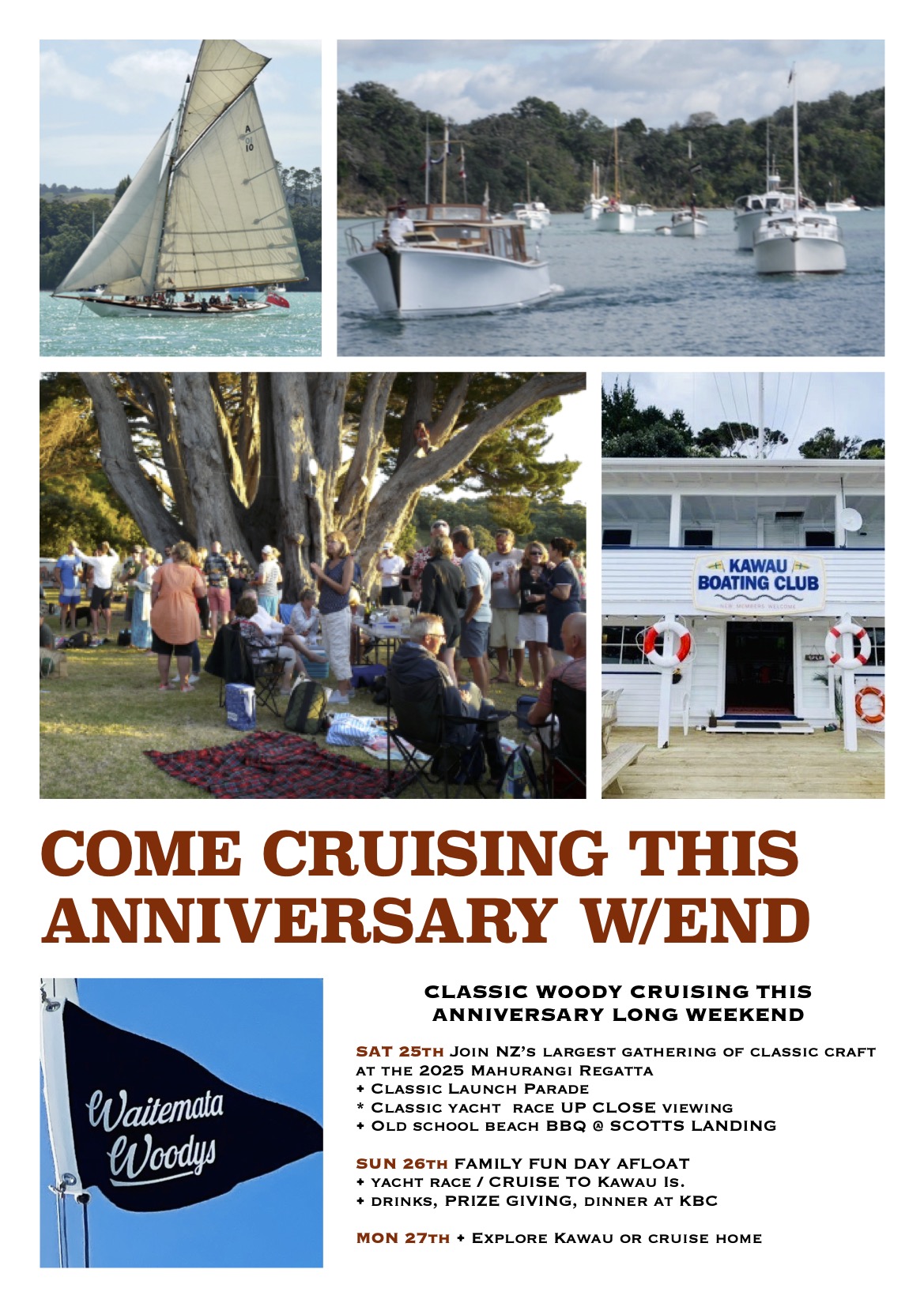 Most of the craft will be attending the 2025 Mahurangi Cruising Club Regatta later this month (Jan 25th) – the biggest gathering of classic craft afloat in New Zealand, refer flyer below.