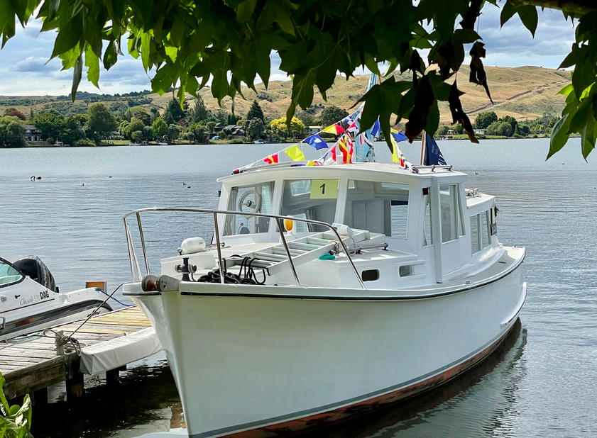 Arrived at my hosts Dave and Glenys Wilson lake front residence and collected the on-the-water transport for the day. Had a nice surprise in that the boat came with a skipper – local boatbuilder Alan Craig (Craig Marine) who over the last 10 years has rubbed up against most of the craft floating on the lake. This made my boat buddy – cabin boy, Grant Gibbs redundant but he accepted the demotion to #1 lackey.