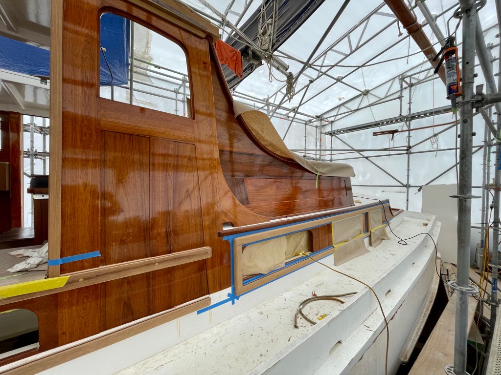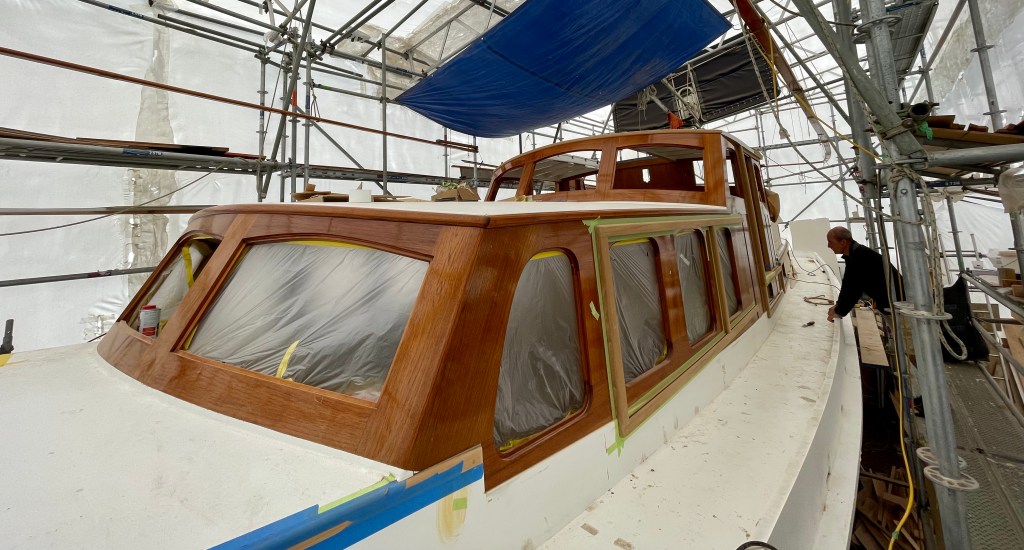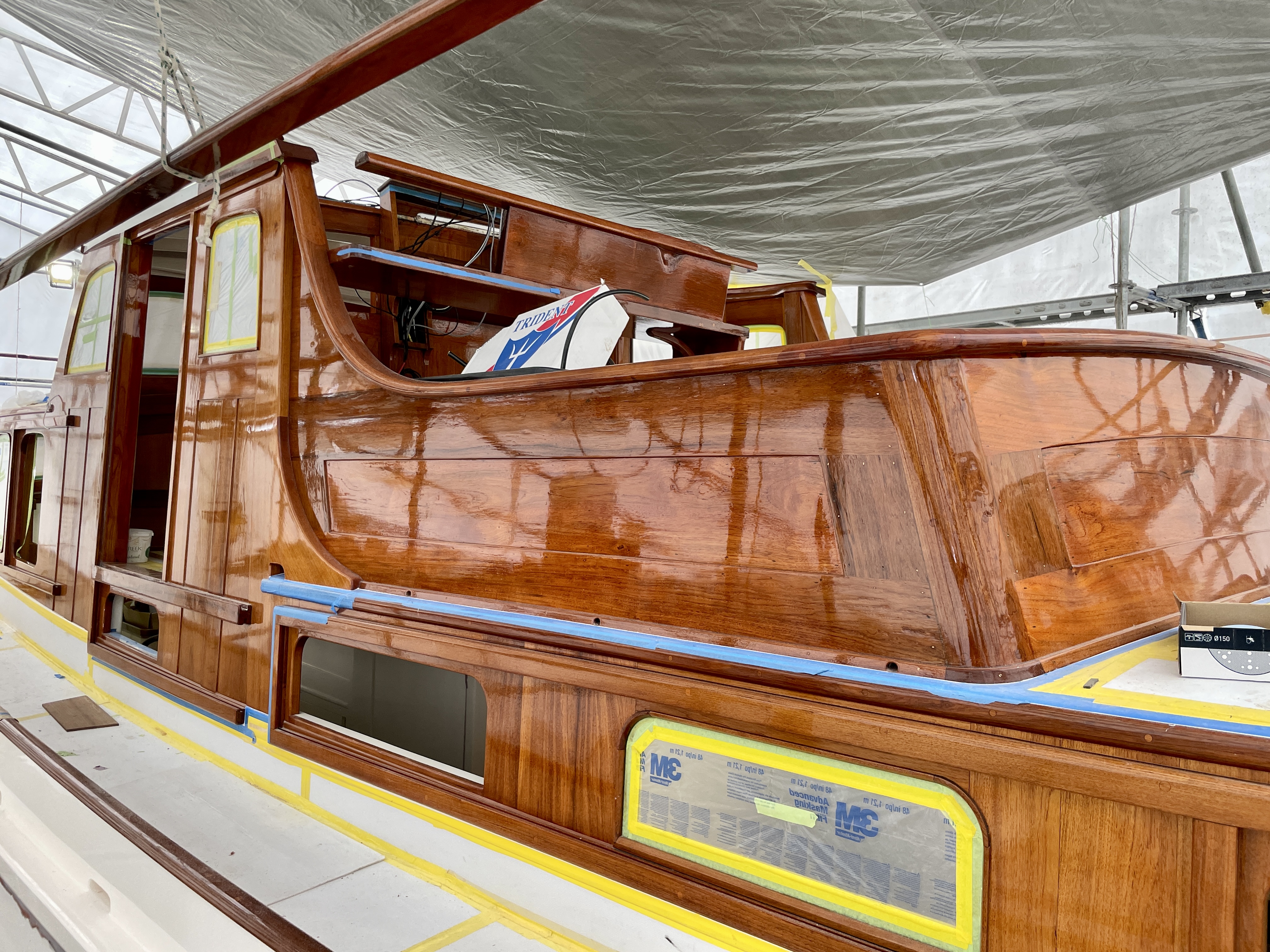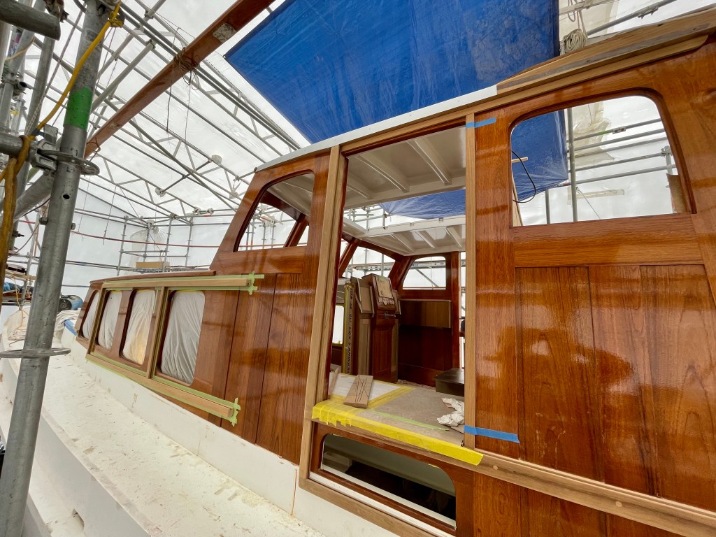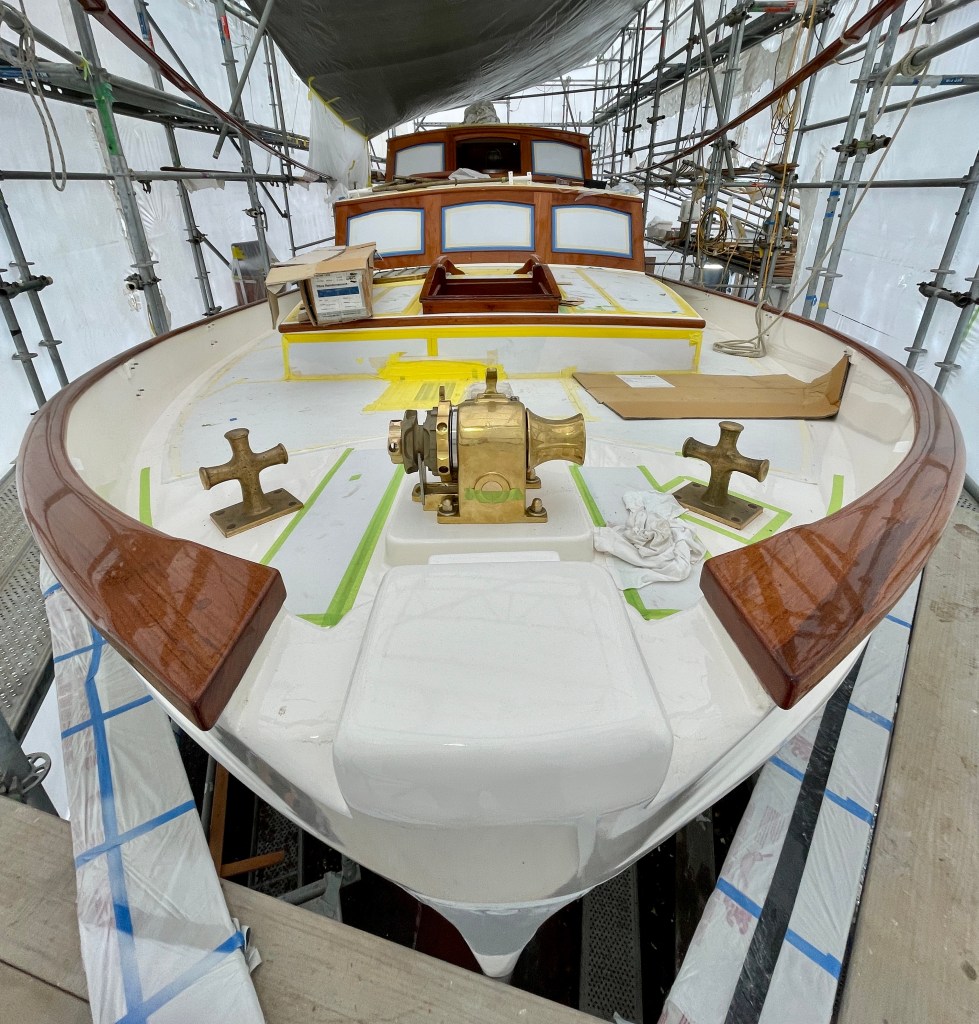 HAUNUI – RESTORATION In between the CV-19 lock-downs one of Auckland’s most beautiful classic wooden motor launches changed ownership – the Colin Wild designed and built 1948 launch – Haunui was sold by Owen Cashmore. In a previous life Haunui was owned by Harry Julian. Haunui was almost immediately hauled out at a private yard and master wooden boat builder Paul Tingey was engaged to return Haunui to her glory days. I showed her new owners over her ‘cousin’- Trinidad and they accepted the challenge to equal her presentation.