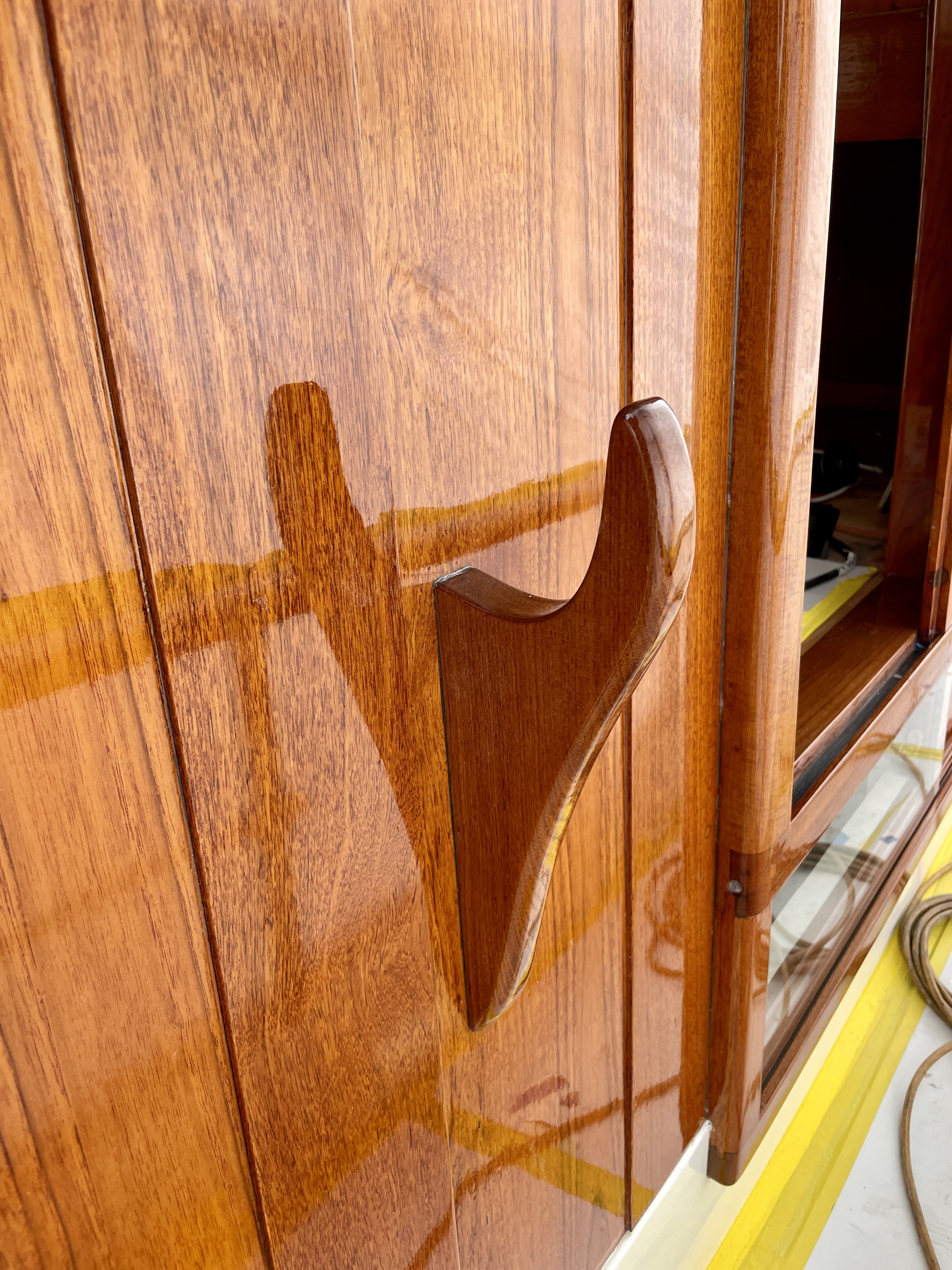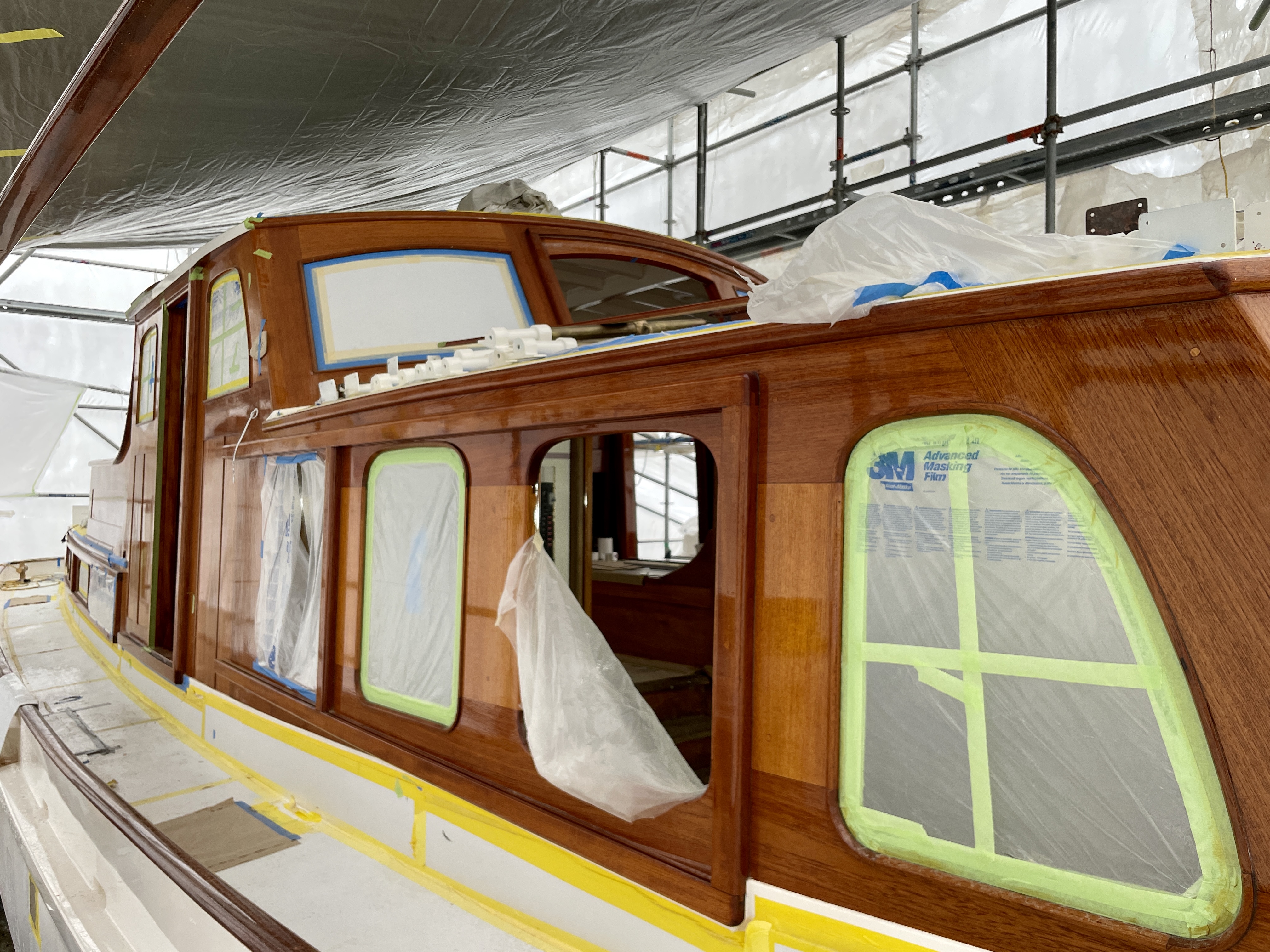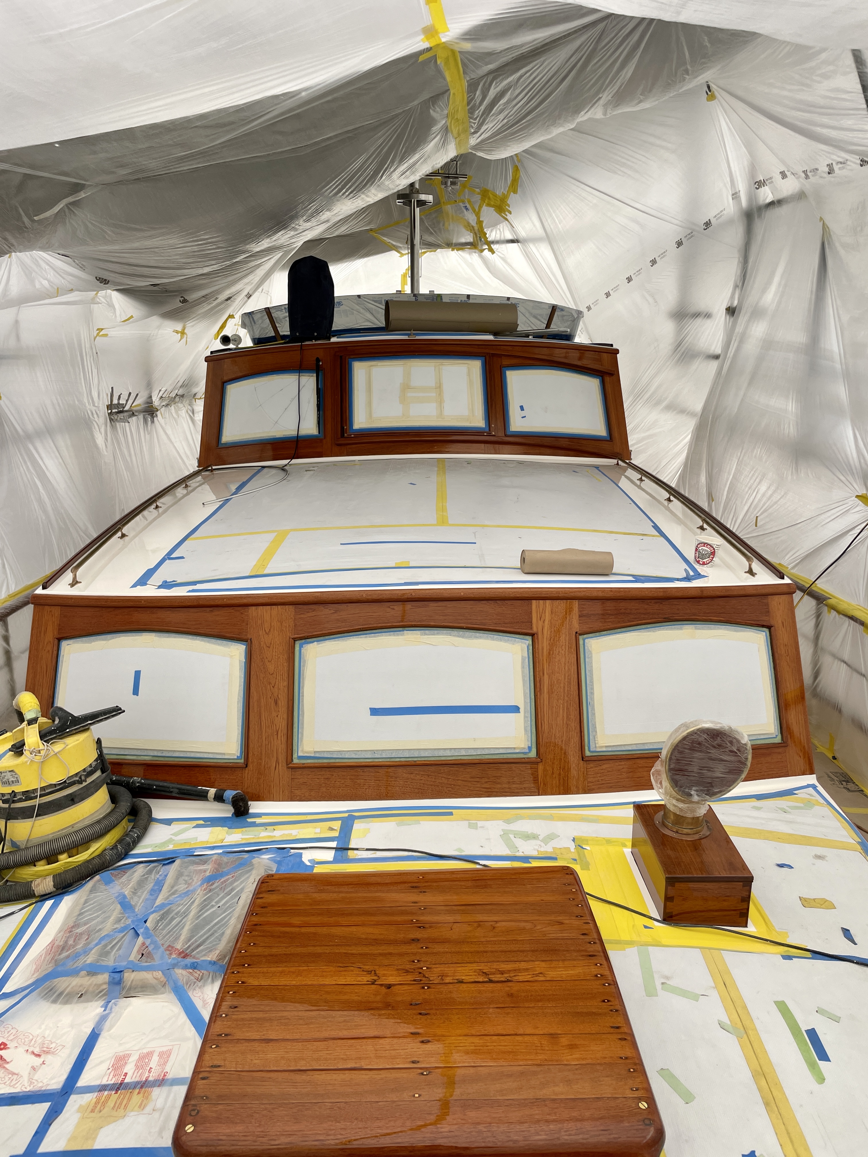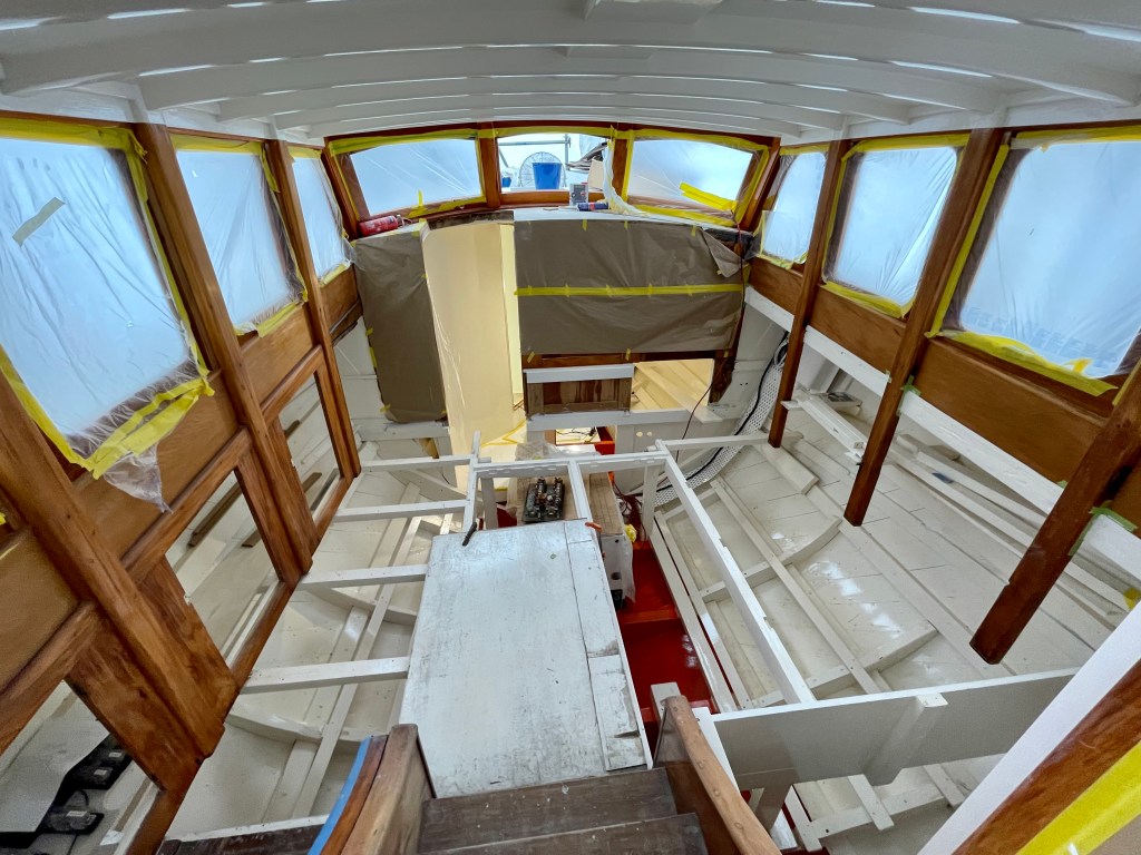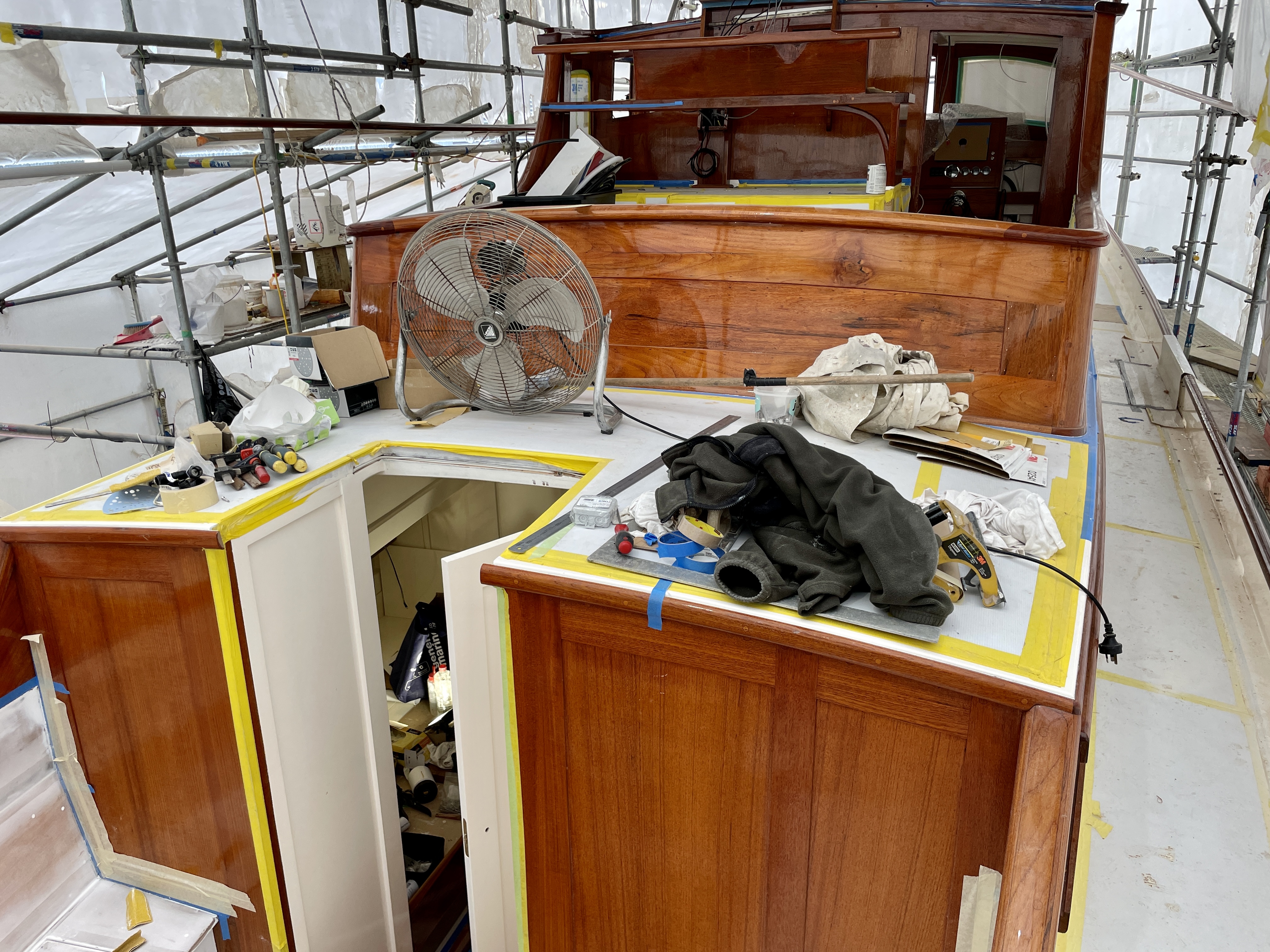 HAUNUI – RESTORATION In between the CV-19 lock-downs one of Auckland’s most beautiful classic wooden motor launches changed ownership – the Colin Wild designed and built 1948 launch – Haunui was sold by Owen Cashmore. In a previous life Haunui was owned by Harry Julian. Haunui was almost immediately hauled out at a private yard and master wooden boat builder Paul Tingey was engaged to return Haunui to her glory days. I showed her new owners over her ‘cousin’- Trinidad and they accepted the challenge to equal her presentation.