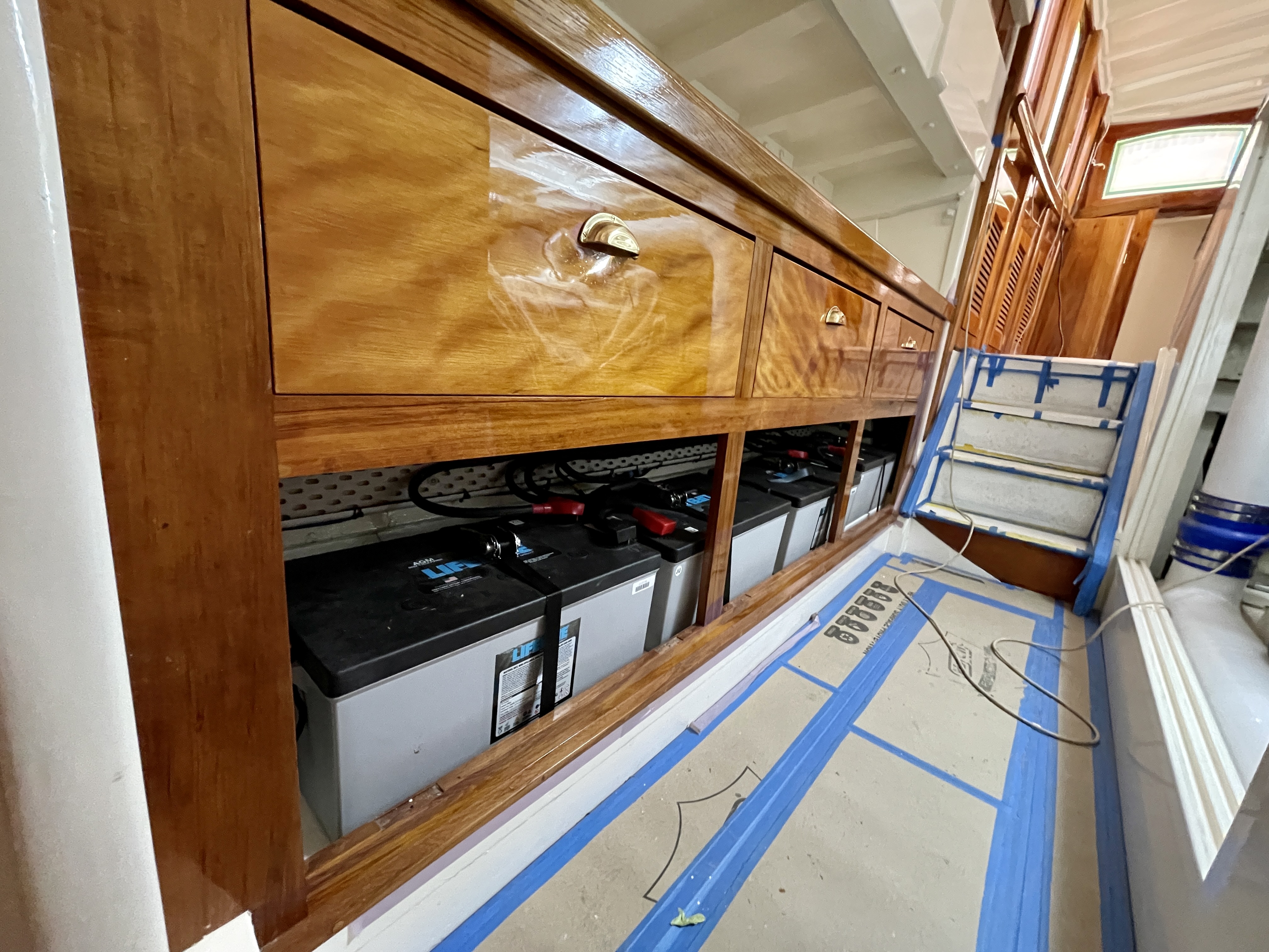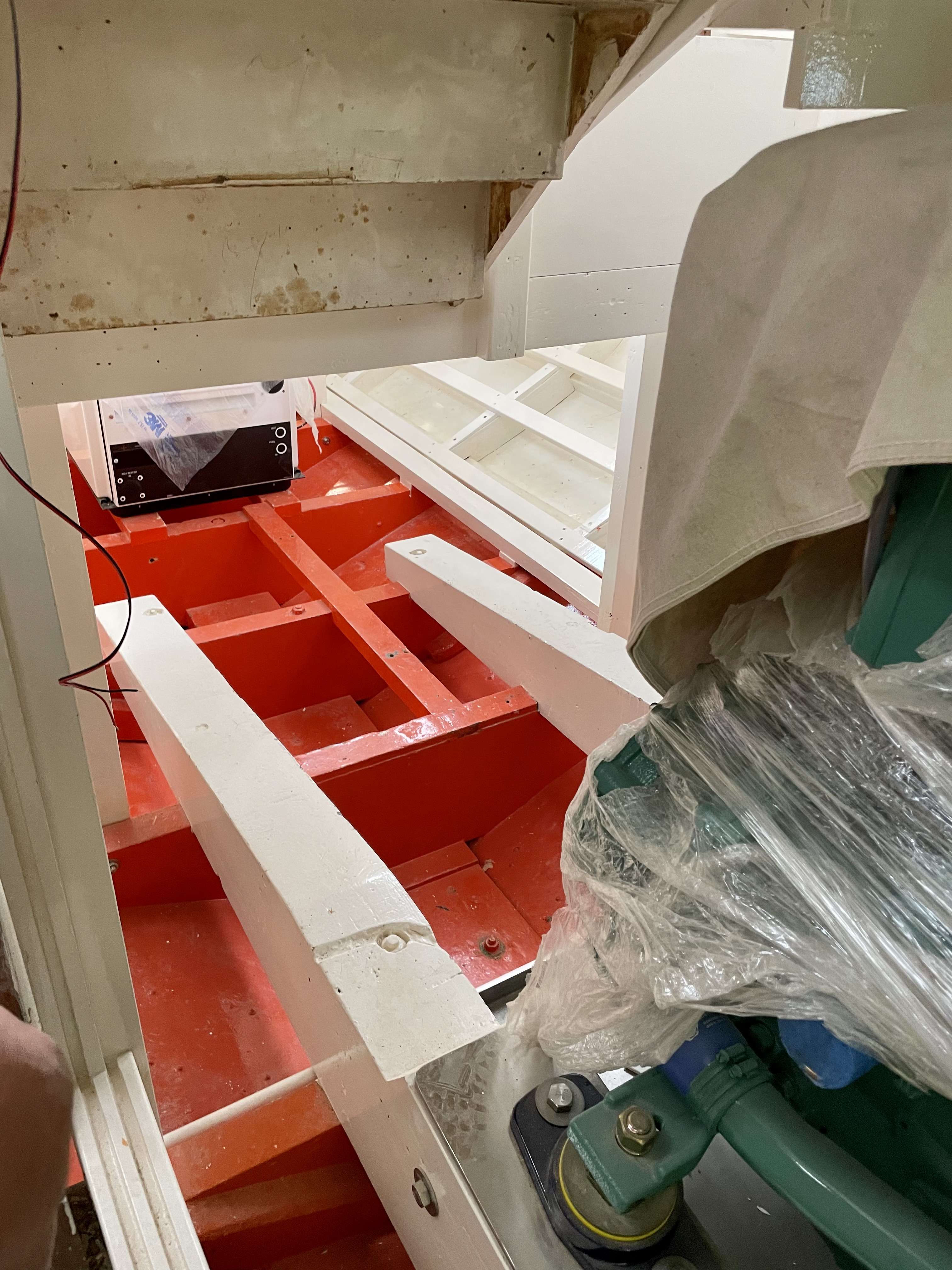 We also got a peek at the twin new engine installations – the main ‘Deutz ‘ engine and the trolling / backup electric side engine.