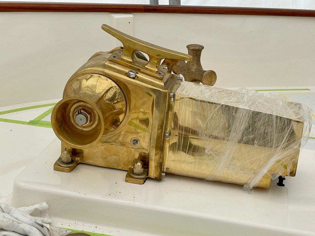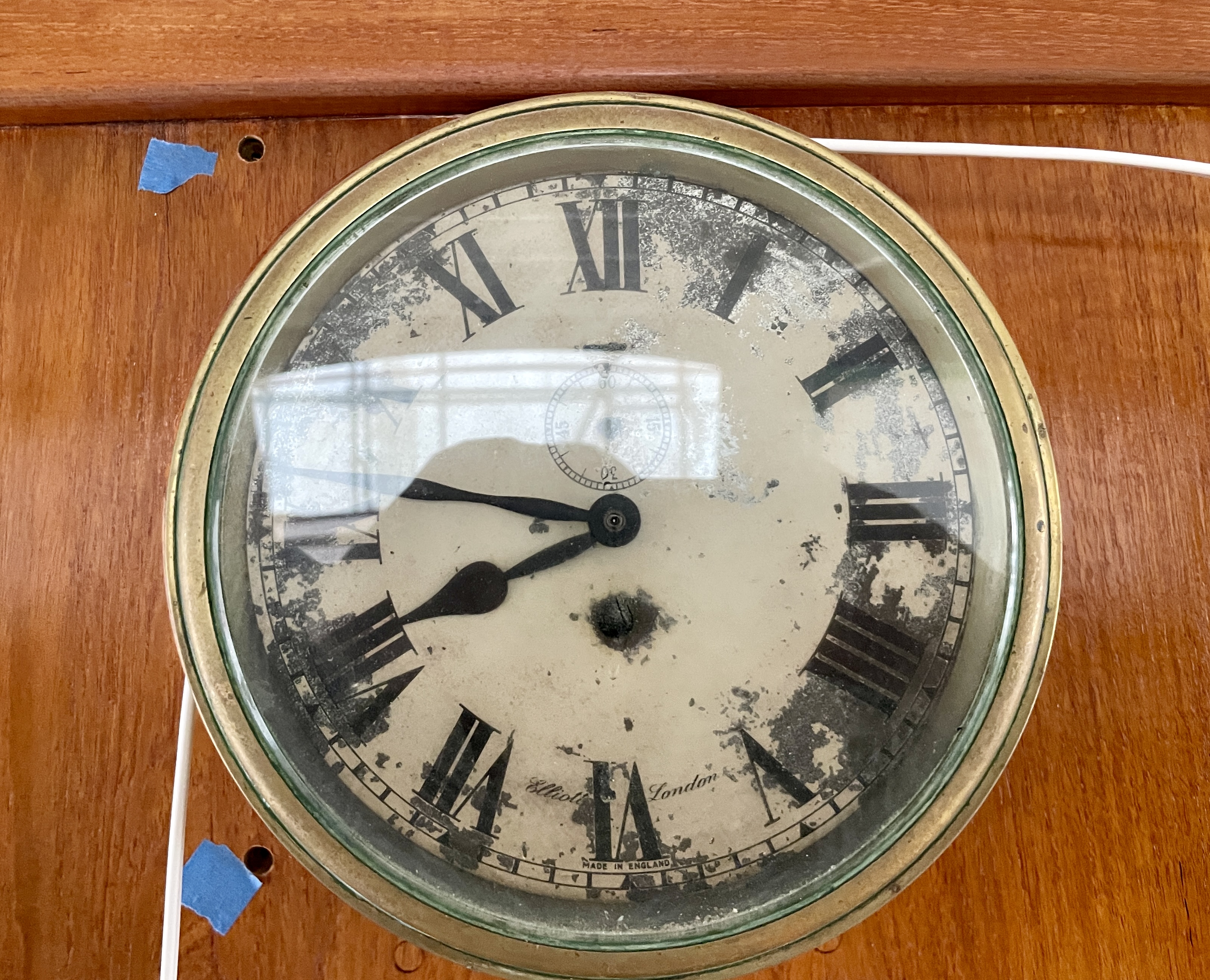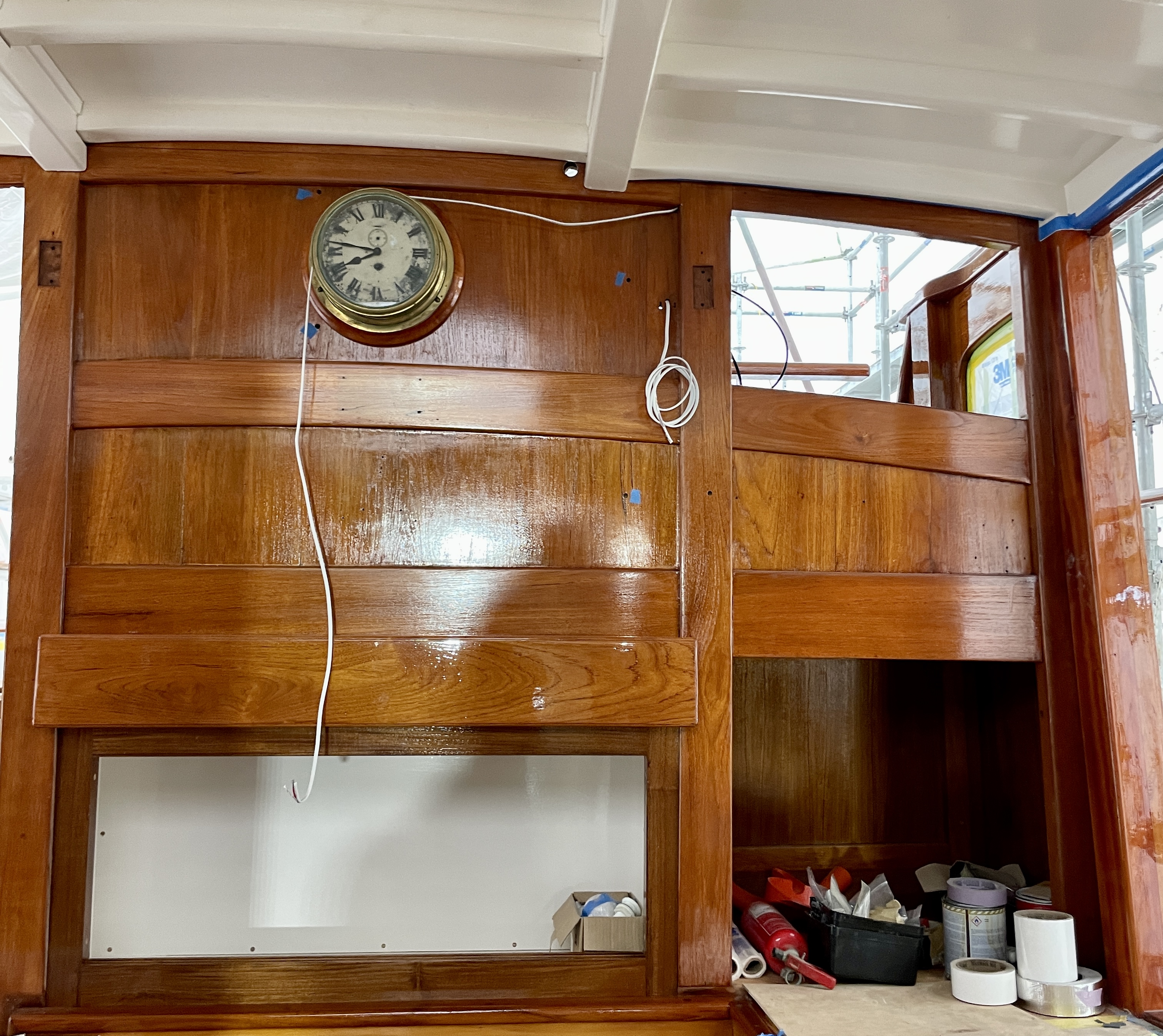 Check out the anchor winch, serious bling. And at the other end of the scale – the original ships clock has been retained – we like that.