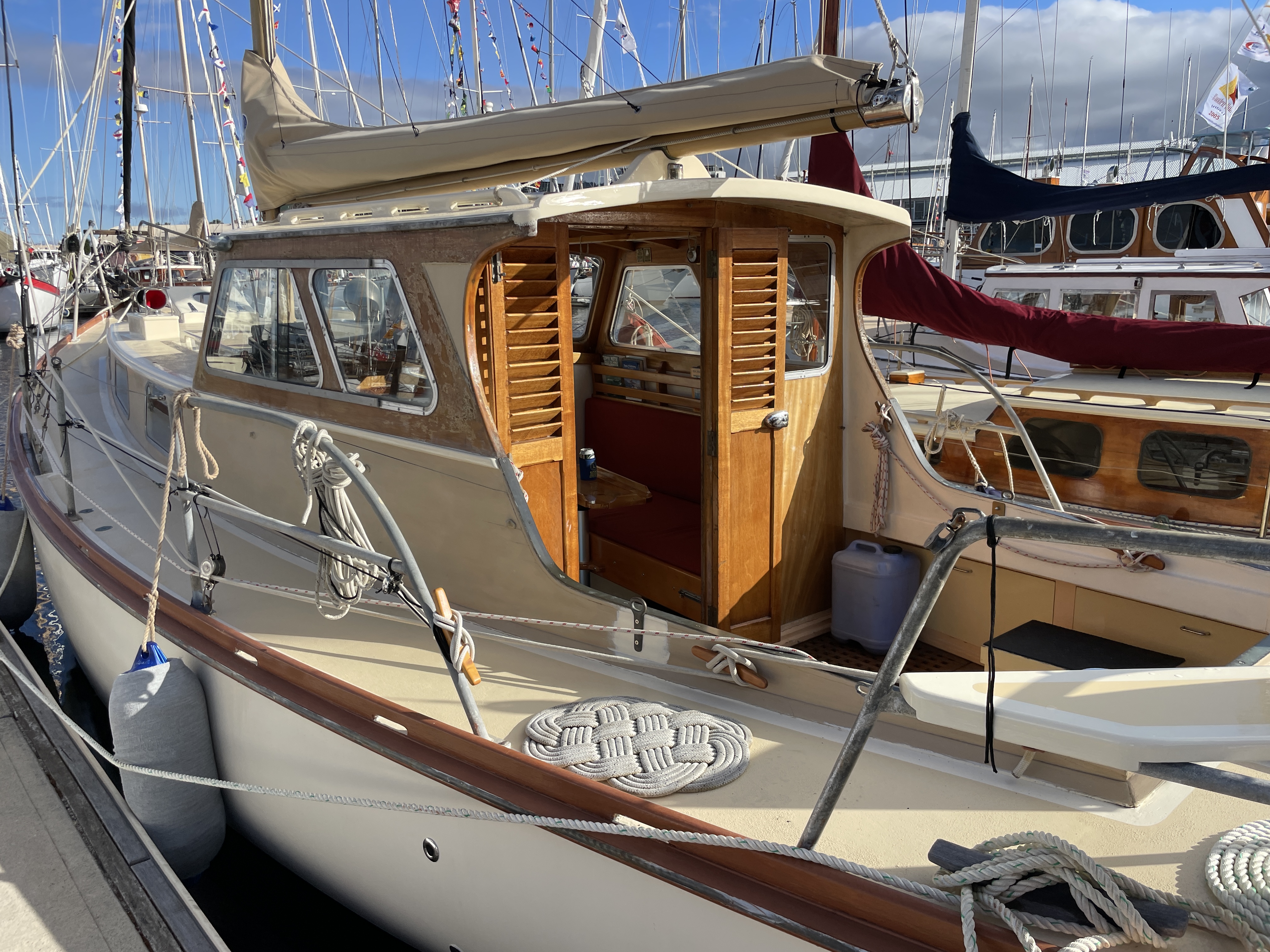 Boat Of The Day – HEATHER BELLE, a 24’6” gaff rigged pilot cutter, built in 1990 by Andrew Wilson to a Lyle Hess design. She is a sister-ship to Larry Pardey’s – SERAFFYN.