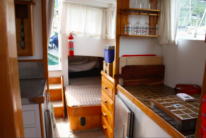 From the photos above you can see she is a straight sedan top launch. A year after the family bought her, Keith took her to Salthouses. They did an extensive reno to make her suitable for a family of seven. Keith told the story that he gave Salthouses the list of all the stuff that he wanted in the boat. They said ‘you need a 45″ boat’. Dad said ‘you will do it…’ And they did.