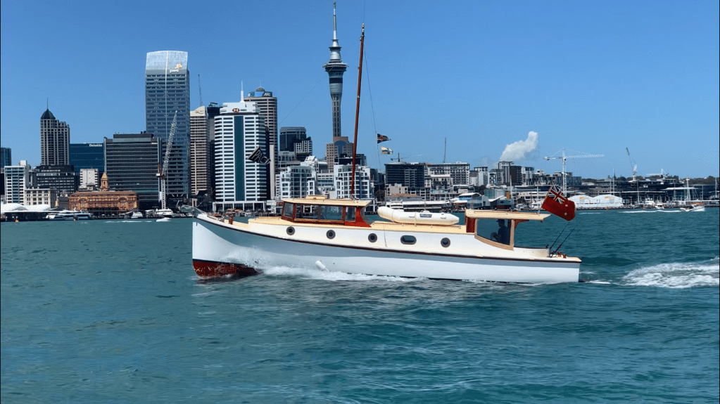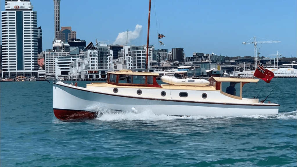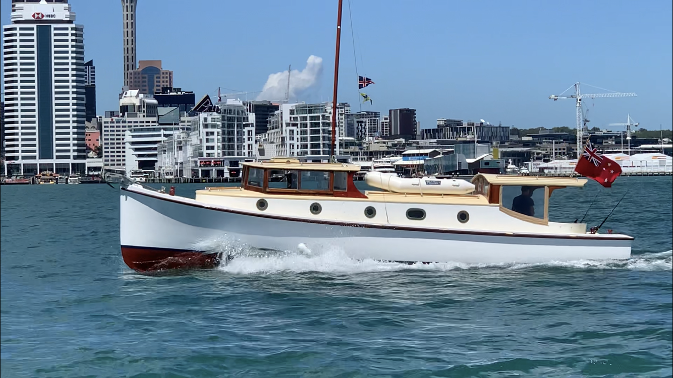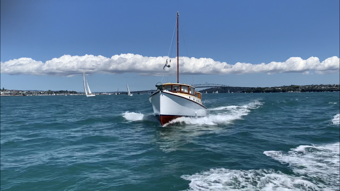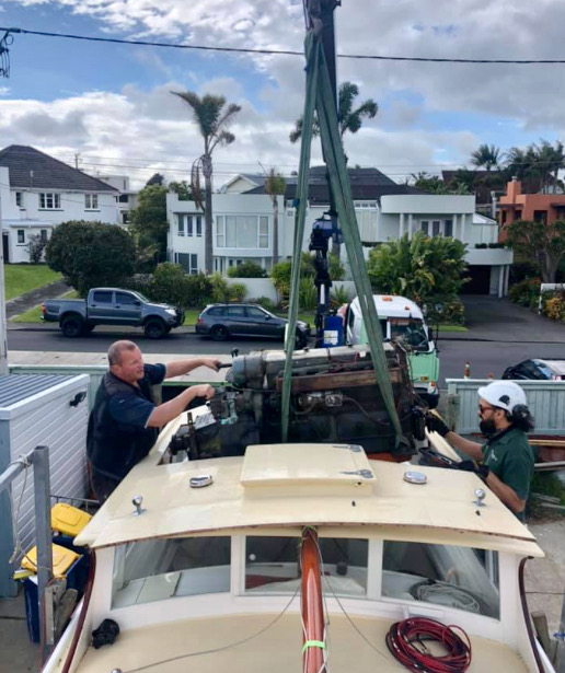 Last Wednesday we saw the 1917 Joe Slattery classic launch – Pacific sliding back into the H2O after a 5 month refit (link to that story below). Over the weekend, owner Nathan Herbert took the 105 year old out to stretch her legs post the installations of a brand new 100hp FPT / Iveco N45A engine. The old Lister in her was a beast of an engine (1500kg v’s 450kg new engine) and mounted well forward, I would not be the only one to have commented previously that she had a certain “heading down hill” look to her – well as you can see in the top photo, she almost looks like she is about to pop up on the plane. Nathan says no, its just camera angle – but to the eye she sure looks smart.The installation project was not a simple – out with the old & bolt in the new procedure – you can see in the photos below it was a major, but the Nathan is an engineer (mouse in hand not spanner) so the attention to detail is certainly there 🙂