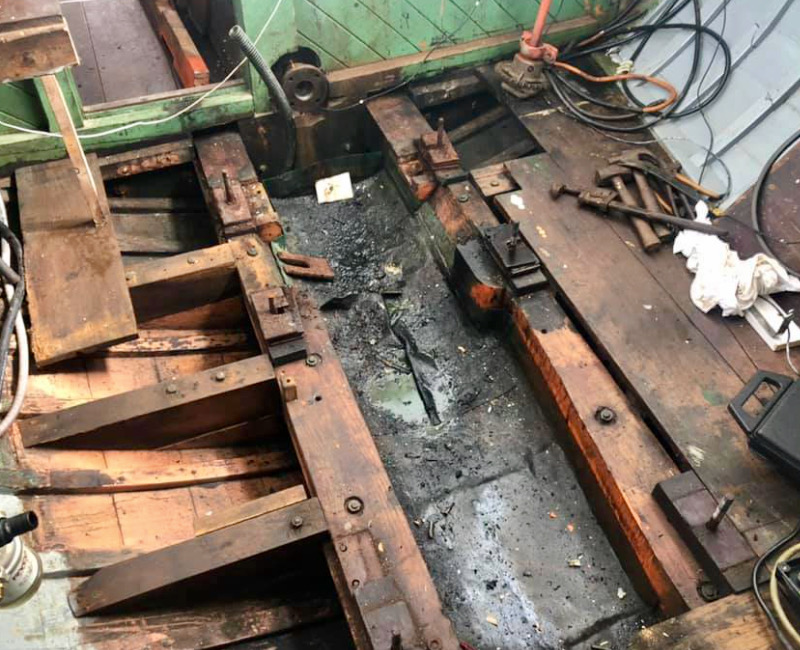 -In stripping the bridge and for’d cabin out completely I found around 24 completely broken ribs- some in a row which were very dangerous. New red beech ribs were fitted by Jason Prew. These ribs would have written her off in a survey as is so often the case these days when you see $1 reserve classics.