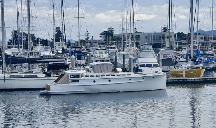 The engine is well forward, in the galley, giving good access to the motor but necessitating a 5.5-metre drive shaft. The forward engine and flared bow make Lady Jess a great head sea boat. Top speed is 9 knots with 8 knots cruising. Fuel consumption for a day’s game fishing averages 8 litres/hour. Diesel capacity is 900 litres, allowing extensive cruising without refuelling. Pete retired from charters in 2019 but kept the boat for family use.“