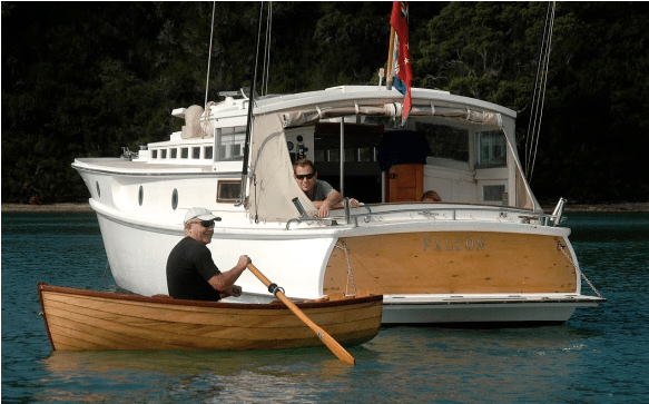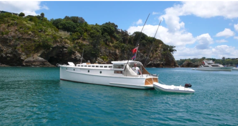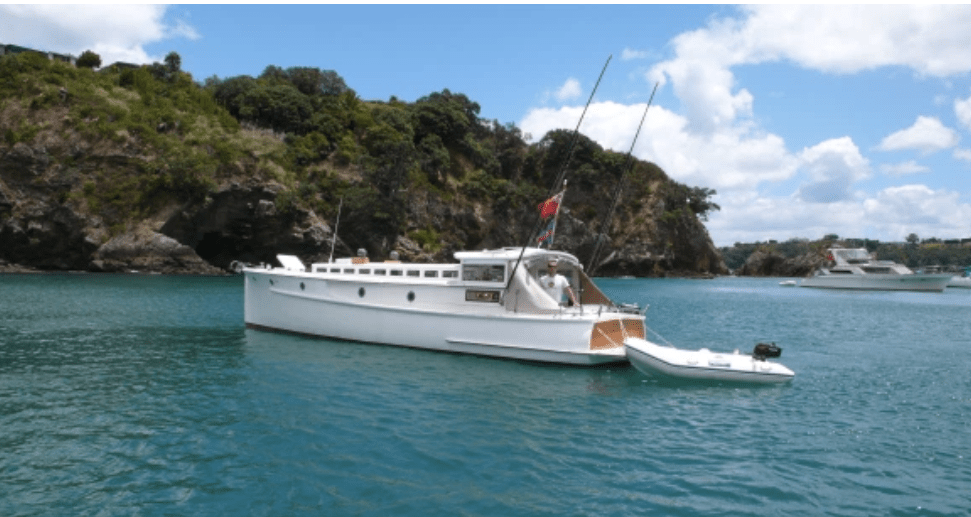 “Lady Jess was commissioned by an Auckland commercial fisherman, Gus Viskovic as a snapper longliner in 1961. She was designed and built by John Gladden at Milford Marina. The kauri came from half of a tree milled in the Coromandel. The hull is carvel planked. The planks are full-length, 32mm. Some demolition kauri from a church in Hamilton was also used in the bulkheads.