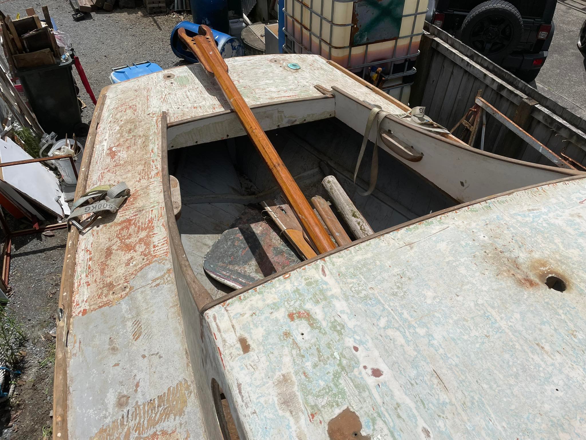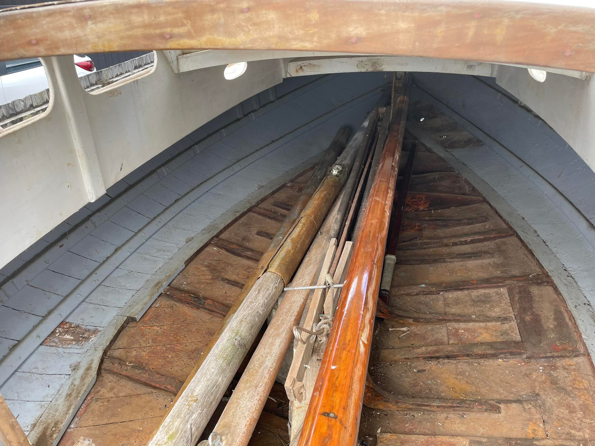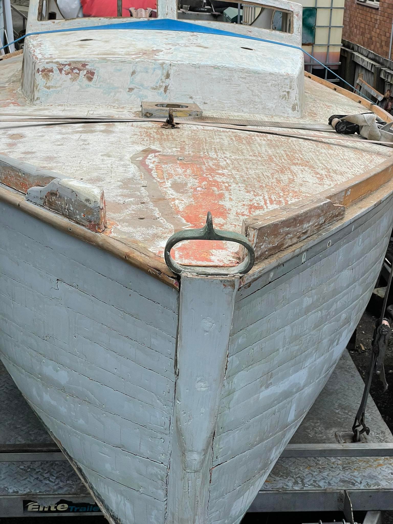 But it didn’t stop there – with a lot of lobbying from myself and Jason Prew (Slipway Milford) WAIKARO’s coamings were taken back to bare wood and she got the Awlwood (Uroxsys) treatment + the additional of some shiny bronze bits. And that transformed WAIKARO into the striking craft we see today. See below photo of WAIKARO as purchased with painted coamings.