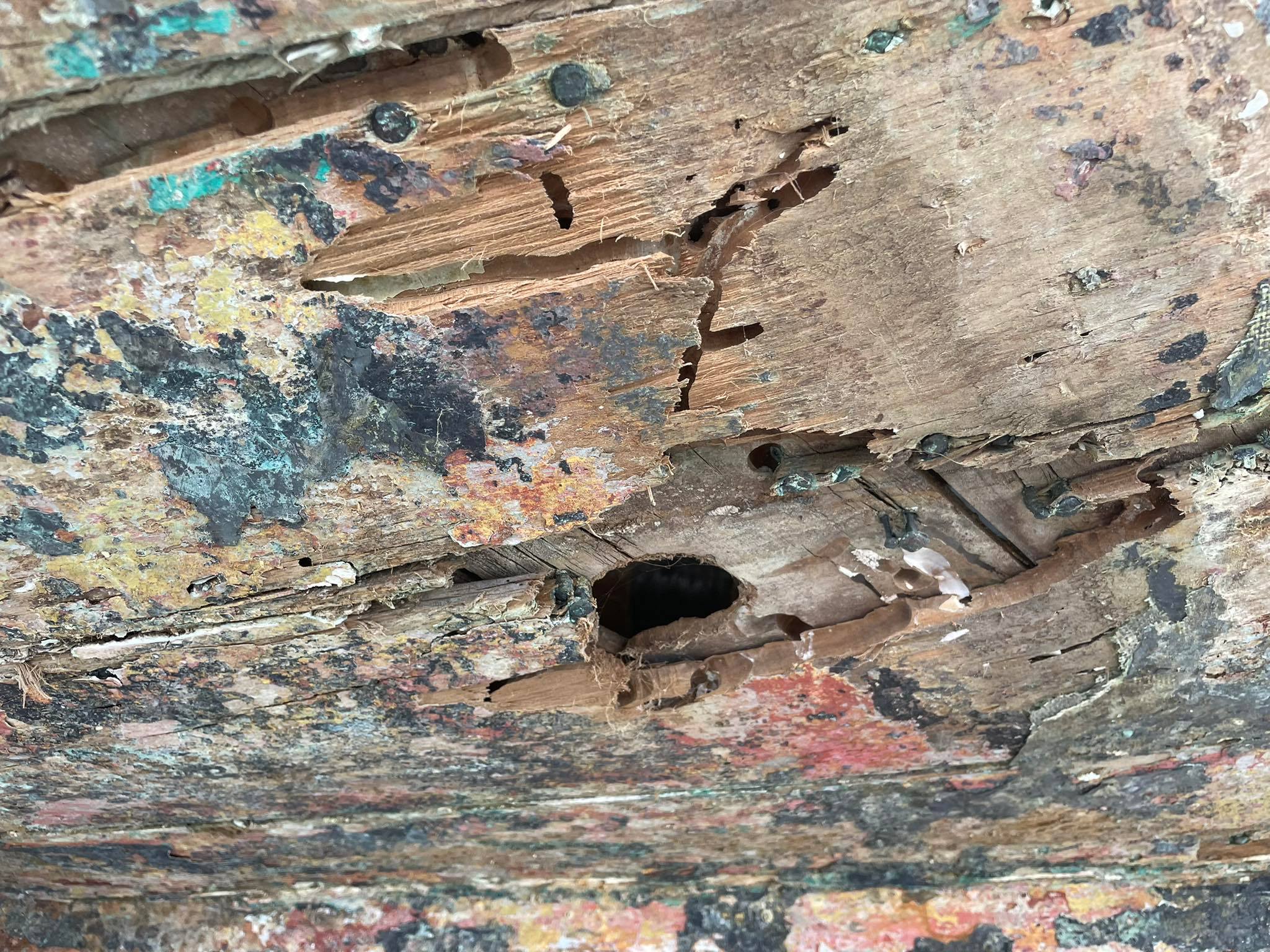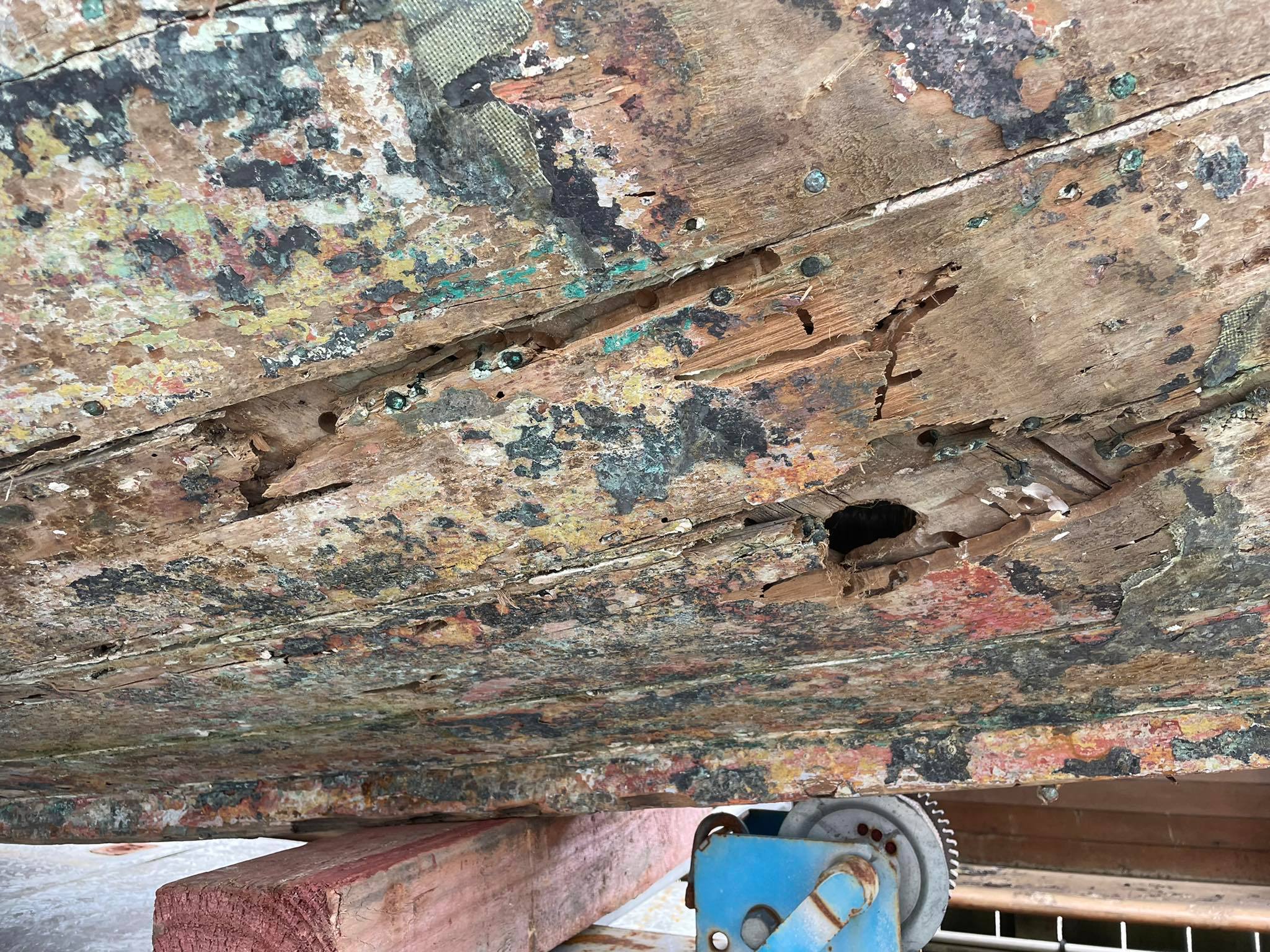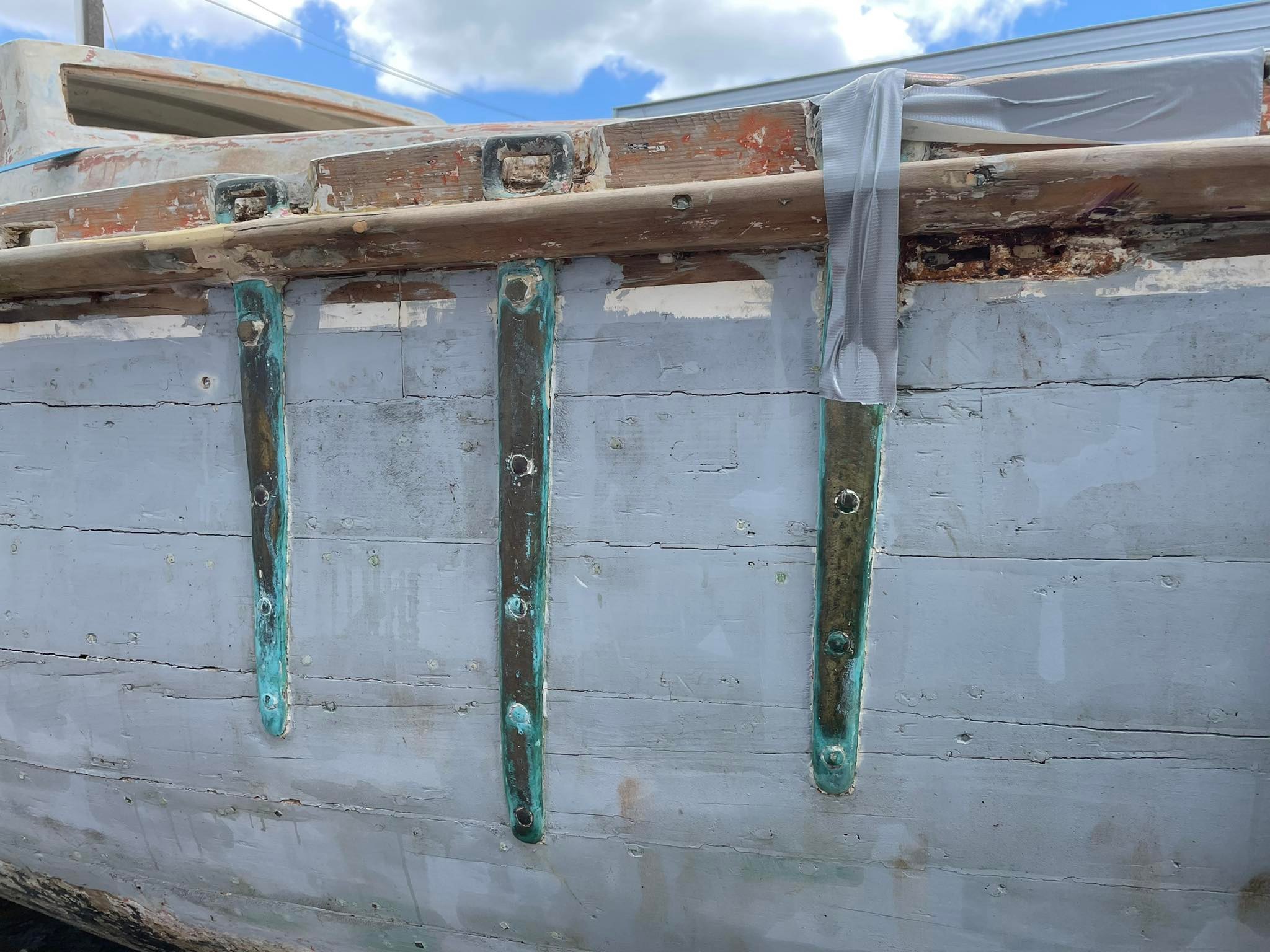 But it didn’t stop there – with a lot of lobbying from myself and Jason Prew (Slipway Milford) WAIKARO’s coamings were taken back to bare wood and she got the Awlwood (Uroxsys) treatment + the additional of some shiny bronze bits. And that transformed WAIKARO into the striking craft we see today. See below photo of WAIKARO as purchased with painted coamings.