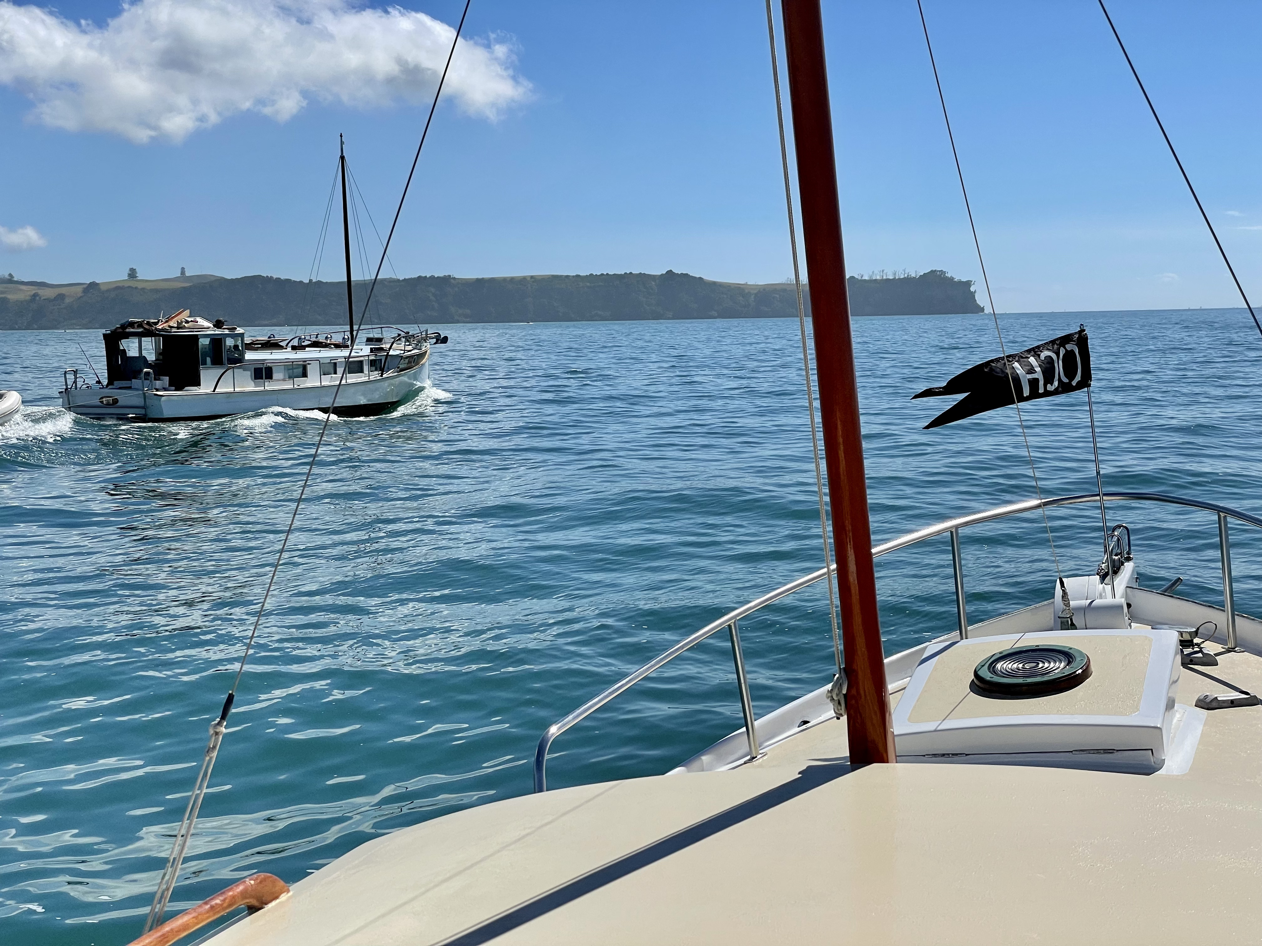 Sad to report only one vessel on the start line (late) – the organisers yacht. Well he had to turn up I suppose. At the published time a launch arrived from the direction of Waiheke but with not another vessel in sight – didn’t hang around.