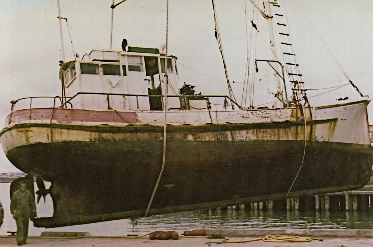 We were advised by a few sceptics to put a match to her, she will never go to sea again, however after a week or so into the repair and it was seen that we knew a bit about wooden boats some of those on local fishing boats and other workers about the wharf became very helpful when it came to advice on where best to procure some items we required during the repair. One person who was especially helpful to us was a retired fisherman Frank Roper. We learned that Frank was held in high regard by the local fishermen and was known to most on the wharf. He approached us saying in his retirement he needed something to do and could he help, and what a help he was.