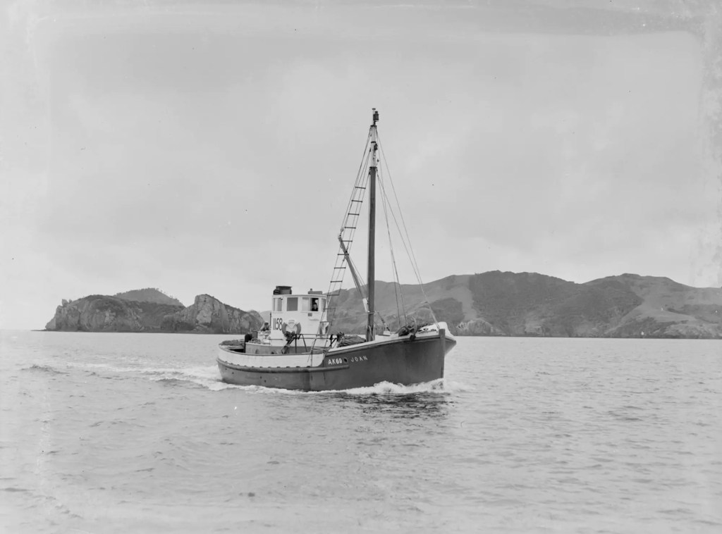 04-11-2024 Input ex Steven – My Great Grandfather was James Donald and the “Marion D” was named after his wife. I have just inherited his Hardy Bros “Sea Silex” 7″ reel and Tanekaha rod that he used when fishing with Zane Grey along with two photos, one holding the Rod and reel fighting a fish, the other with a swordfish in deep water cove, BOI. My Great grandfather used to have a wool-mongers in Cox’s bay and would cruise the coast buying sheep from the farmers and then have them barged to Cox’s bay Auckland. This saved the farmers from having to walk there sheep to Auckland. Alex was his oldest Son, Trevor was the middle son and Raymond(my grandfather) was the youngest son. He also had a daughter but everyone called her “Girly”. So I am unsure of her name. From what I was told The Donalds still owned the boat during WW2 as it was commandeered from the family by the Navy during the war. Great to know she is still around, I had come to a dead end searching the “Marion D”. I will look out for a boat named “Joan”