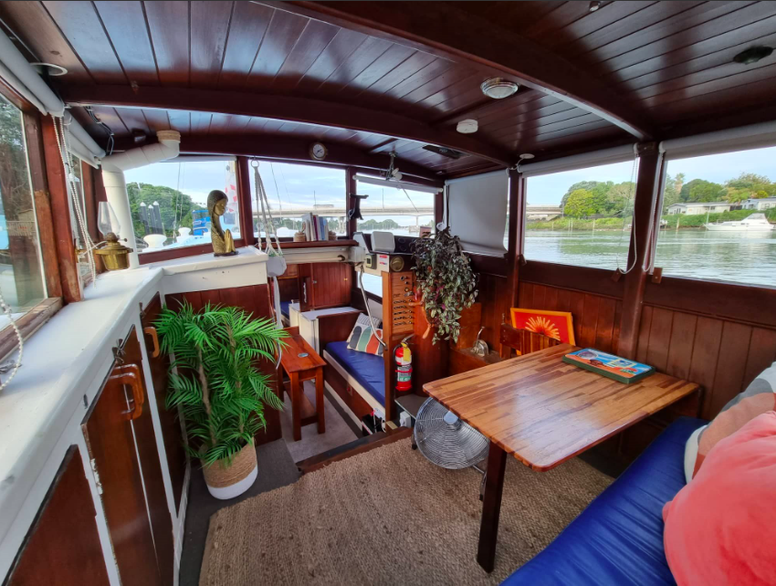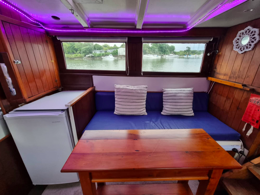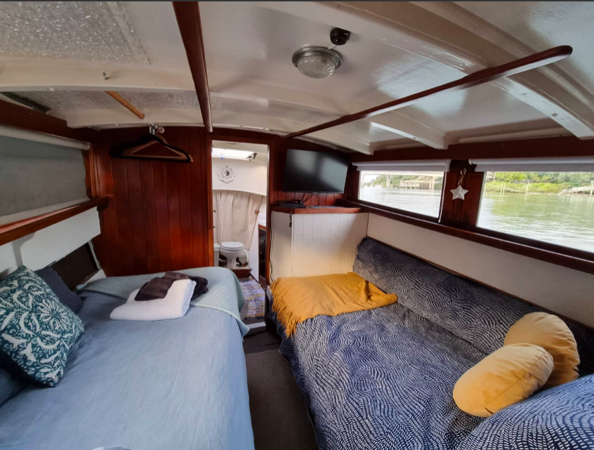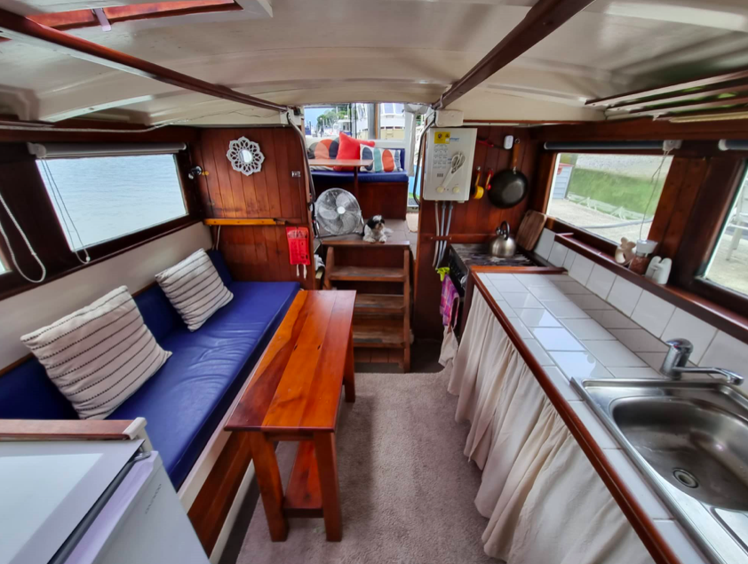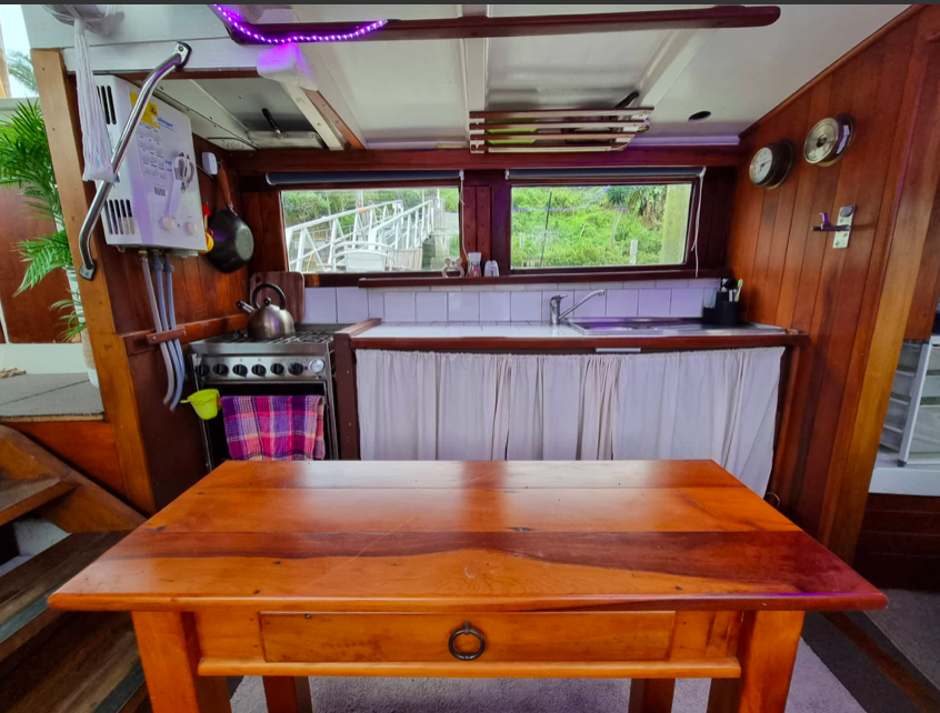 The 40’ ex work-boat Sierra was built by Joseph Fell at Kohukohu on the Hokianga Harbour in 1917, making her 105 years old. She had a complete rebuild in 1998. Forward motion is via a Ford 120hp diesel engine.