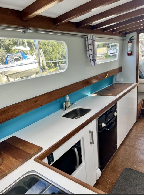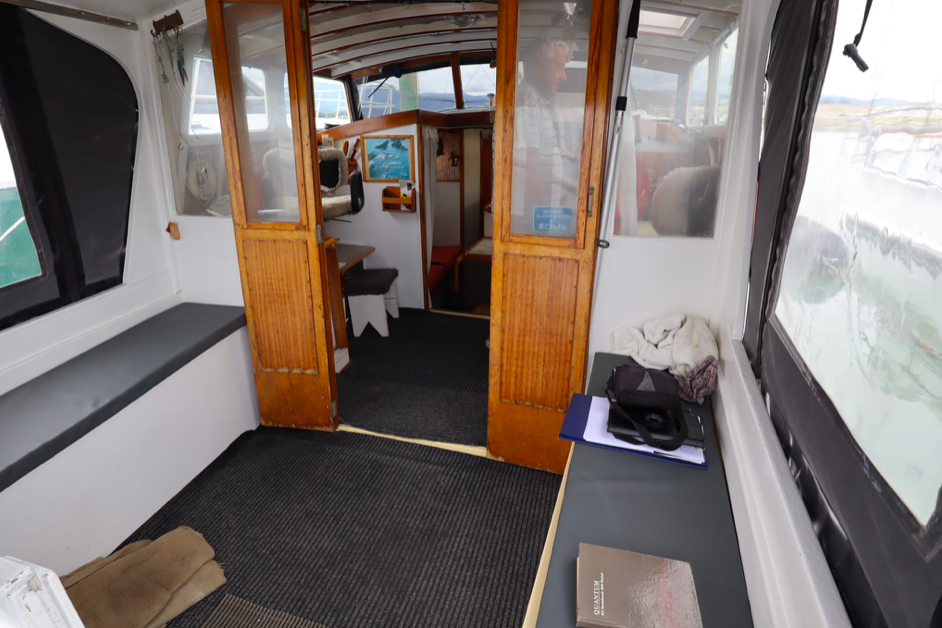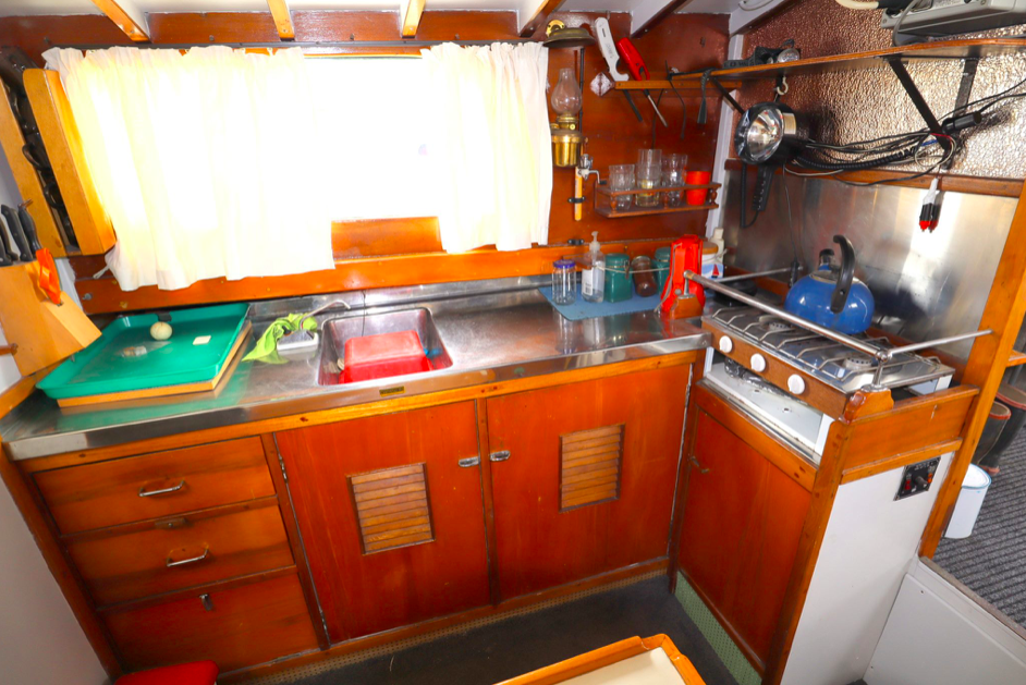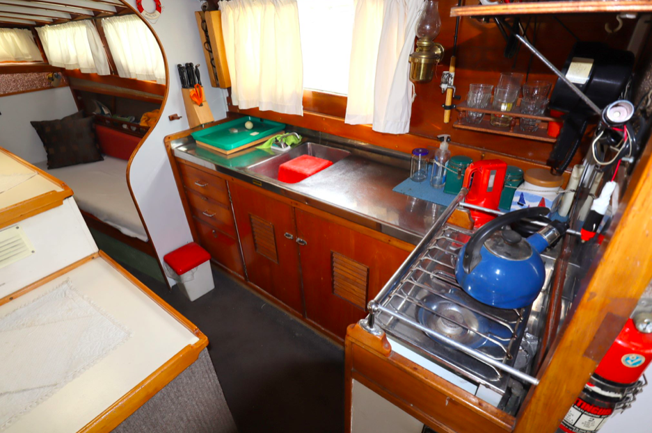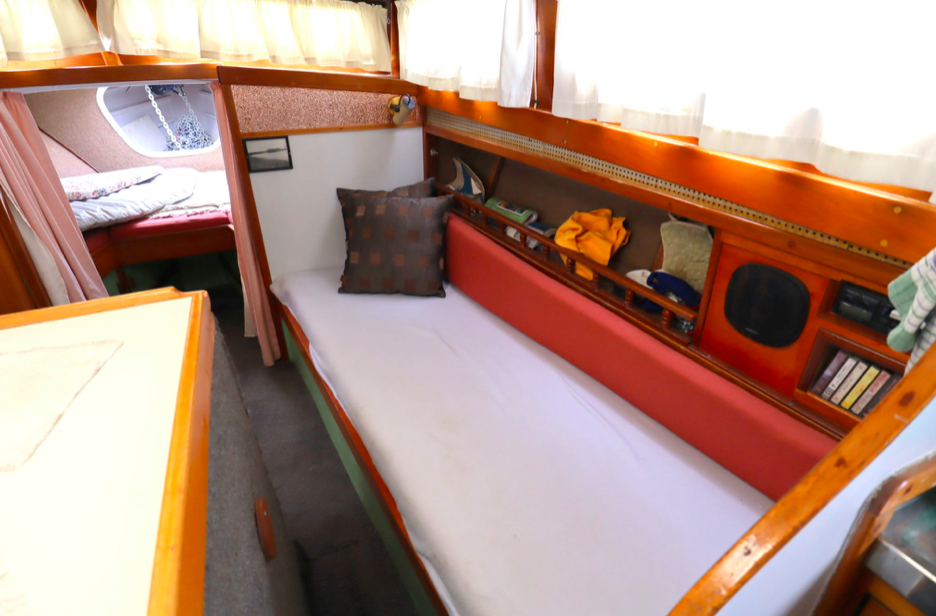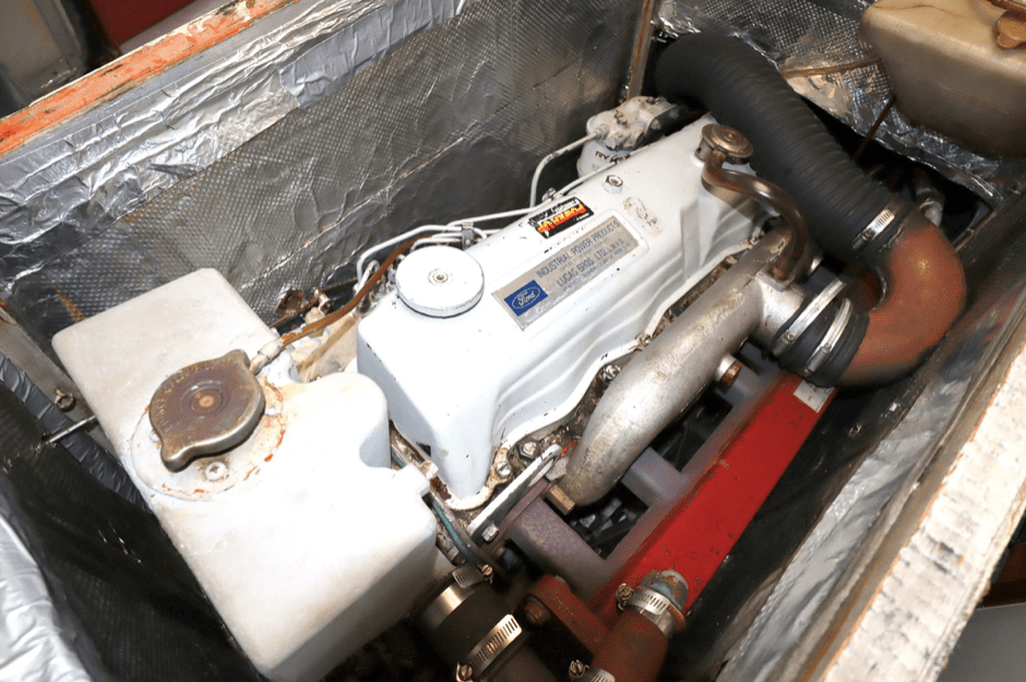 A Ford 120hp 6cyl. diesel gets her along at a comfortable 9 knots.