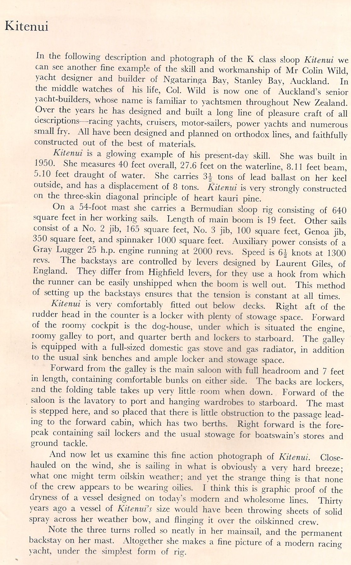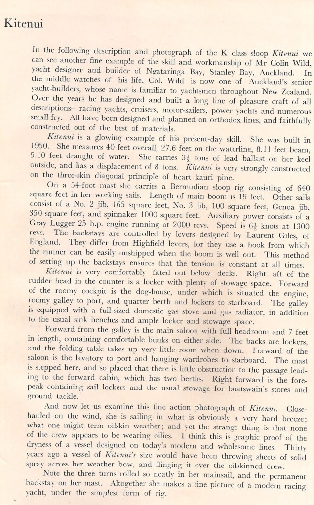 I would recommend that anyone interested in Kiariki or in fact the K Class, should purchase a copy of the magnificent book ‘K CLASS – The Hauraki Gulf’s Iconic Racer – Cruiser’.
