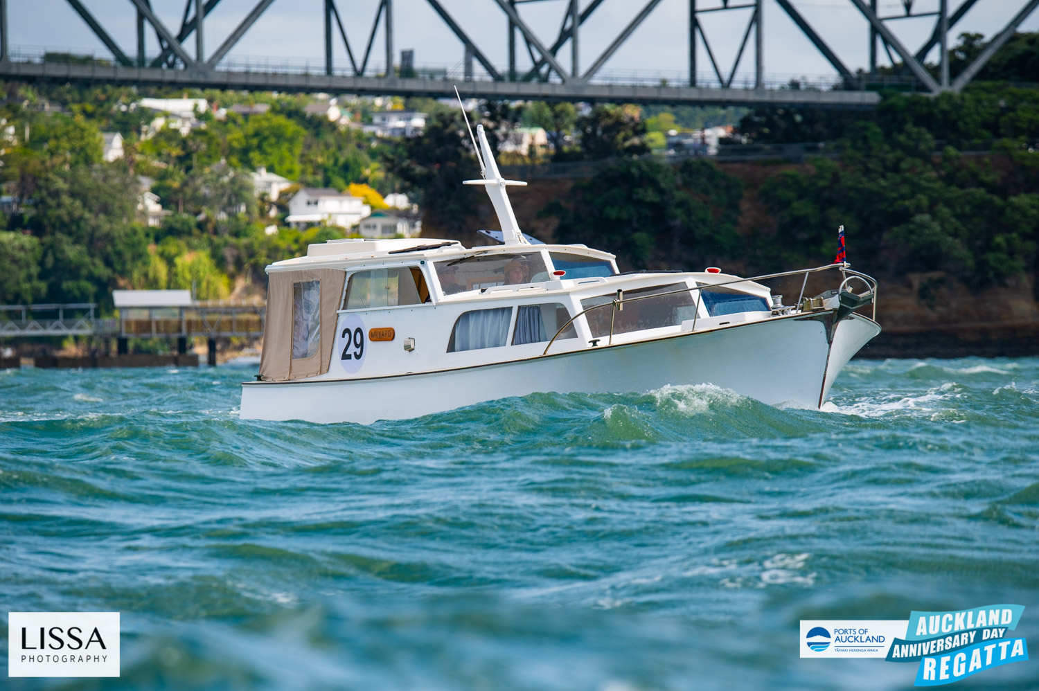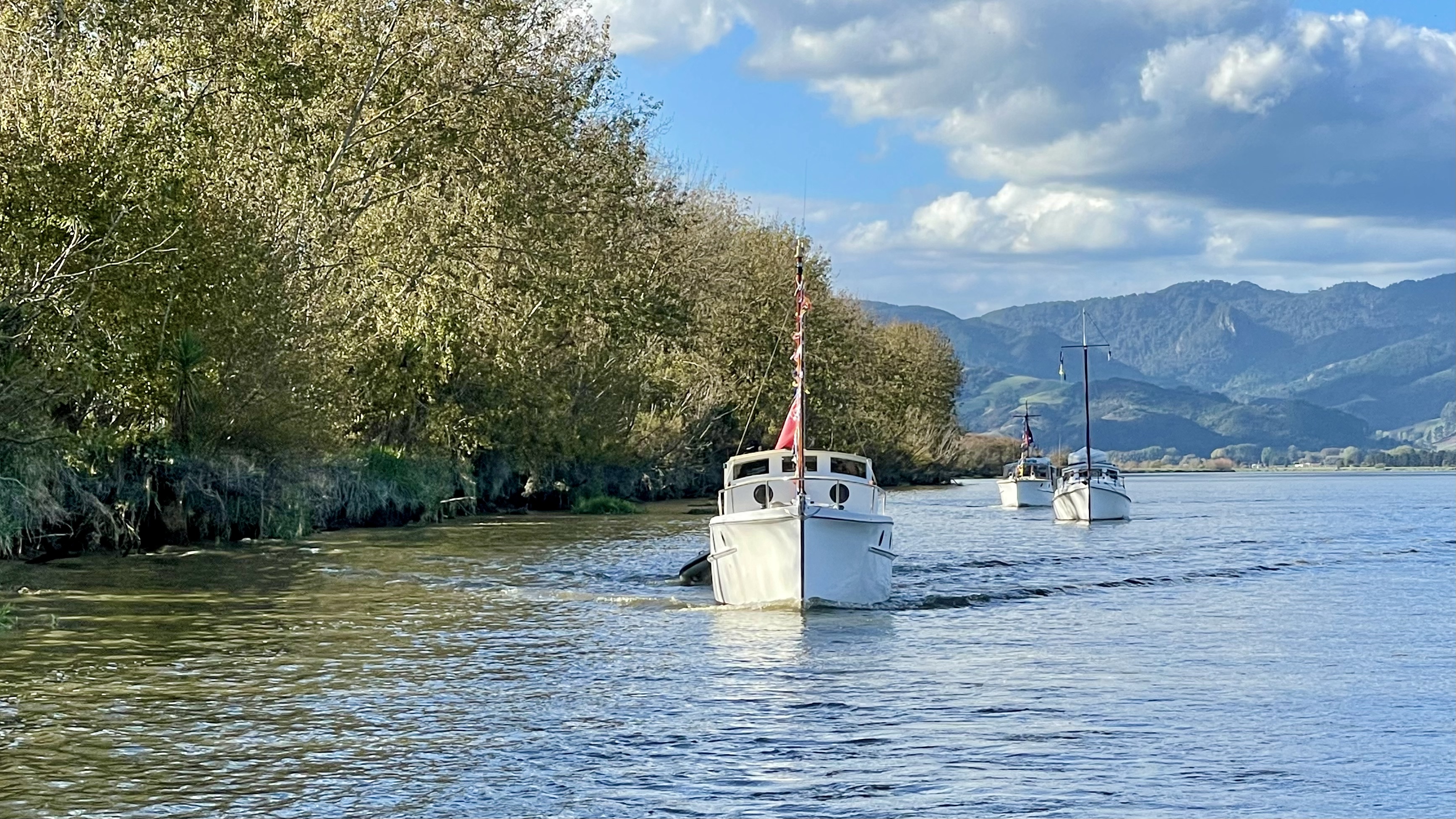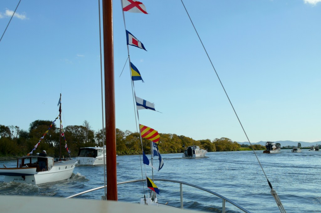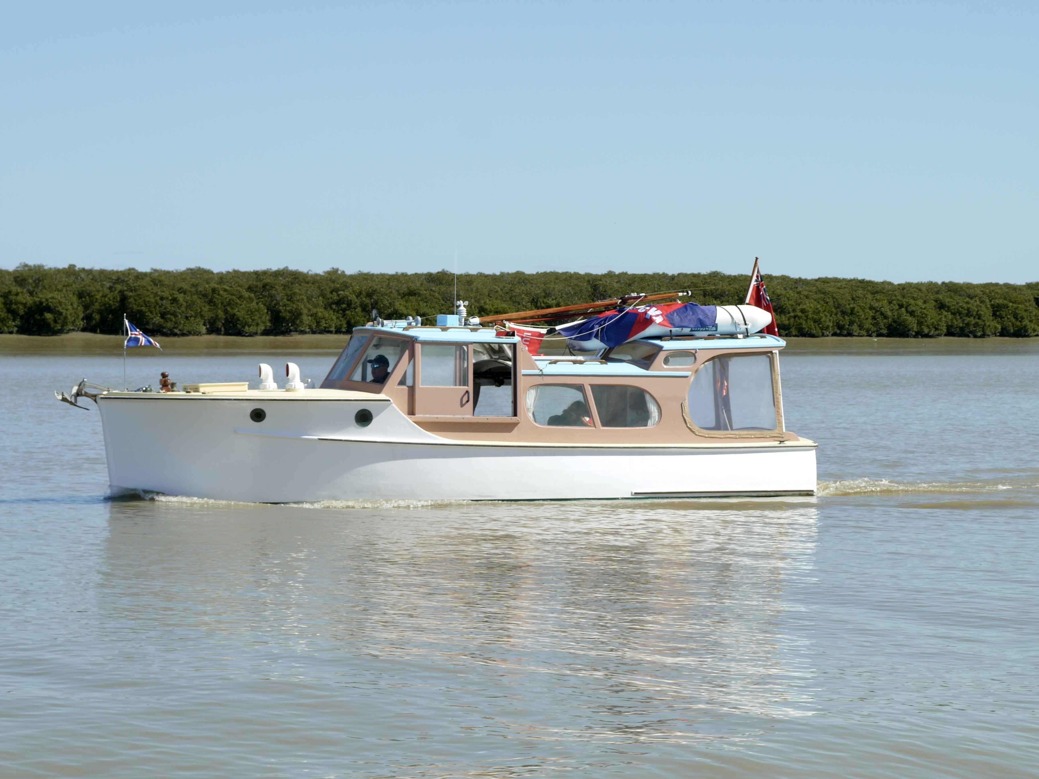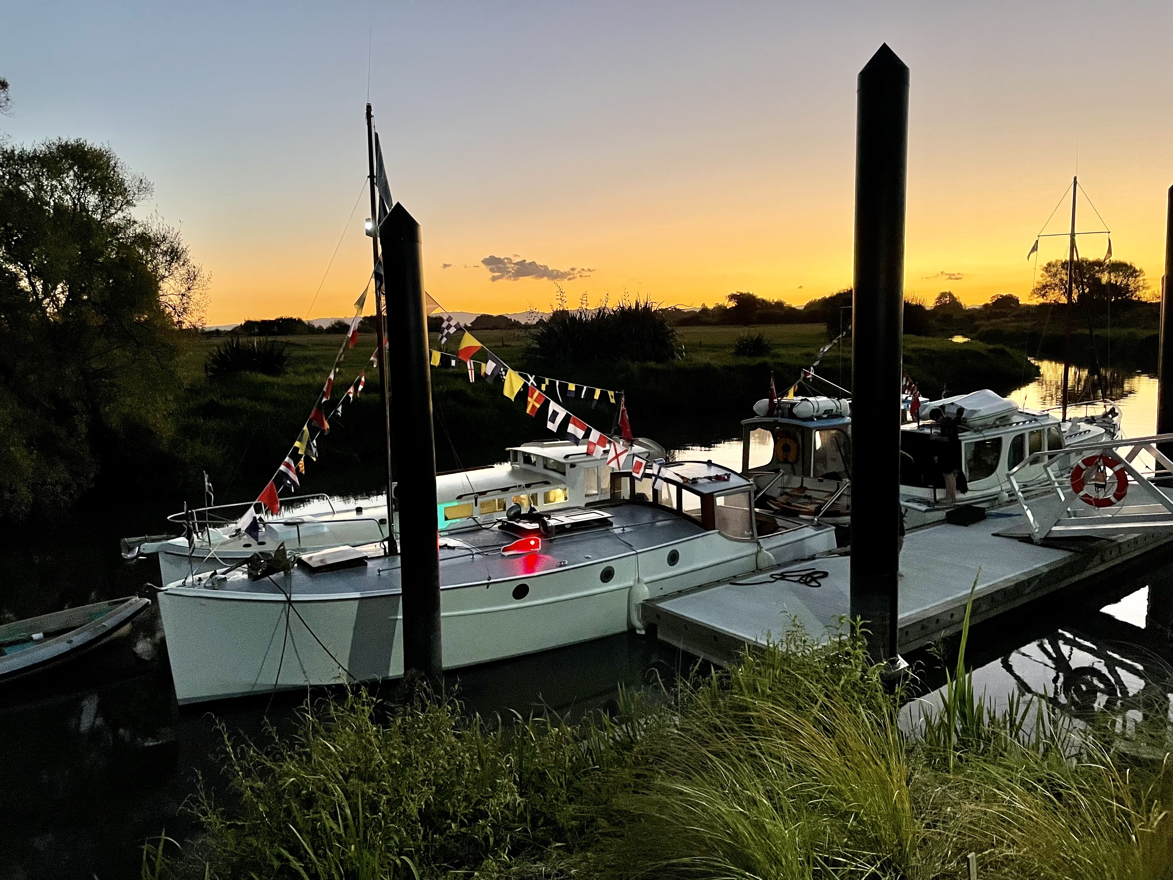 NGARUNUI was built in 1955 by Jim Young and started life, with a 1942 GM Detroit Marine Diesel engine (ex-war assets). It has now been fitted with a late model 200hp DOOSAN Diesel and has a Yanmar 20hp diesel auxiliary engine, with the prop for that engine mounted immediately above the main propeller.