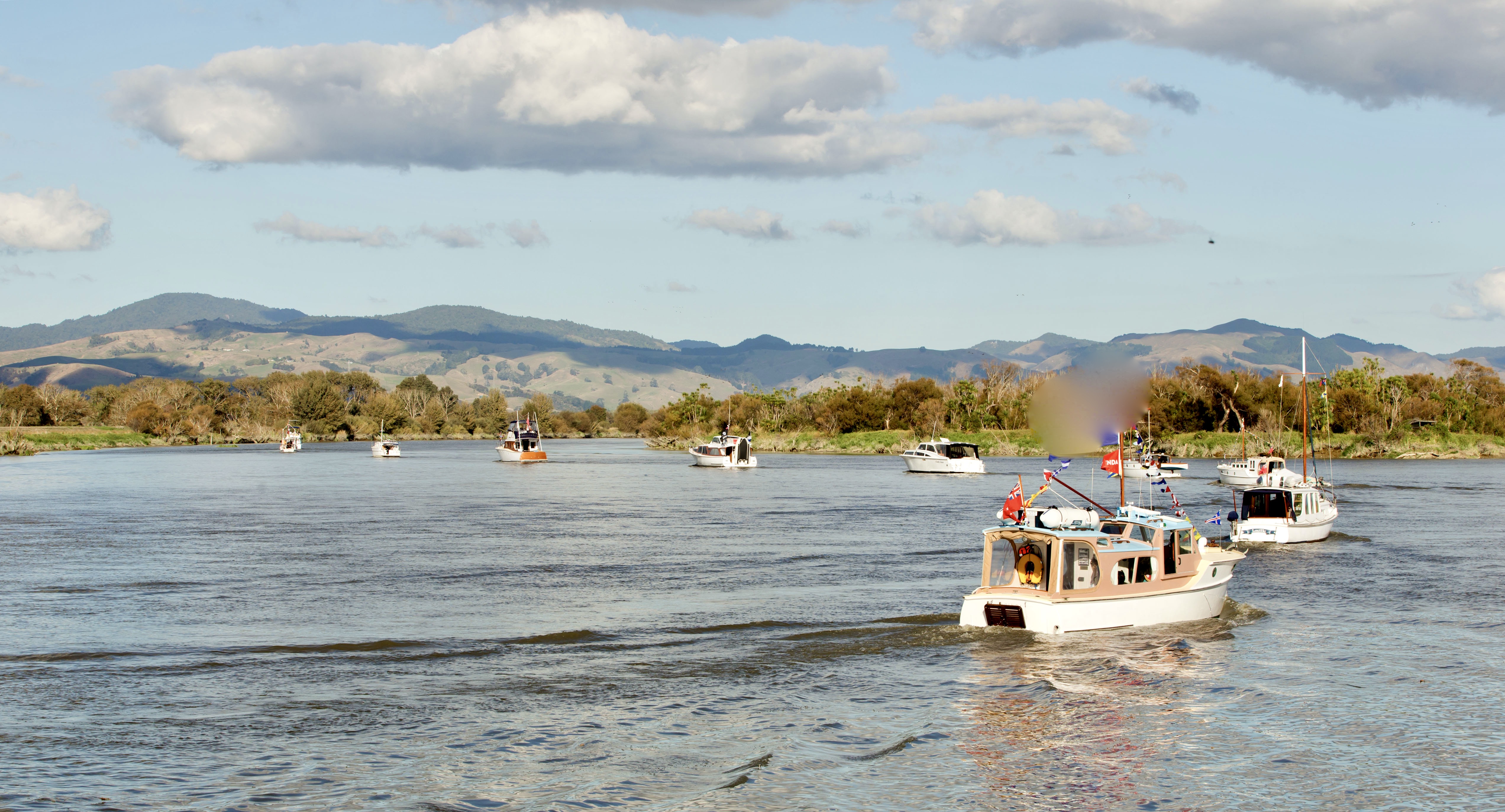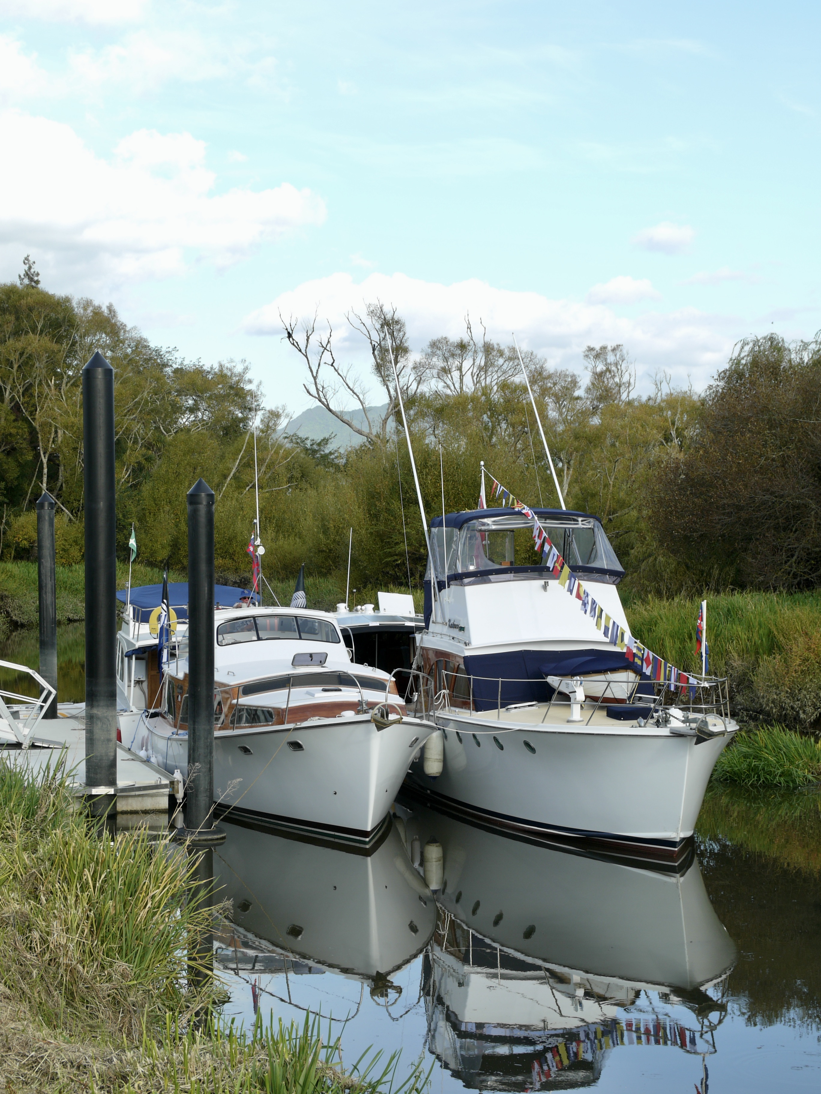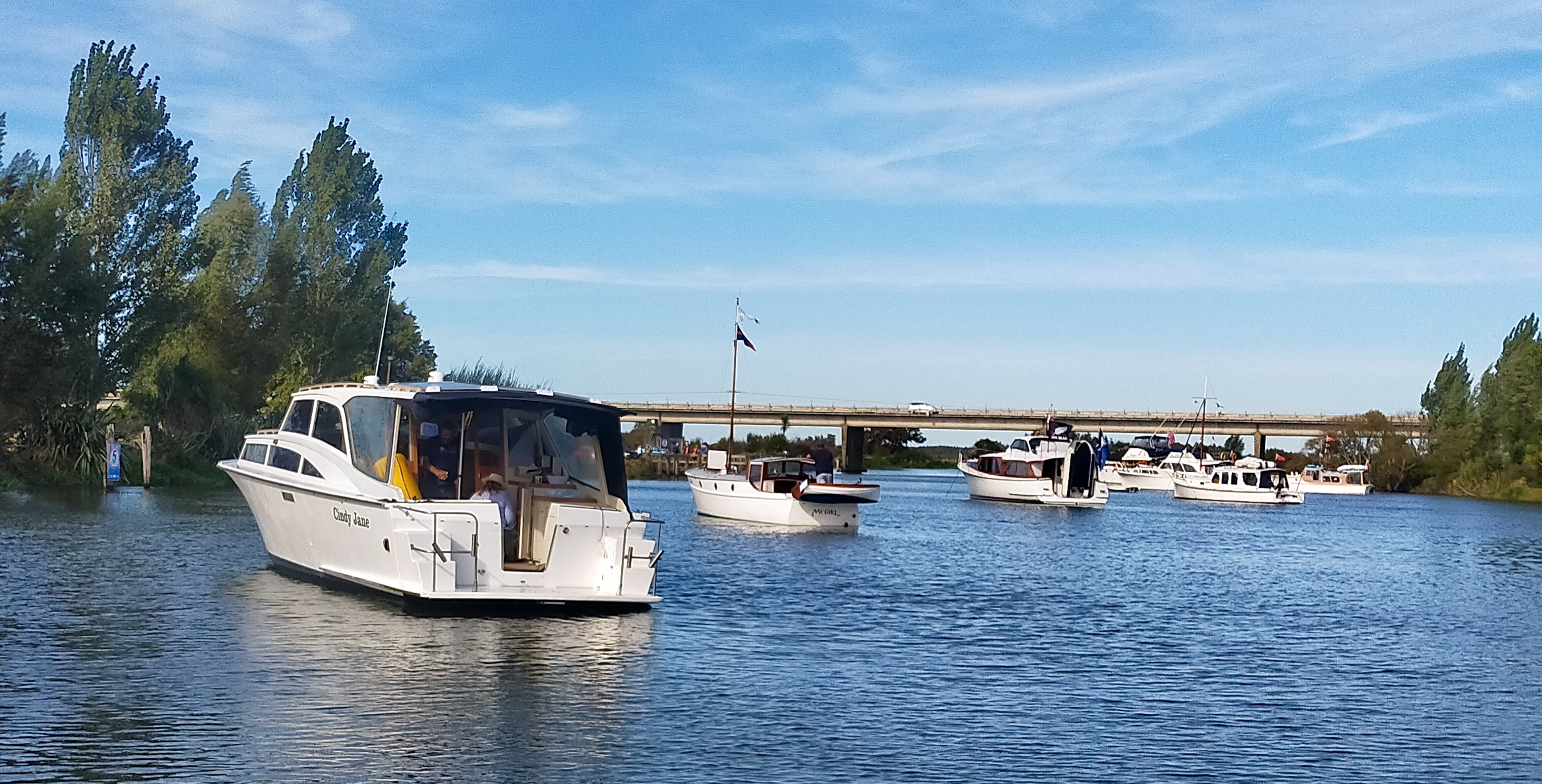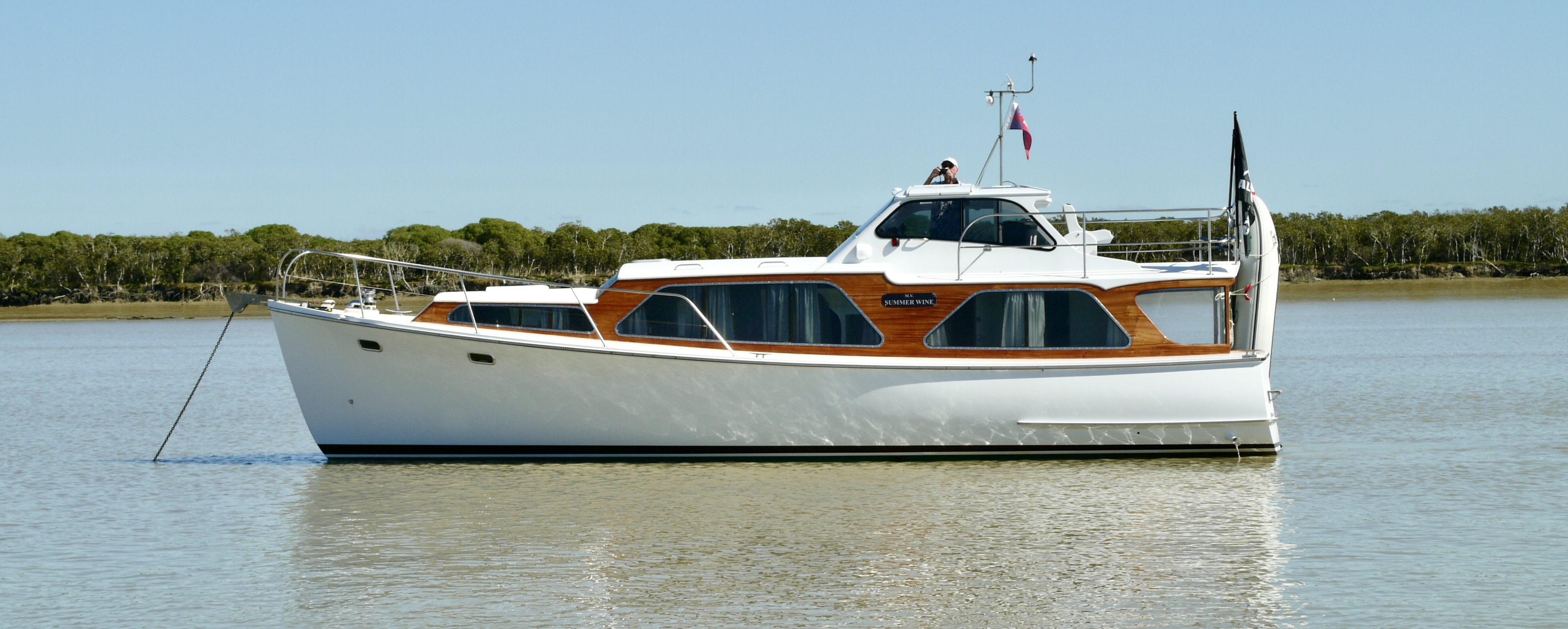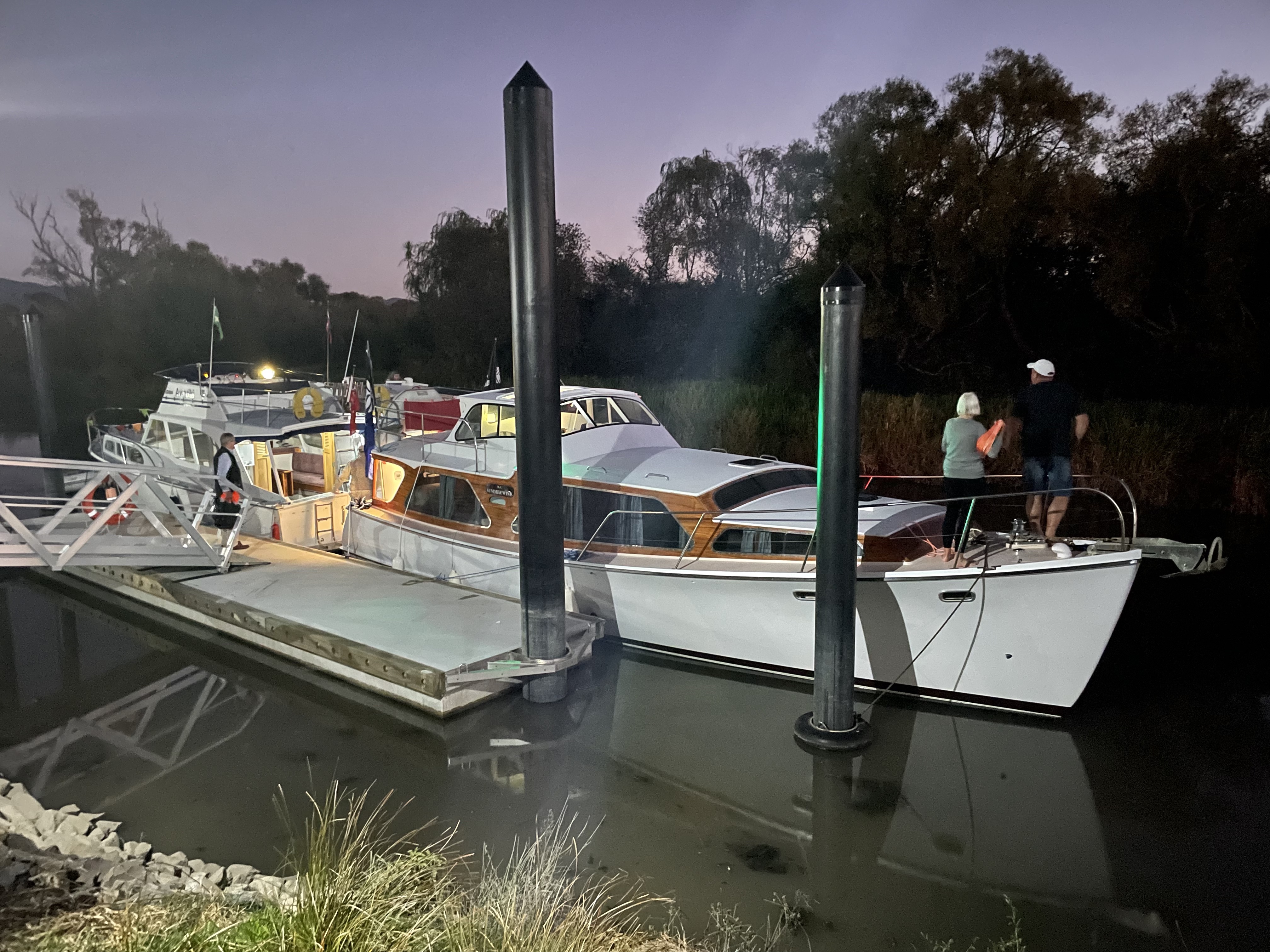 NGARUNUI was built in 1955 by Jim Young and started life, with a 1942 GM Detroit Marine Diesel engine (ex-war assets). It has now been fitted with a late model 200hp DOOSAN Diesel and has a Yanmar 20hp diesel auxiliary engine, with the prop for that engine mounted immediately above the main propeller.