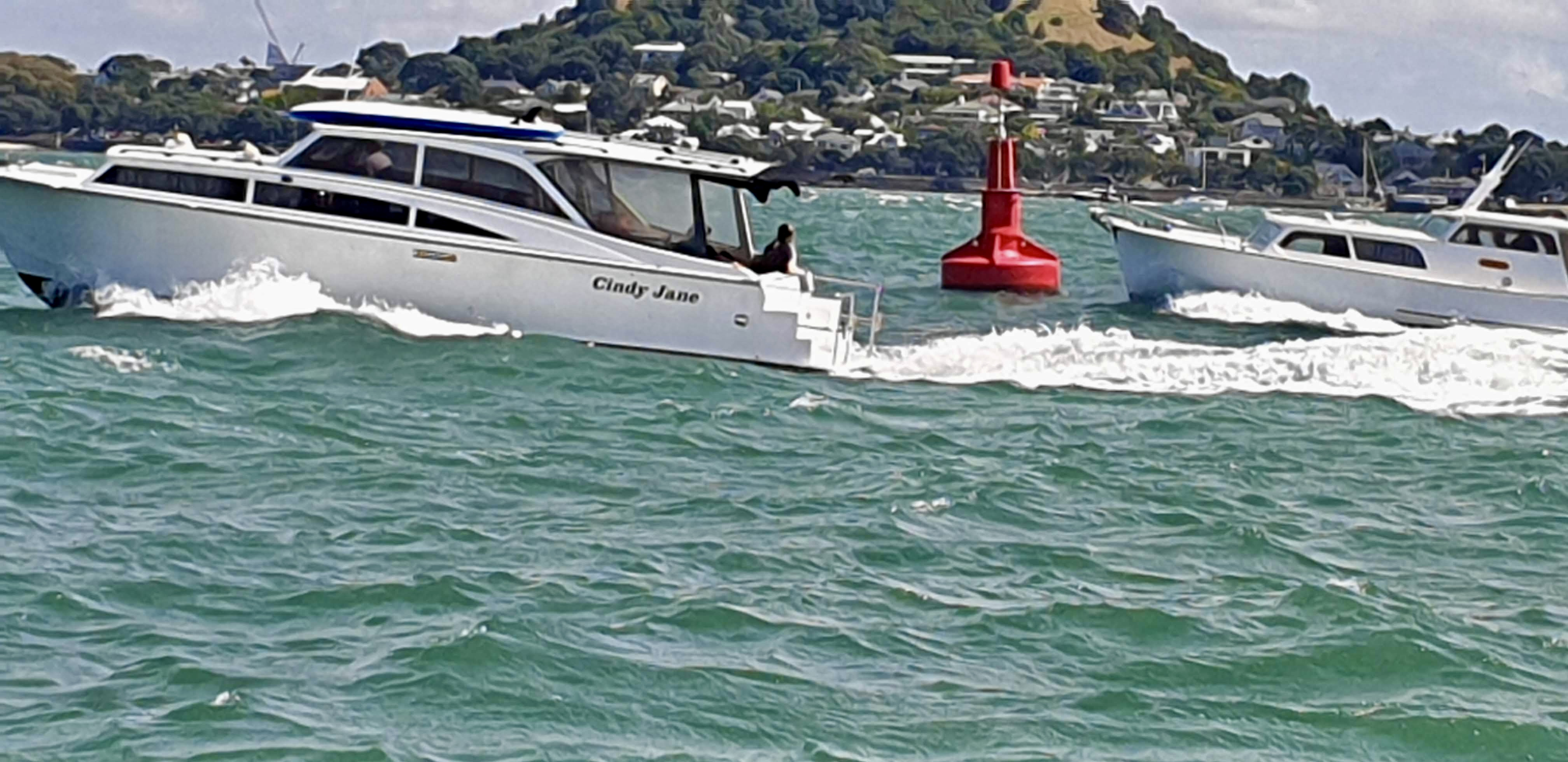 The 510 cubic inch, 165 hp V8 Perkins diesel engines are in only four boats that I know of. The Eros (Lady Kiwi) had two fitted when new, the Moana Lua had one fitted around the 1990s, I believe. I had two of them put in my own boat, TIARRI, a modified 40-foot Vindex, (we added an extra 18 inches of beam) when she was being built for me, and launched in October 1979. There is also the P Vos built KAIKOURA, which had her original two 165 hp Kermath Seamate Special petrol engines replaced by the Bridgeford family of Mission Bay, owners at that time, in the 1960s-70s. She has had two Perkins 510 c.i. V8s ever since.