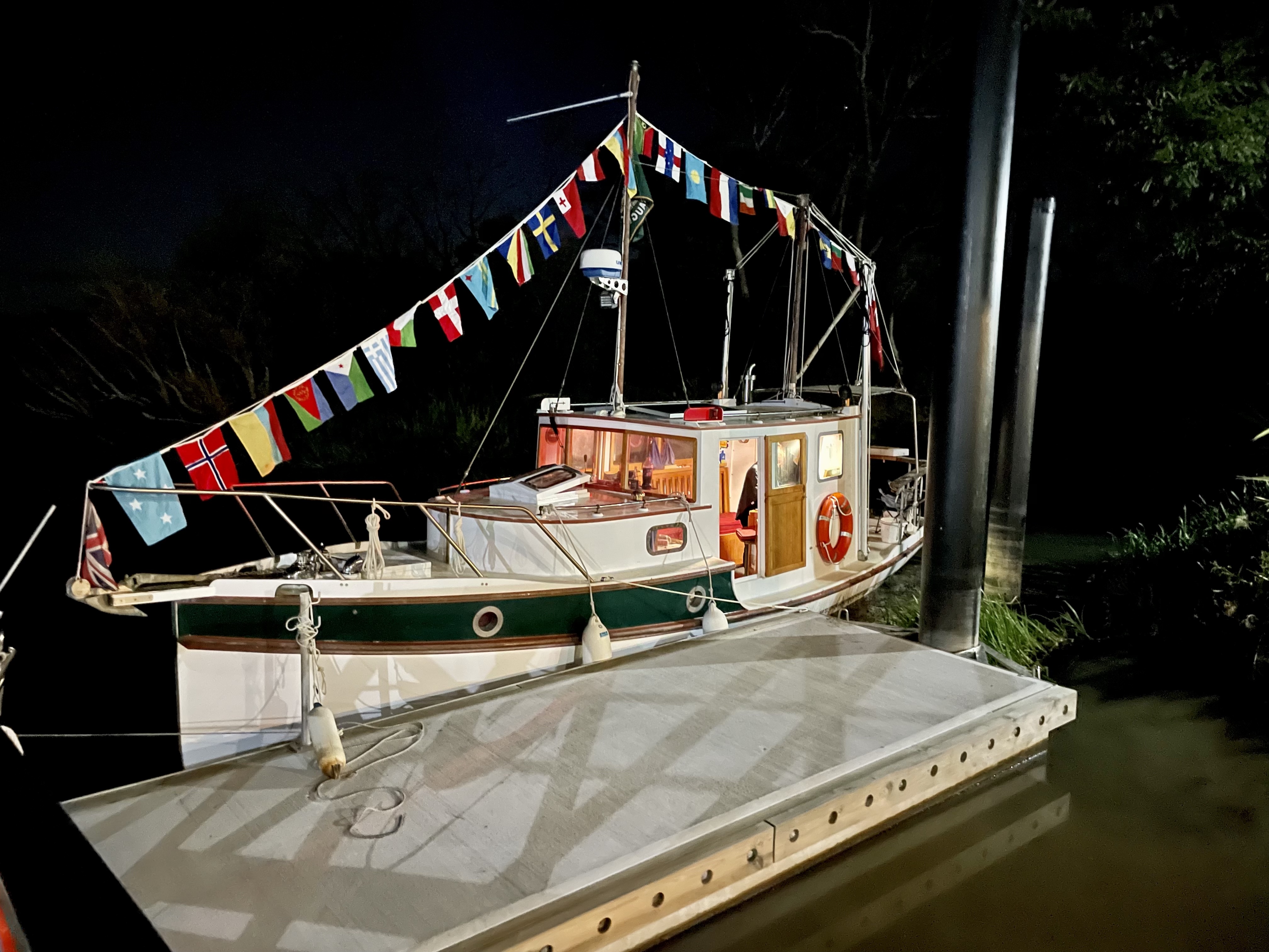 One unusual thing to note was that her Kelvin started on petrol and then switched to diesel after starting, which is unusual in pleasure craft.
