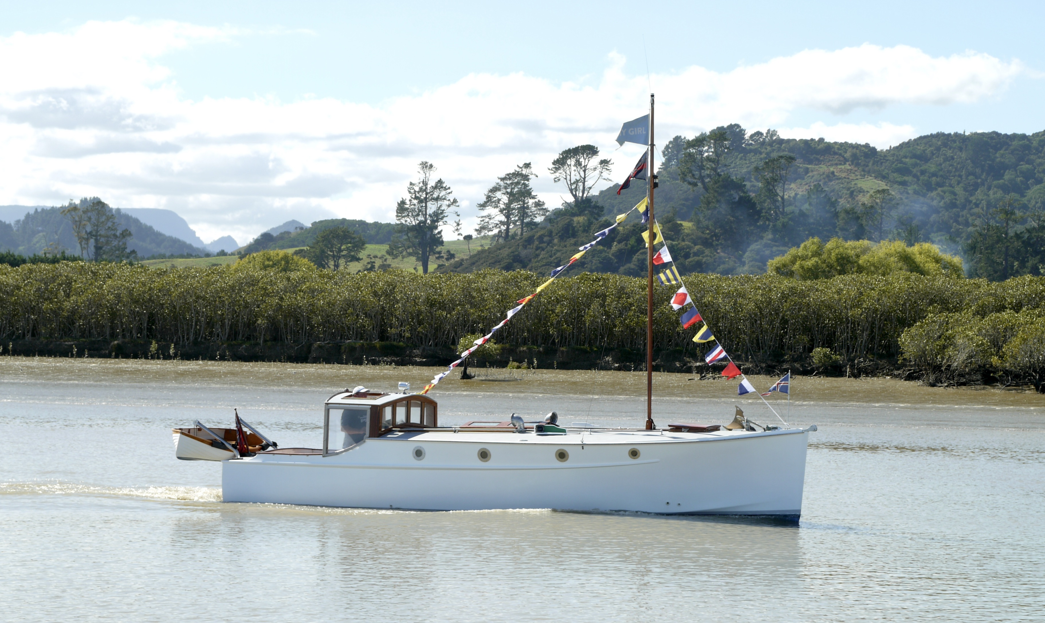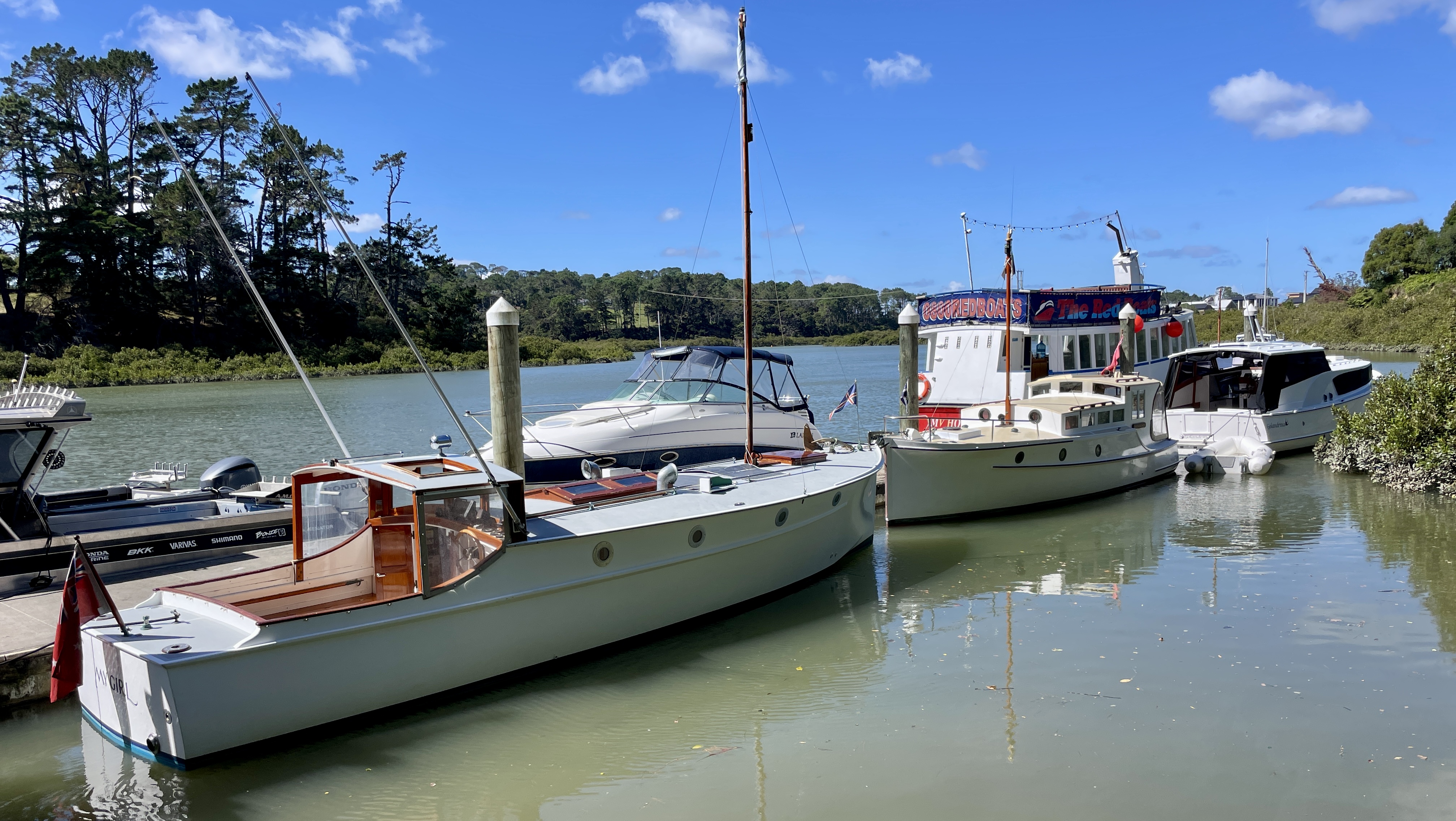 The Sandspit to Mansion House Bay Kawau ferry – MAIRE, was built by Roy Lidgard in his boat building shed at Smelting House Bay, Kawau, in the late 1940s for Allan Horsfall, owner of the Mansion House Guest House/Hotel. She was fitted with a 4-cylinder Kelvin Marine Diesel engine and was part of the ferry services to the island right up until the property was sold to the Historic Places Trust around 1977.