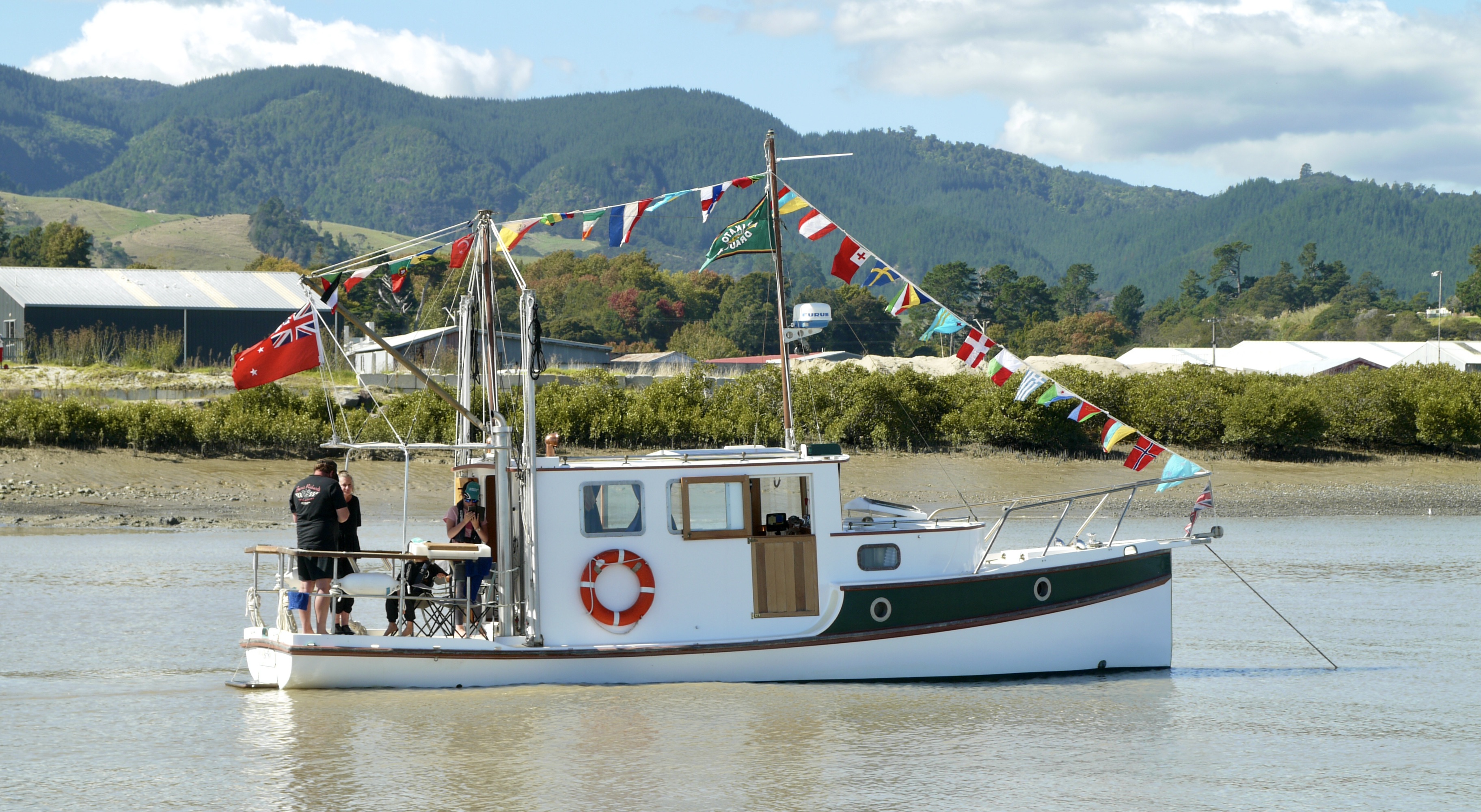 Moana Lua has had quite a few engines in her life, I believe the current engine is a John Deere. When she was owned by Ken Burrowes from the late 60’s to early 80’s I understand she was originally equipped with twin petrol engines and then Ken replaced them with a “Torpedo” brand diesel engine (I thought he was pulling my leg when he first told me this), which i assume was from this factory https://tractors.fandom.com/wiki/Torpedo_(Rijeka)