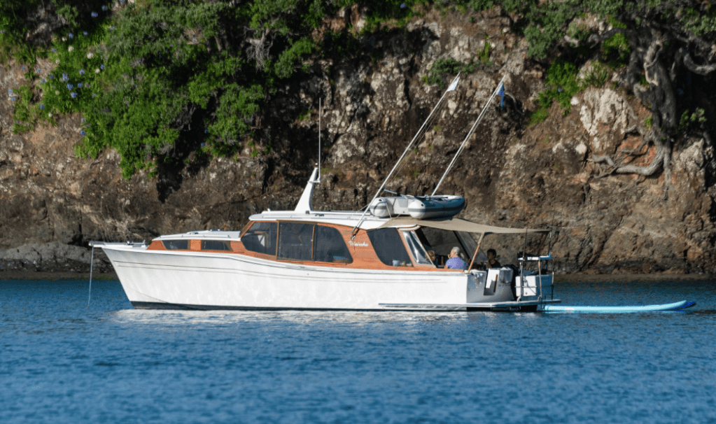 Noel had re-powered it in 1970 with a 180 Ford, giving a top speed of around 20kts and added a flying bridge from a corsair design. Noel visited the boat in Picton around the mid 1990’s, so it was still there then.