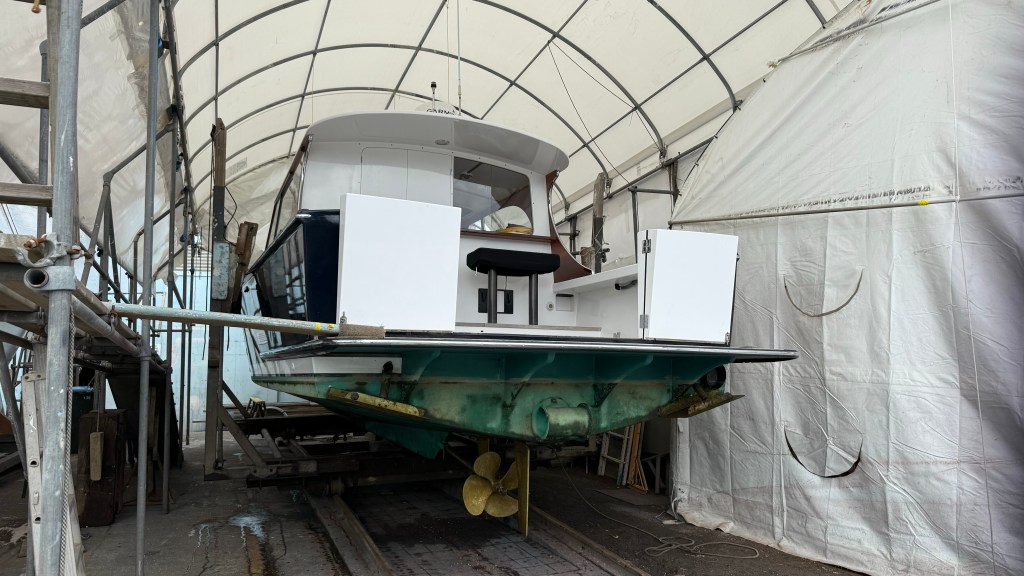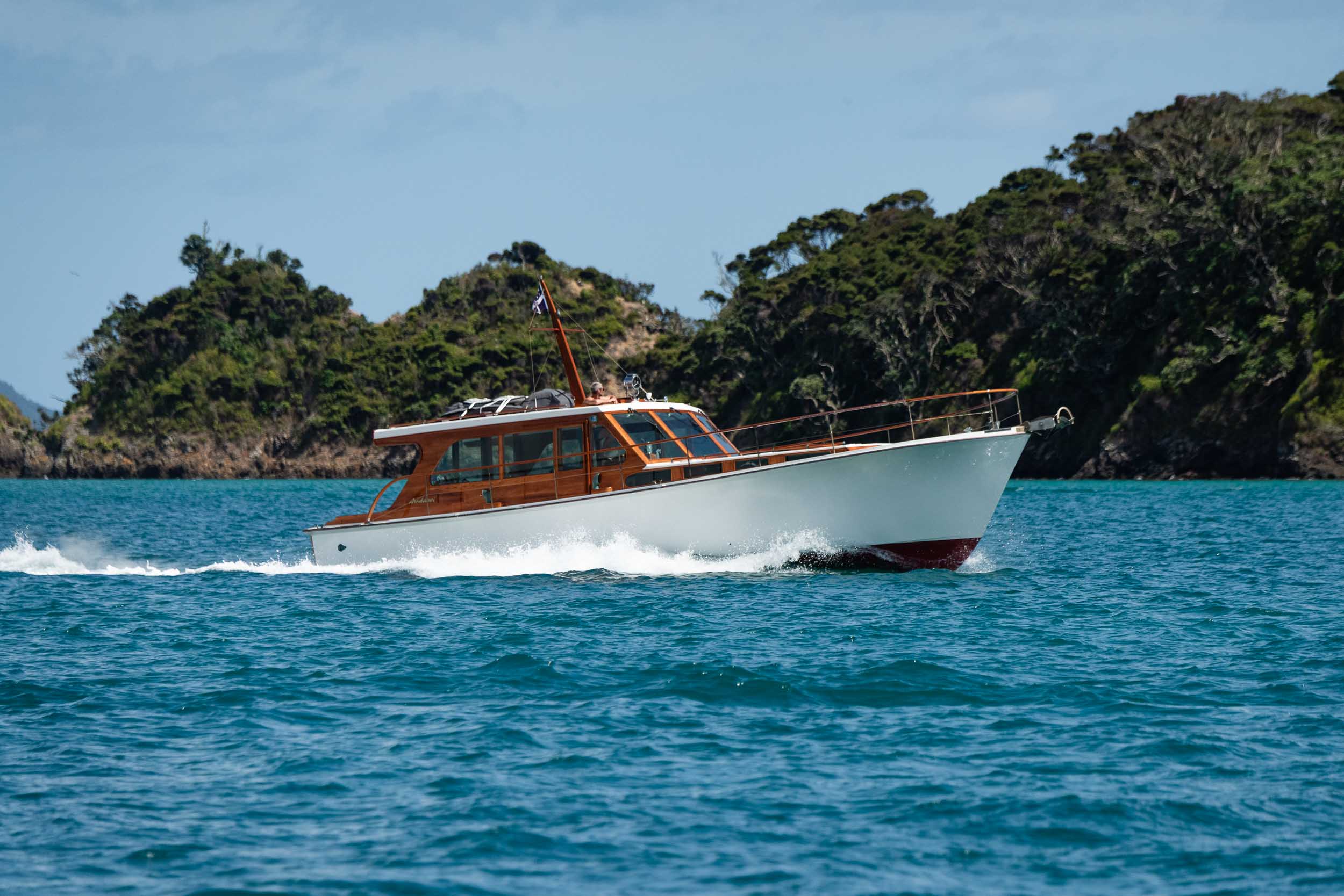 Sunday’s Woodys Classic Parade was the visual highlight of the weekend, showcasing a handsome flotilla of 17 classic launches for all those anchored in Bon Accord Harbour and watching from waterfront properties. Aside from a brief 10-minute burst of H₂O at the start, the weather came right and the parade looked spectacular.