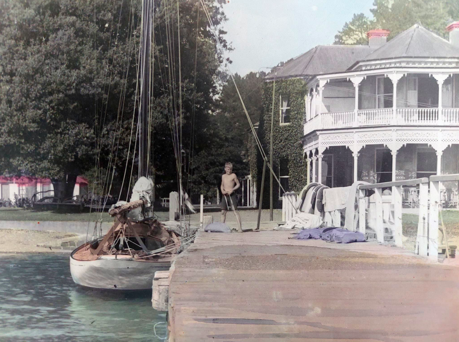 Today’s photo shows the yacht Nga Toa alongside the wharf in Mansion House Bay, Kawau Island and is dated 1933. It would appears that the bedding was getting some time in the sun. Photo ex Russell Brooke. To me its one of the coolest old woody photos I have seen.