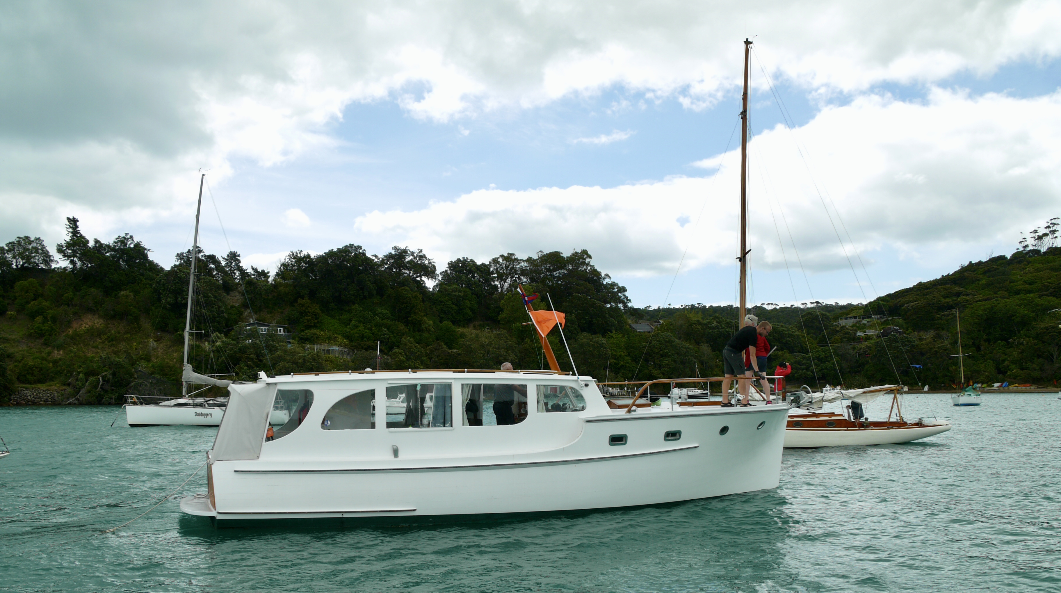 I came away from Mahurangi feeling very upbeat for the health of the classic wooden motor boat movement – there was in excess of 50 classic woodys in the Mahurangi Harbour and from that fleet 32 skippers participated in the classic woody launch parade. A record turnout, so I say thank you those that took part and specially those that dressed their craft.