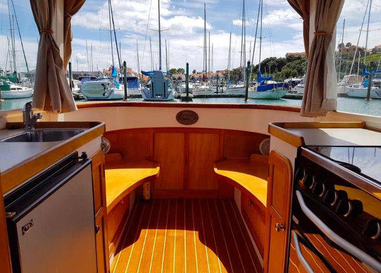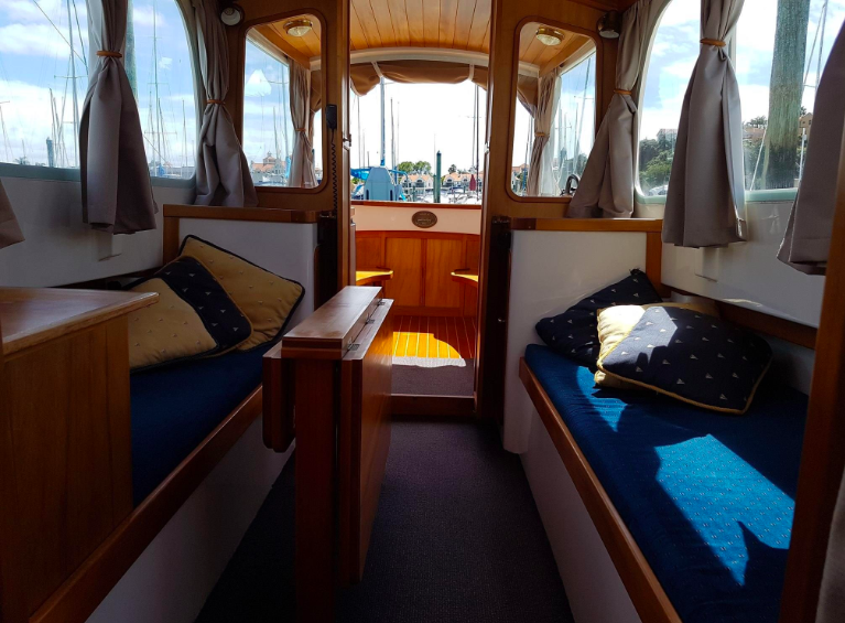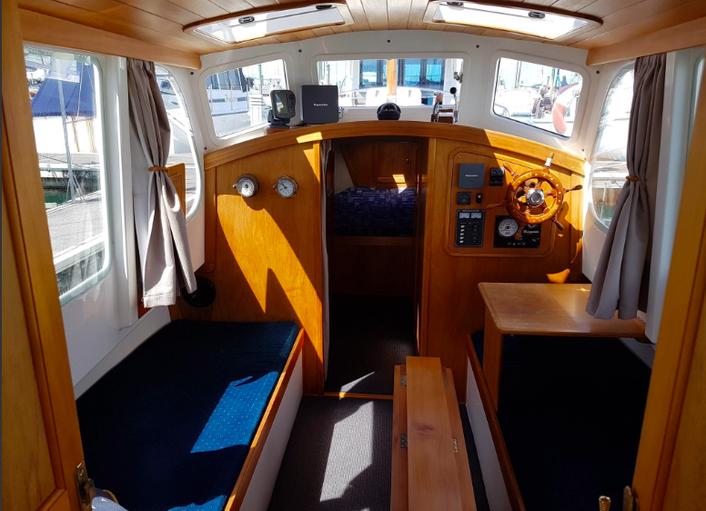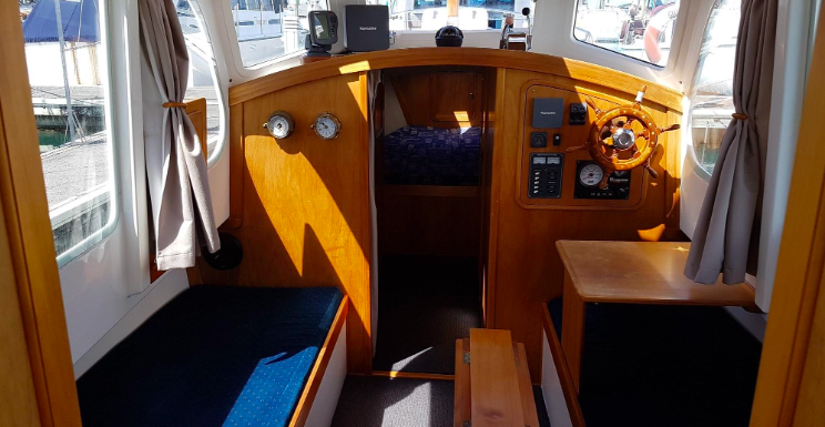 L33’s are very slippery craft – their 39hp Lombardini engine can achieve a comfort cruising speed of 8.5 knots. Add in the addition of a steadying sail, auto pilot, bow thruster, bilge keels and cabin heater and you have a very comfortable family cruising launch.