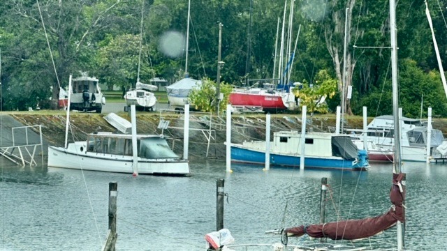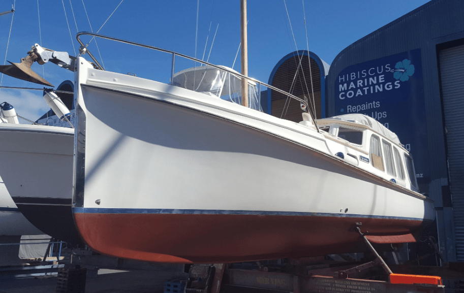 Back to FEATHER – after several weeks hauled out at the Slipway Milford getting some serious TLC that included a JPPJ* – she slipped down the railway slipway back into the Milford Creek on Thursday looking better than new. (*Jason Prew Paint Job) Photos & videos – Cam Malcolm, Jason Prew and Alan H)