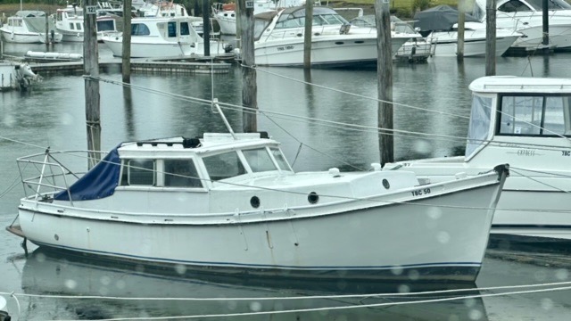 At first glance I might be a little to quick to use the term woody….. looks a relatively new hull shape and someone made good use of some plywood sheets on the cabin 🙂