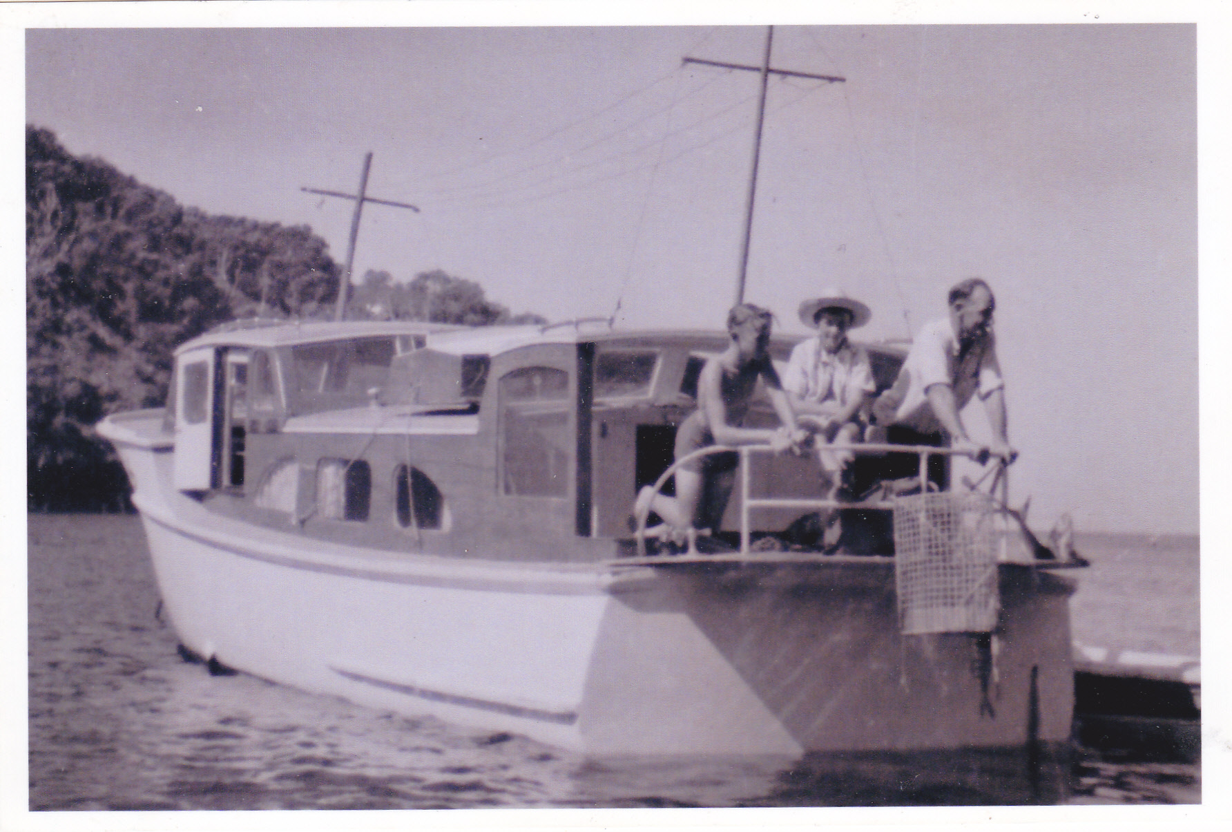 The photos above of the launch – Lady Joyce, currently named Lady Jane come to us from Robert Philips and were taken about 1963, when Len and Jean Perry owned her before Len had Aquarius built for him by Owen Woolly.