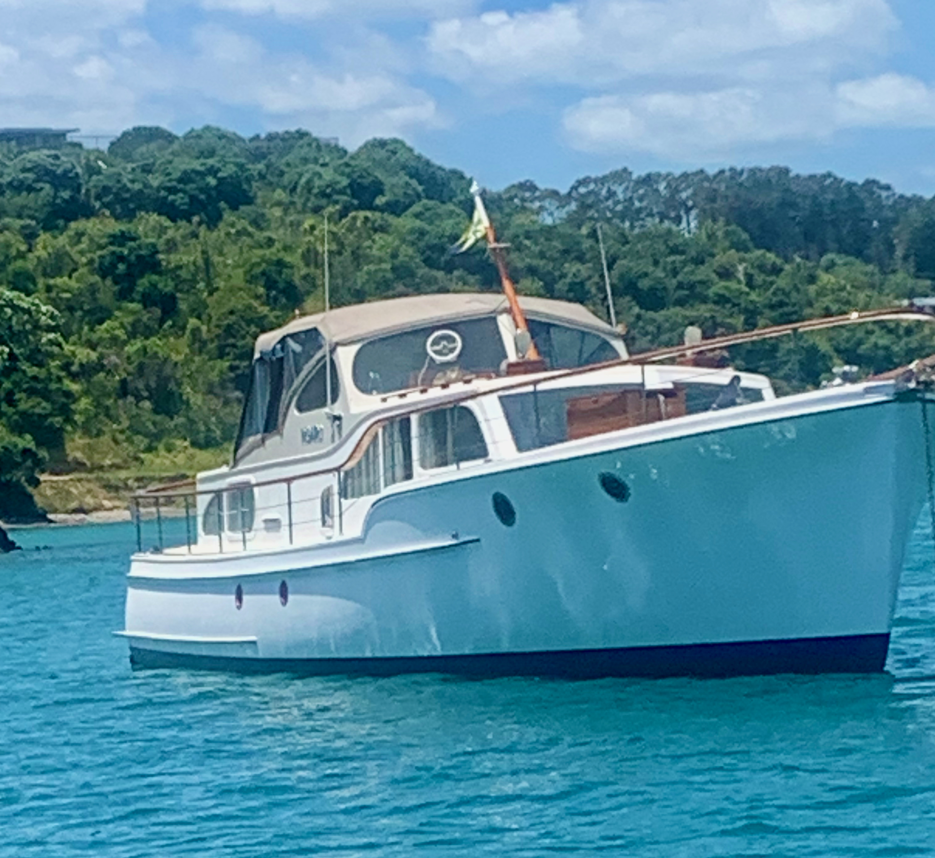 The only boat with these engines, is the first 40 ft Vindex to be built, designed by Jim Young, & built by Orams, of 2 skins of Kauri, in Whangarei, in 1972.