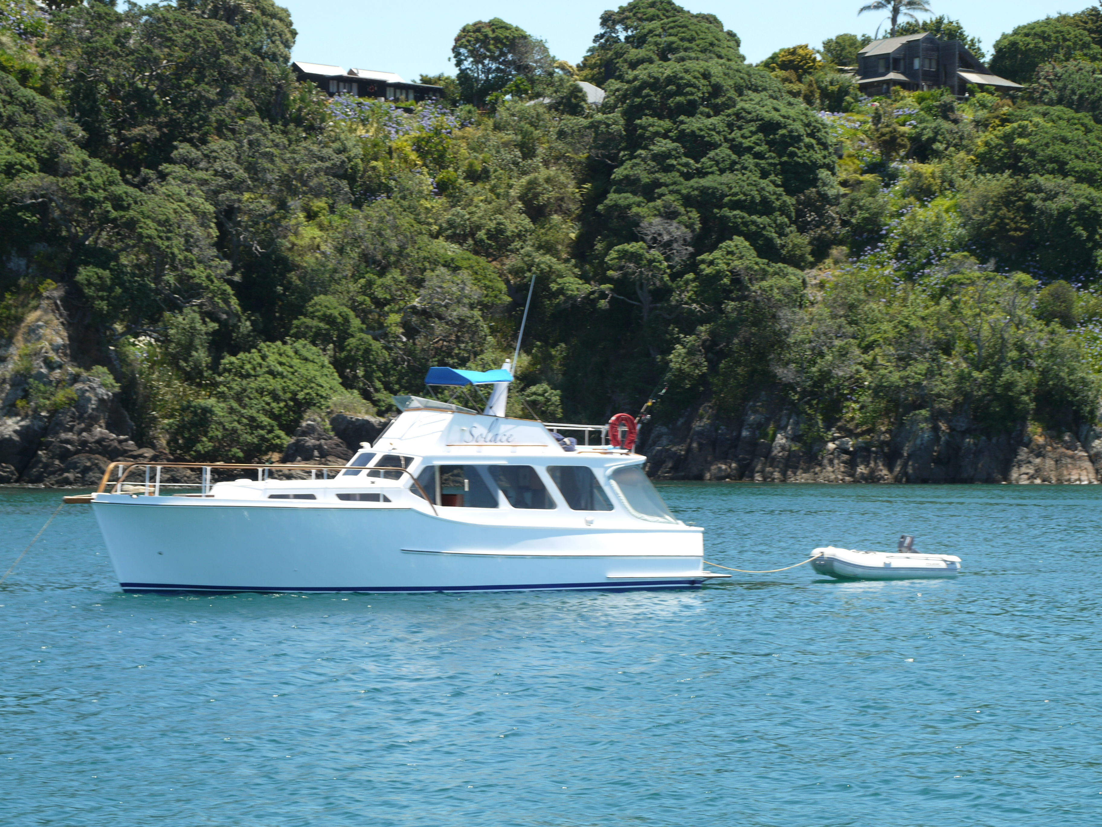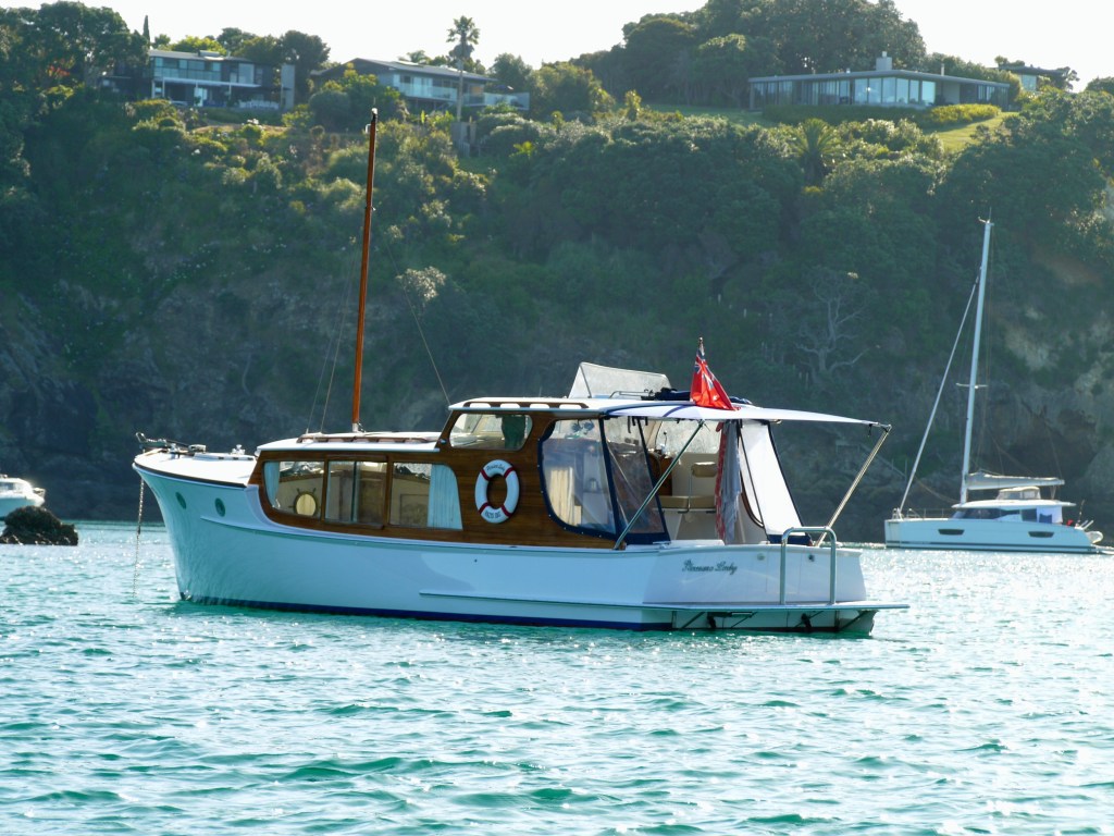 There is or was also, around the 1970s/80s era, a UK custom purpose-built rescue craft here, painted orange & blue, fitted with 2 x Thornycrofts, which was moored at Matiatia at one time.