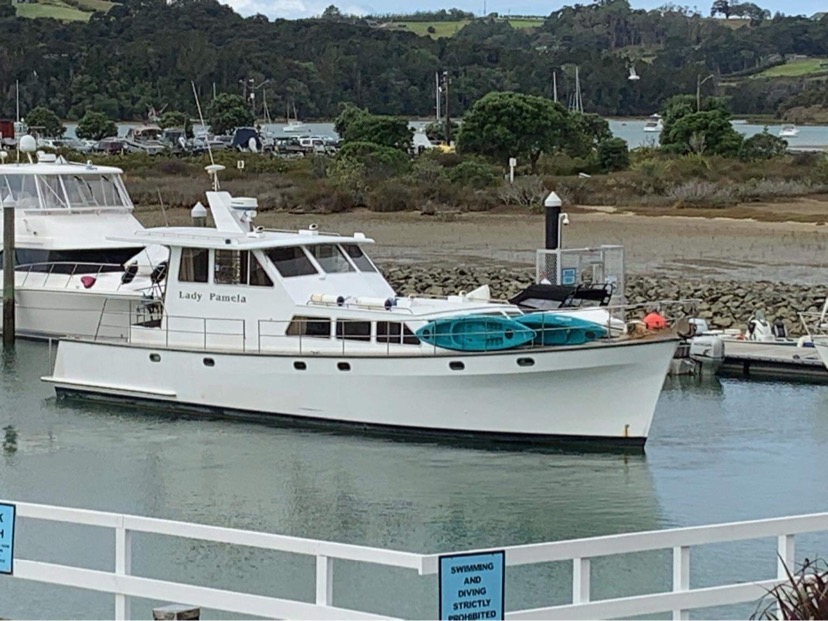 When I mooching around the marina scooping out the launch – Pirate, I noticed a small 4sale sign of the rather king-sized woody – Lady Pamela. Now I know its outside of the ‘classic’ category but its wood – triple skin kauri. Lady Pamela is 60’ in length with a beam of 17’+. Power comes from twin Ford 150hp diesels, giving her a top speed of 11 knots. With a fuel capacity of 5000L (tbc) she is a serious long range cruiser.