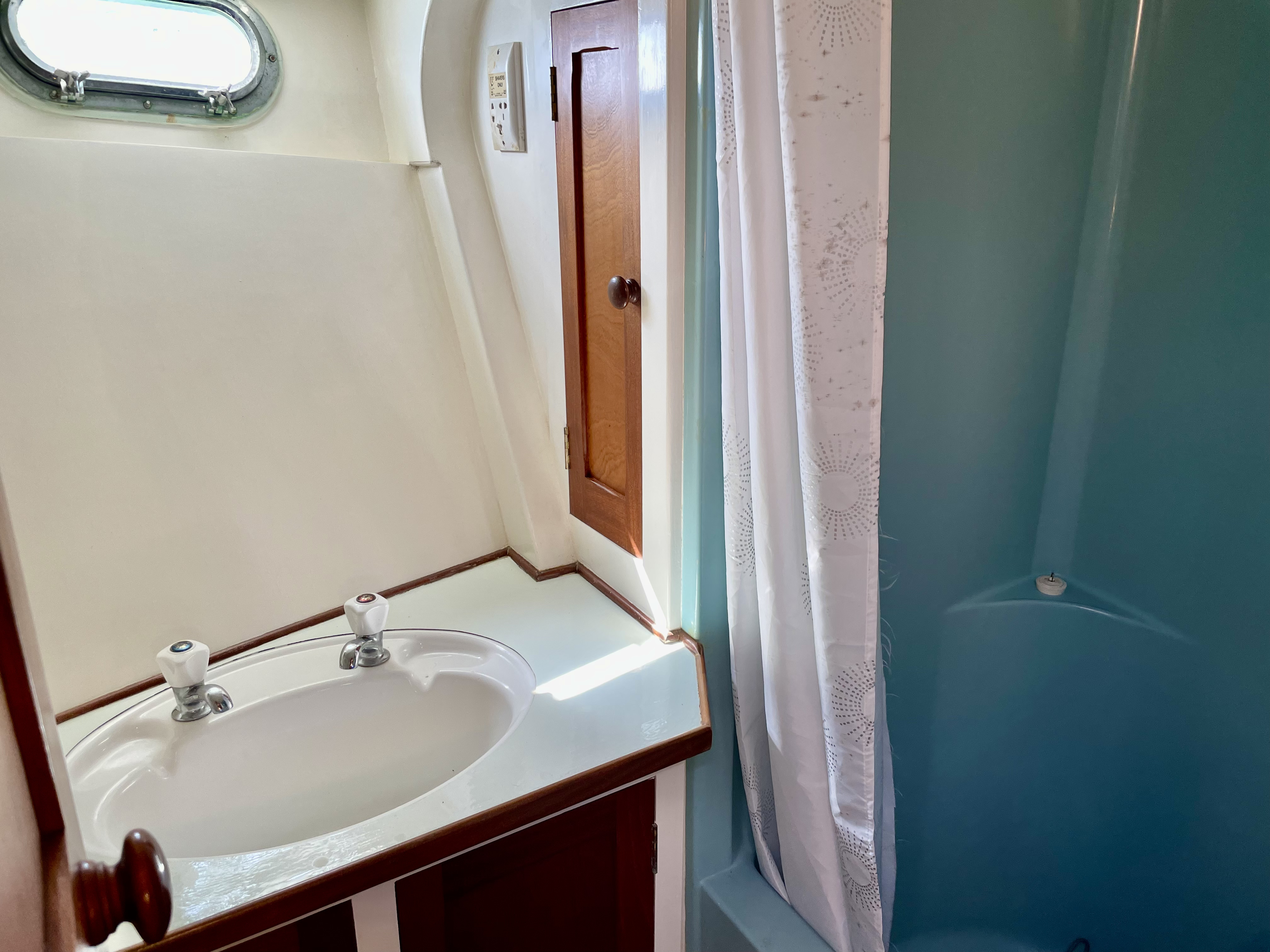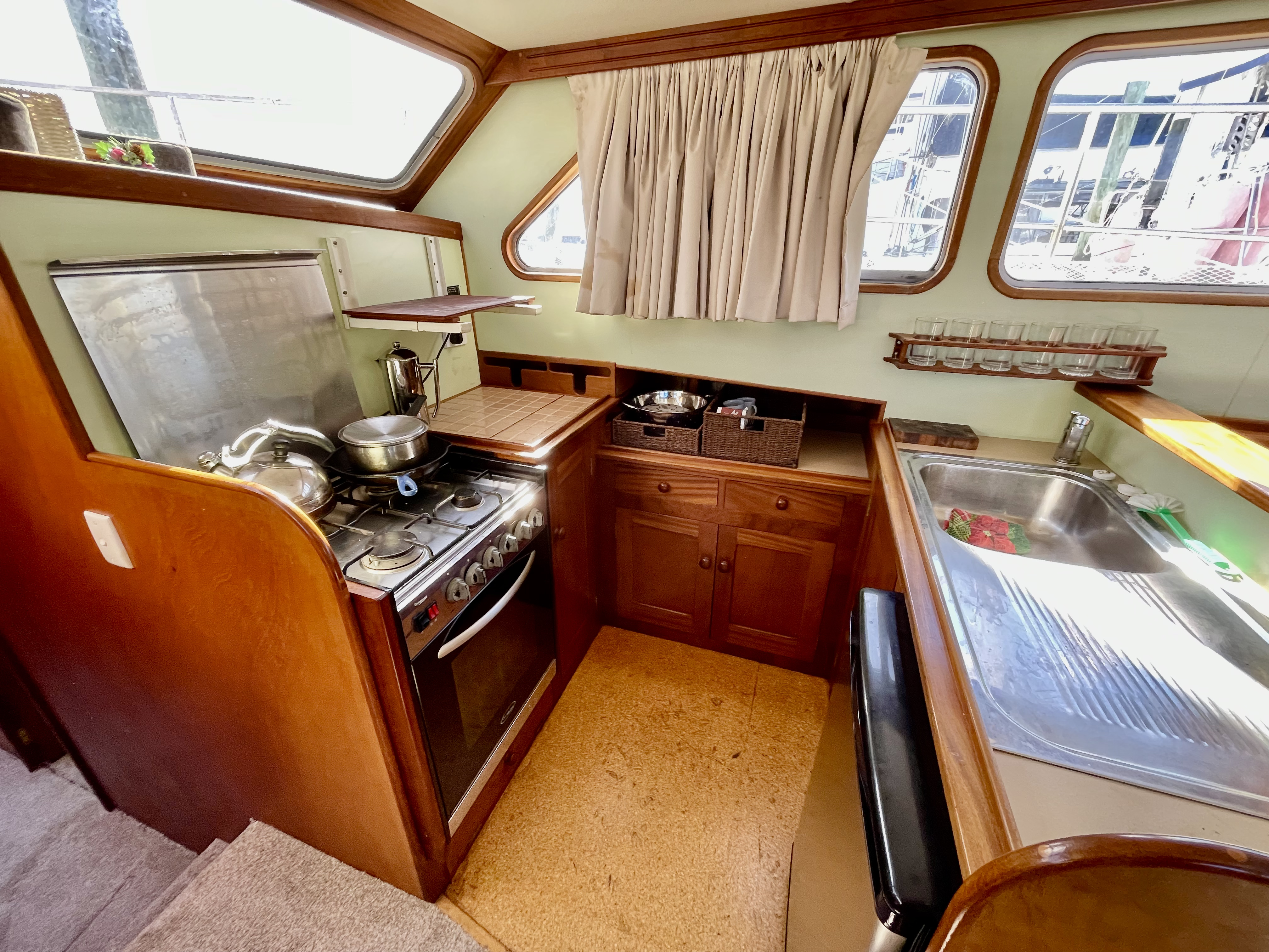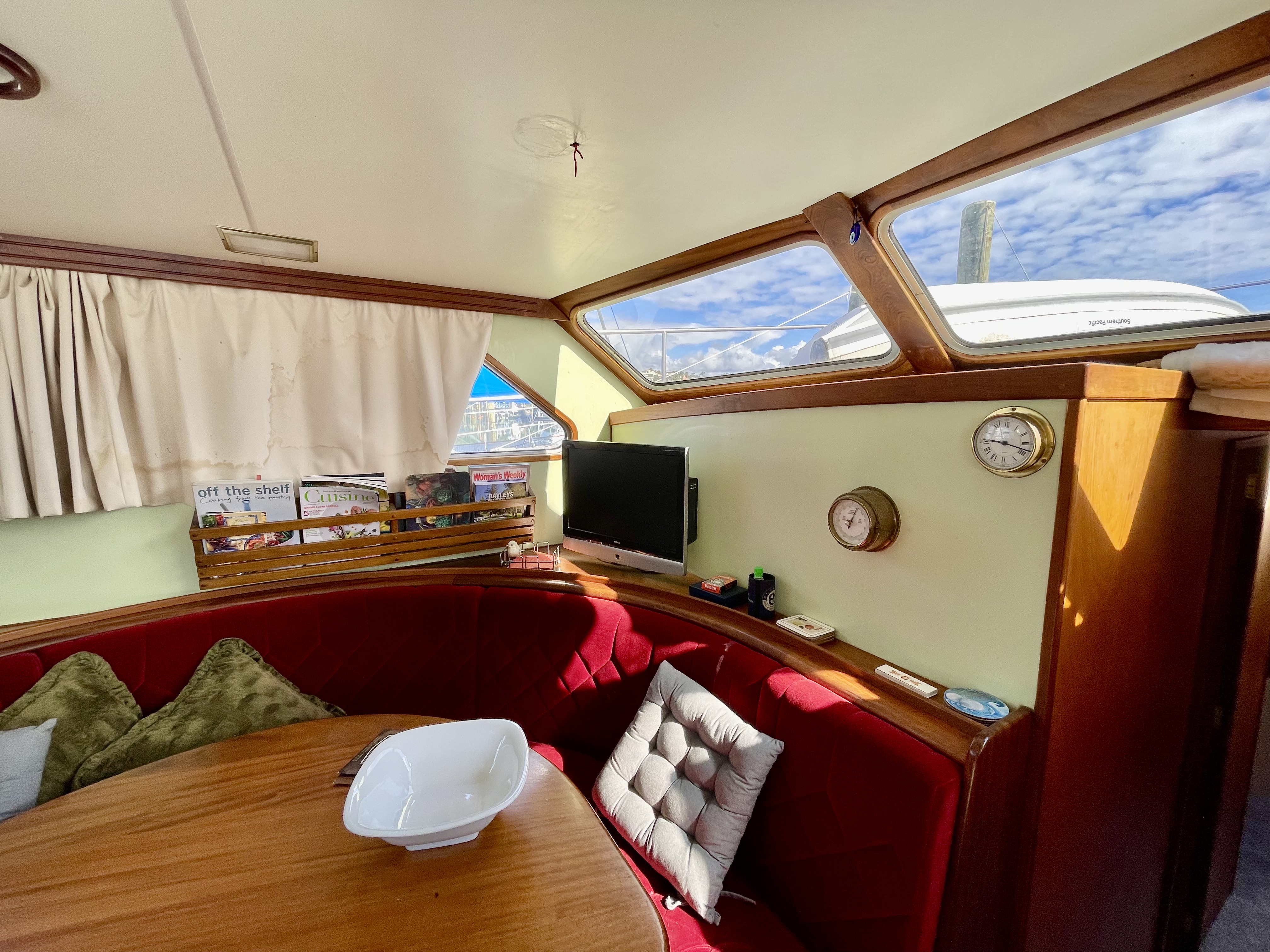 Set up with eight berths LP would either be a perfect large family boat, a live-aboard base or maybe a group of serious fisher-persons could buy her as a syndicated floating man (oops can’t say that) bach.