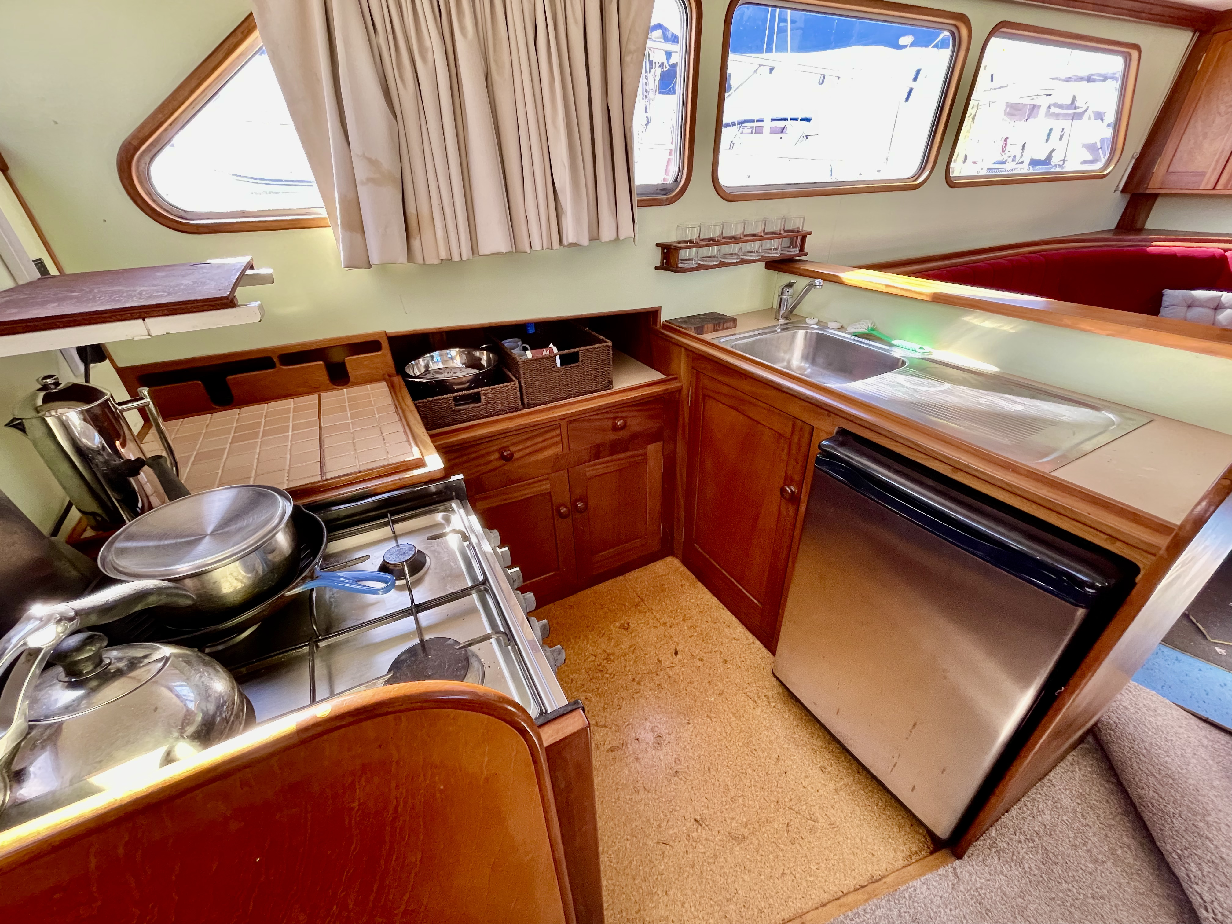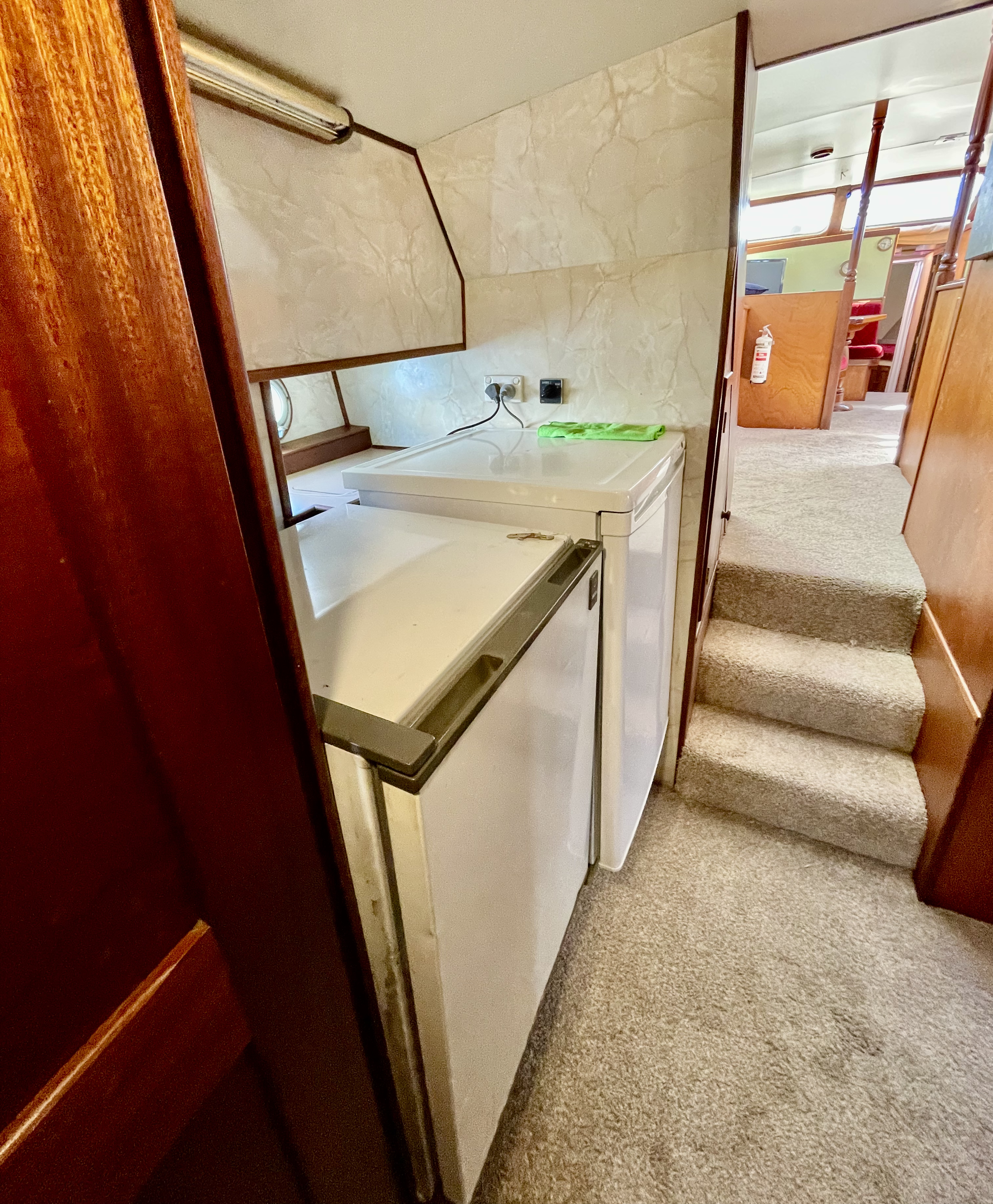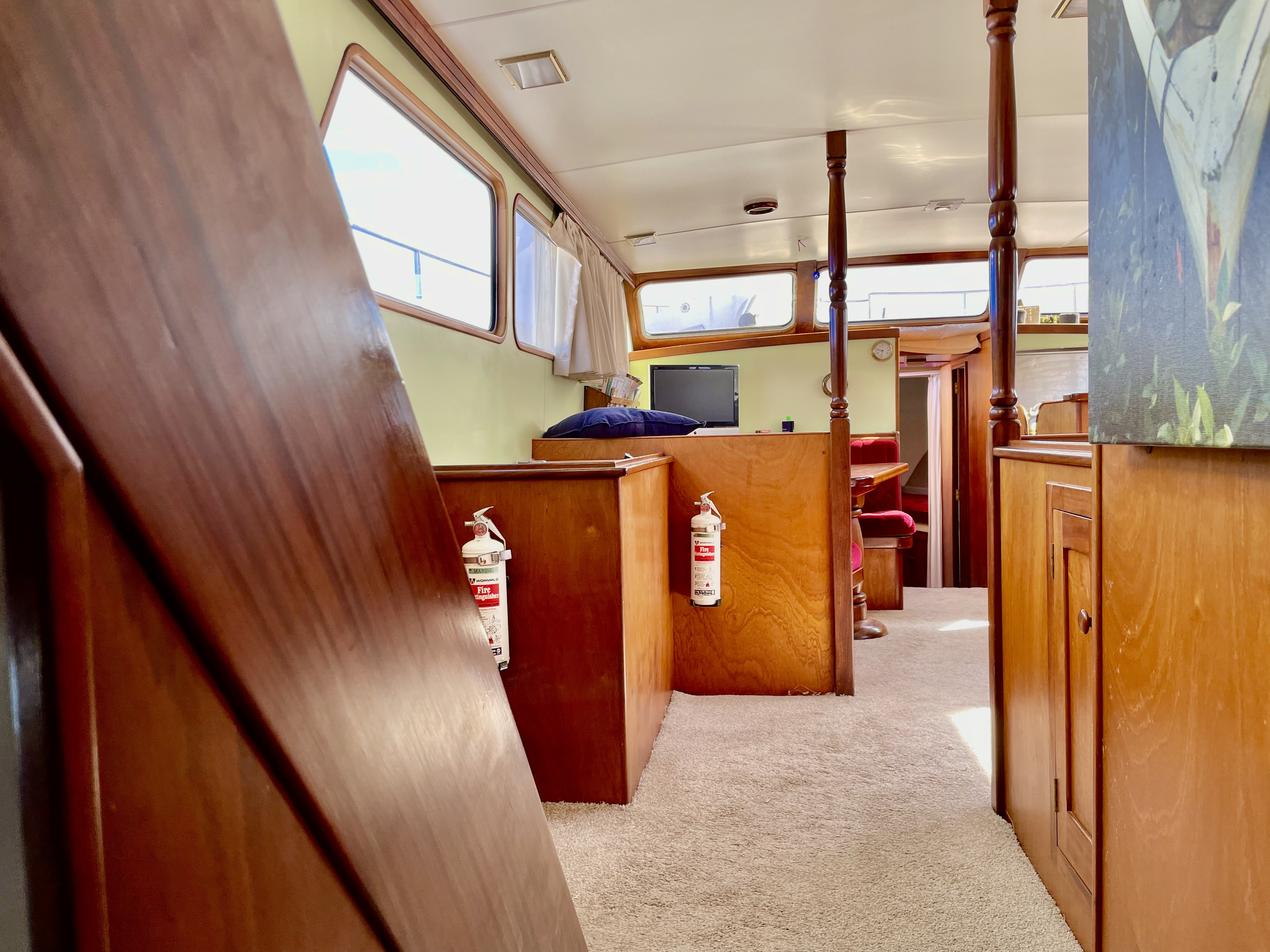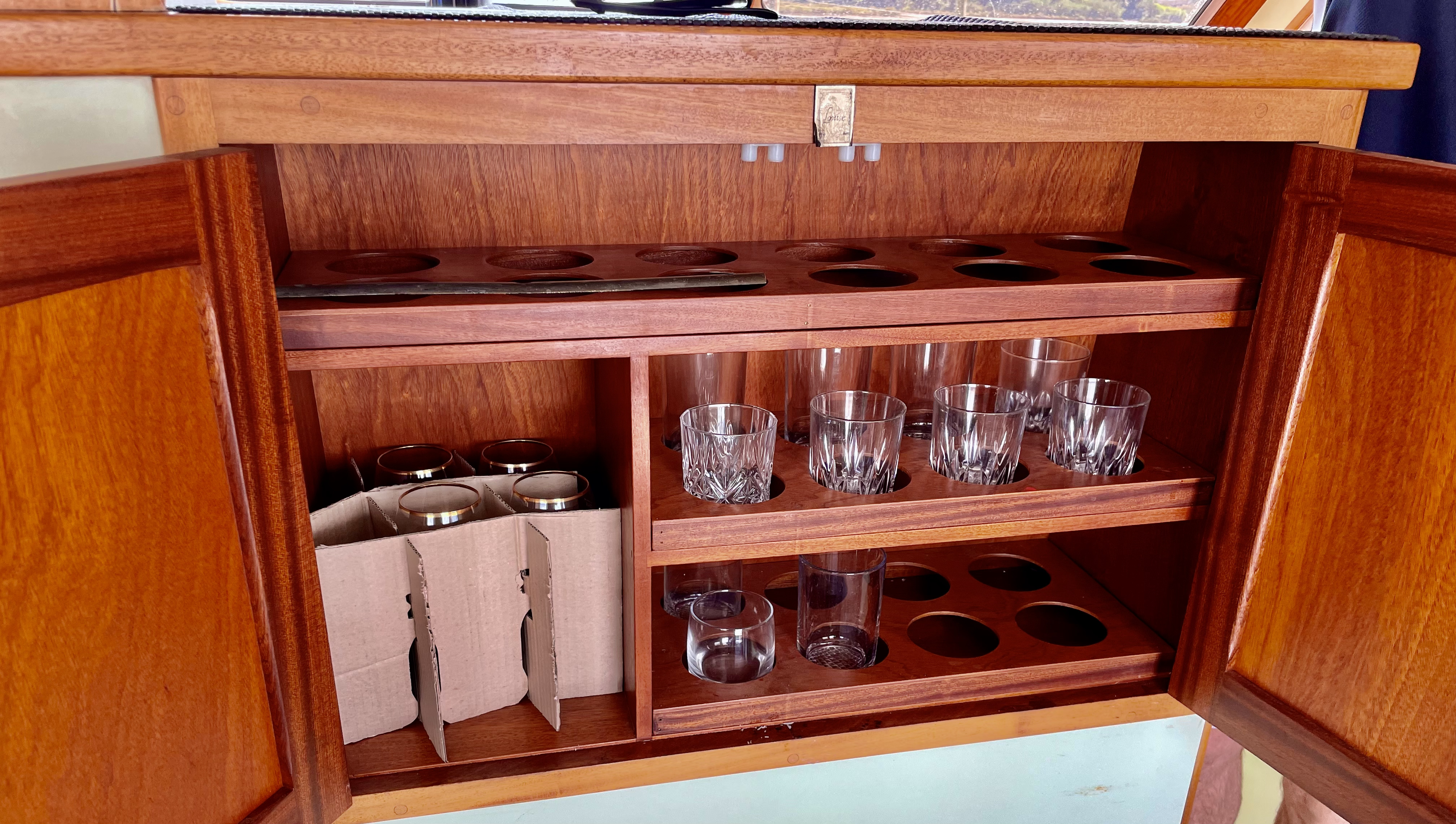 Set up with eight berths LP would either be a perfect large family boat, a live-aboard base or maybe a group of serious fisher-persons could buy her as a syndicated floating man (oops can’t say that) bach.