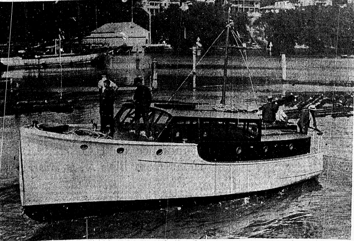 Update 28/06/2014 B/W photo below, ex PicturesPast (Harold Kidd) of the 36′ bridge deck cruiser, Lady Shirley (Catherine S) on her launch day. She was built for Mr C Sinel of Auckland by C Bailey & Son. As launched she had a top speed of 14 knts.