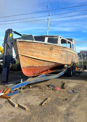 24-11-2025 INPUT EX PAUL DRAKE – We, the Drake Brothers, were quite besotted with OKATAINA when Peter Redwood owned her, and before we owned ROMANCE. In 1975, OKATAINA ‘s Chrysler Ace petrol engine ended up in ROMANCE. Legend has it that in 1939, at the start of WW2, OKATAINA was put in her float-in shed at the Taupo Boat Harbour and the door locked, not to be opened until 1945. She didn’t fare too well and required fairly expensive rot repairs, so it is said.