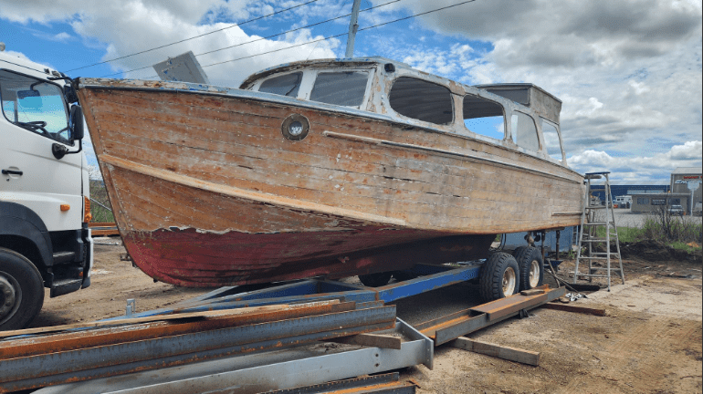 The boat ended up in Auckland in late 1989 / early 1990 in poor condition and then found her way to Thames where she remains today.